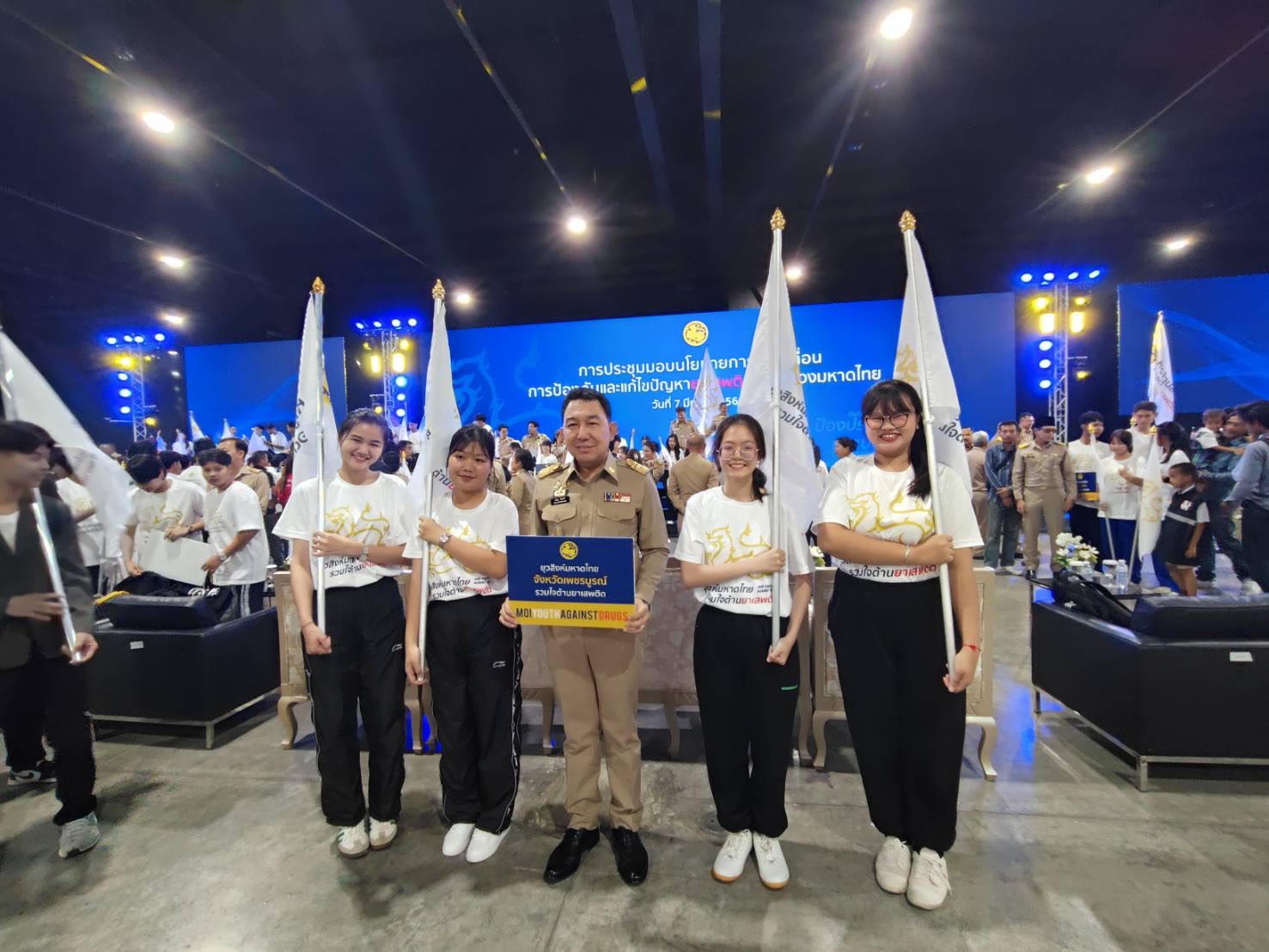 ทั้งนี้ คณะนักเรียนได้เข้ารับ ธงและป้ายยุวสิงห์มหาดไทยรวมใจต้านภัยยาเสพติด จาก รองนายกรัฐมนตรีและรัฐมนตรีว่าการกระทรวงมหาดไทย ในพิธีที่จัดขึ้น ณ อาคารอิมแพ็ค ฟอรั่ม ฮอลล์ 4 ศูนย์แสดงสินค้าและการประชุมอิมแพ็ค เมืองทองธานี จังหวัดนนทบุรี