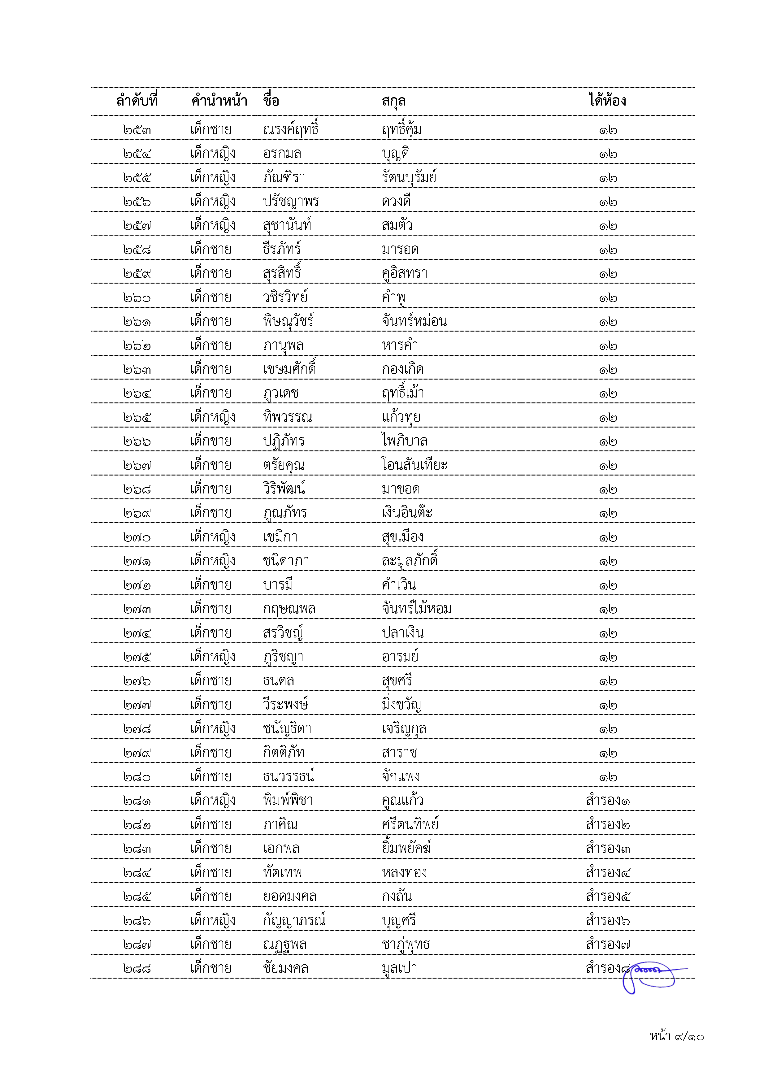 เรื่อง ผลการสอบคัดเลือกของนักเรียนชั้นมัธยมศึกษาปีที่ 1 ปีการศึกษา 2568