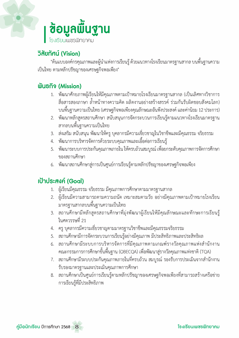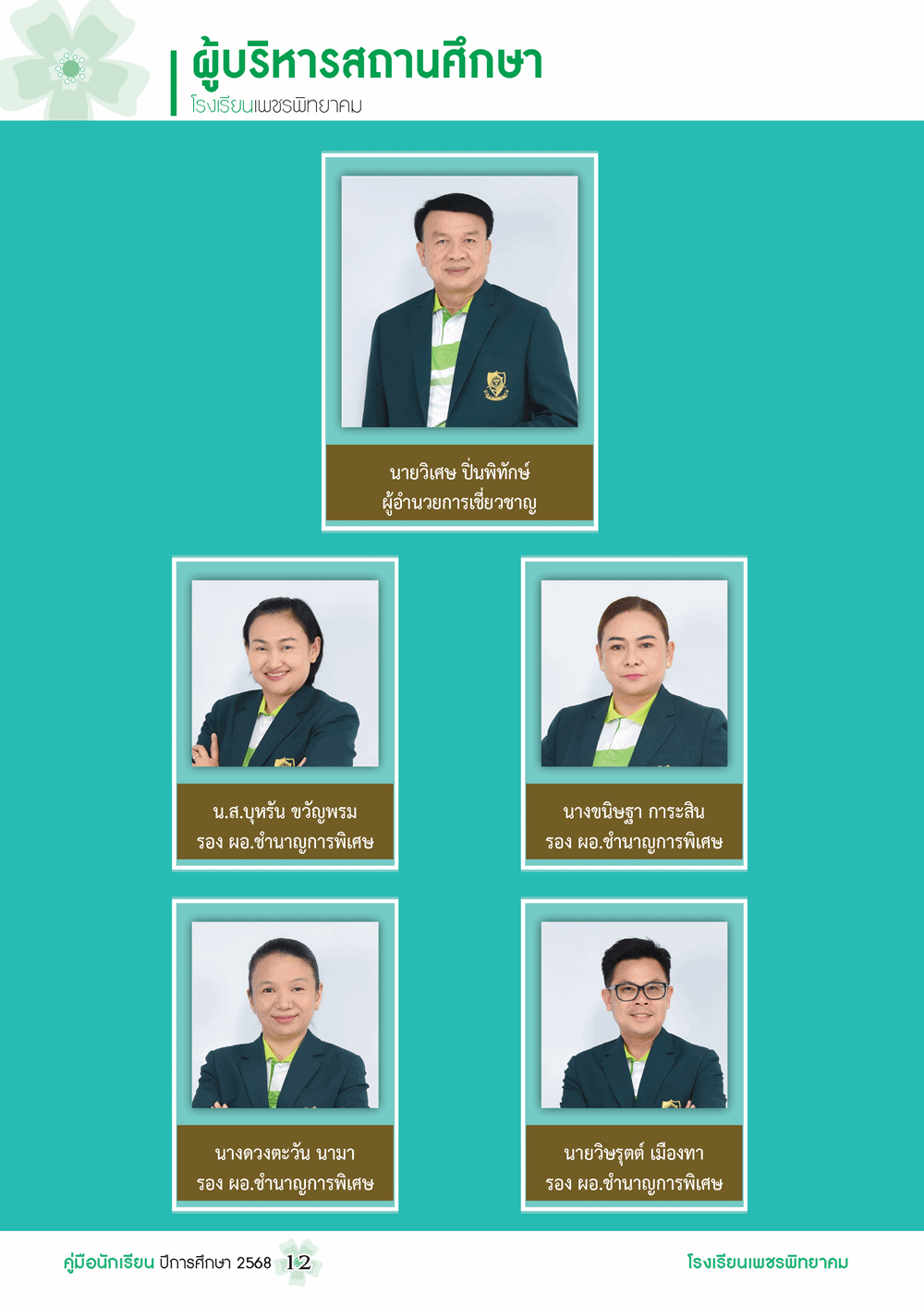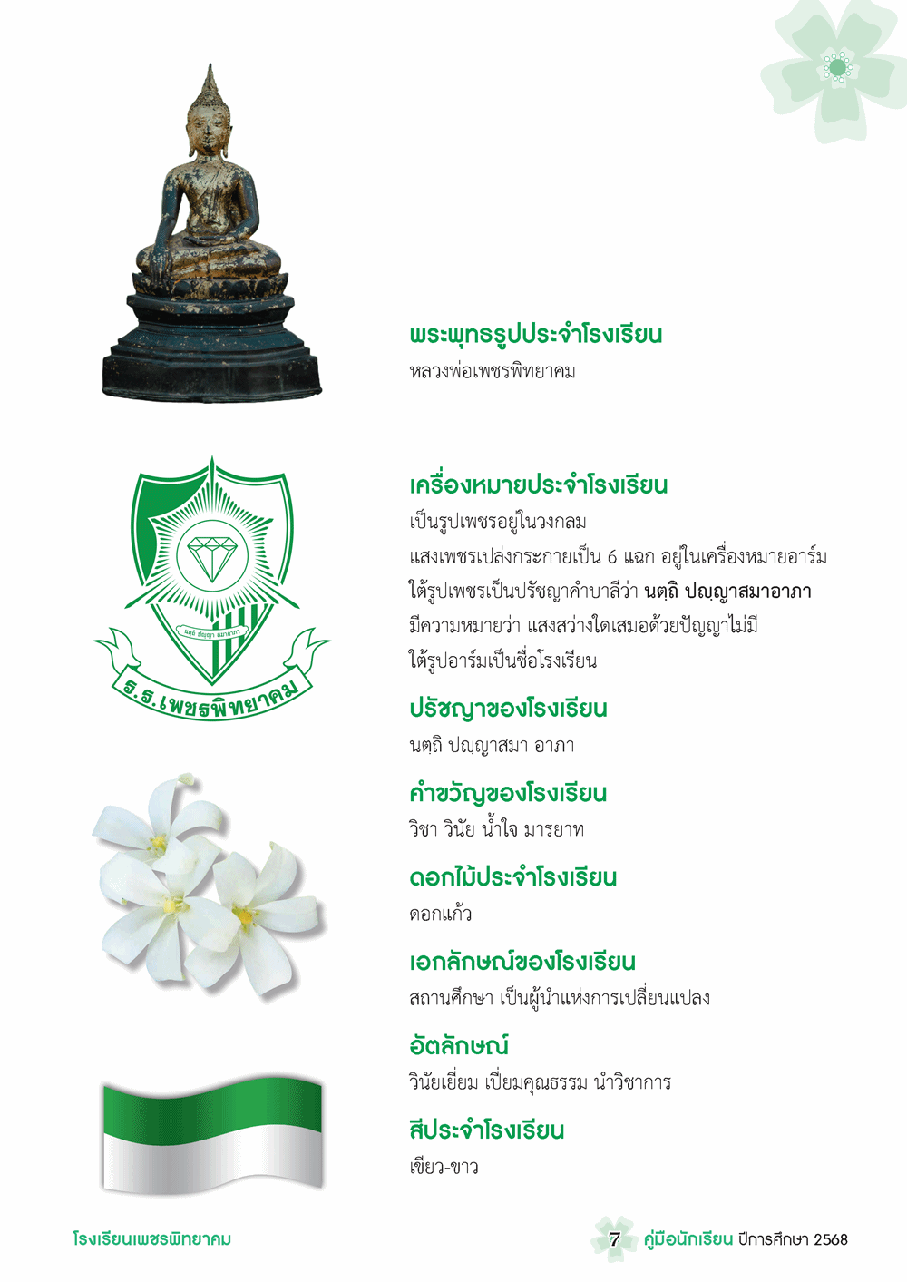 โรงเรียนเพชรพิทยาคม สังกัดสำนักงานเขตพื้นที่การศึกษามัธยมศึกษาเพชรบูรณ์ ได้จัดทำ คู่มือนักเรียน ปีการศึกษา 2568 เพื่อใช้เป็นแนวทางสำคัญในการขับเคลื่อนการจัดการศึกษาอย่างมีคุณภาพ โดยมุ่งเน้น “ผู้เรียนเป็นศูนย์กลาง” และสนับสนุนการทำงานร่วมกันของนักเรียน ครู ผู้ปกครอง และชุมชน