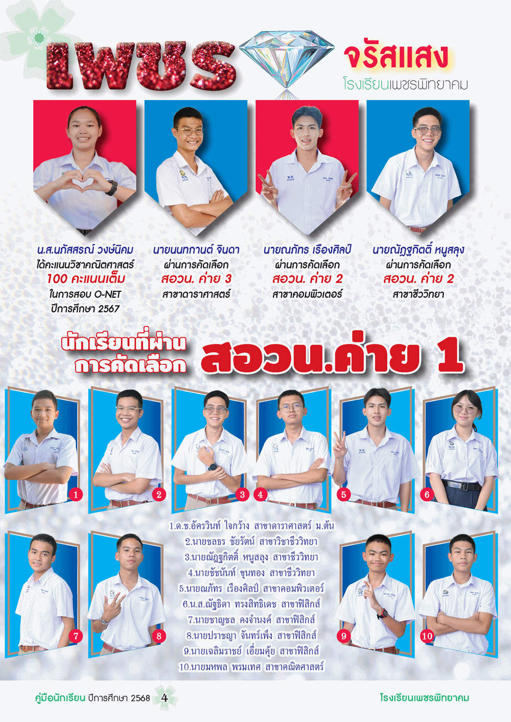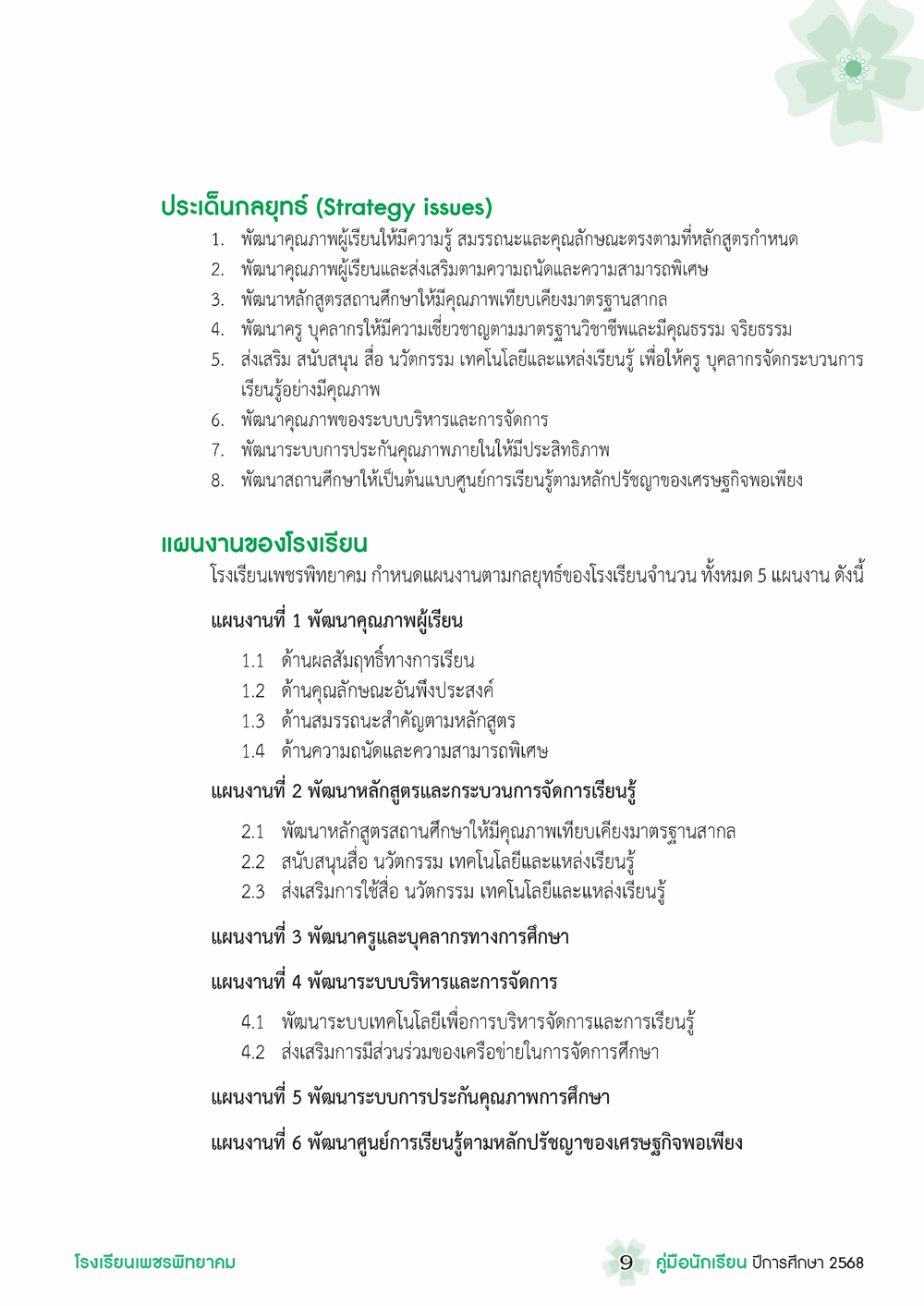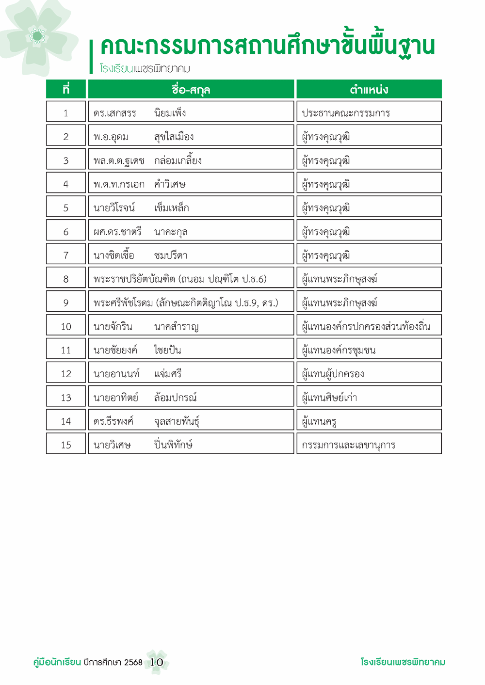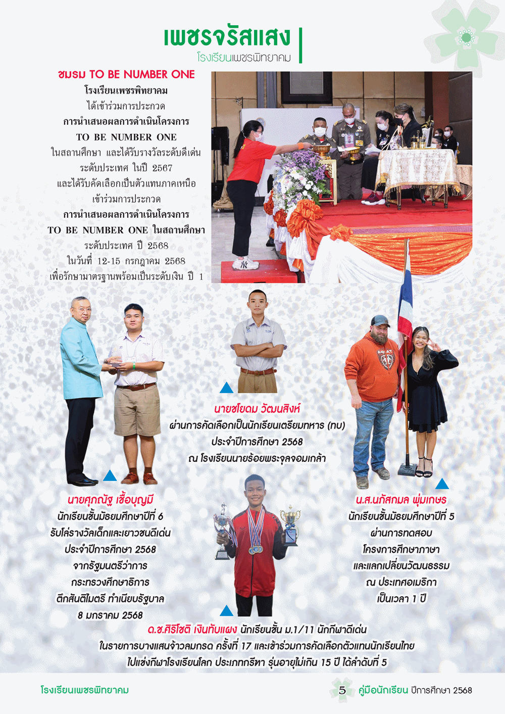 โรงเรียนเพชรพิทยาคม สังกัดสำนักงานเขตพื้นที่การศึกษามัธยมศึกษาเพชรบูรณ์ ได้จัดทำ คู่มือนักเรียน ปีการศึกษา 2568 เพื่อใช้เป็นแนวทางสำคัญในการขับเคลื่อนการจัดการศึกษาอย่างมีคุณภาพ โดยมุ่งเน้น “ผู้เรียนเป็นศูนย์กลาง” และสนับสนุนการทำงานร่วมกันของนักเรียน ครู ผู้ปกครอง และชุมชน
