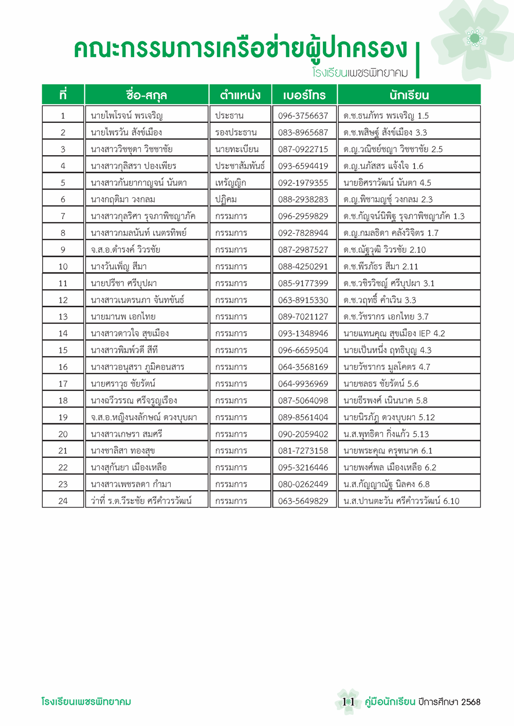 เผยแพร่คู่มือนักเรียน ปีการศึกษา 2568 โรงเรียนเพชรพิทยาคม เพื่อคุณภาพการศึกษาที่ยั่งยืน
