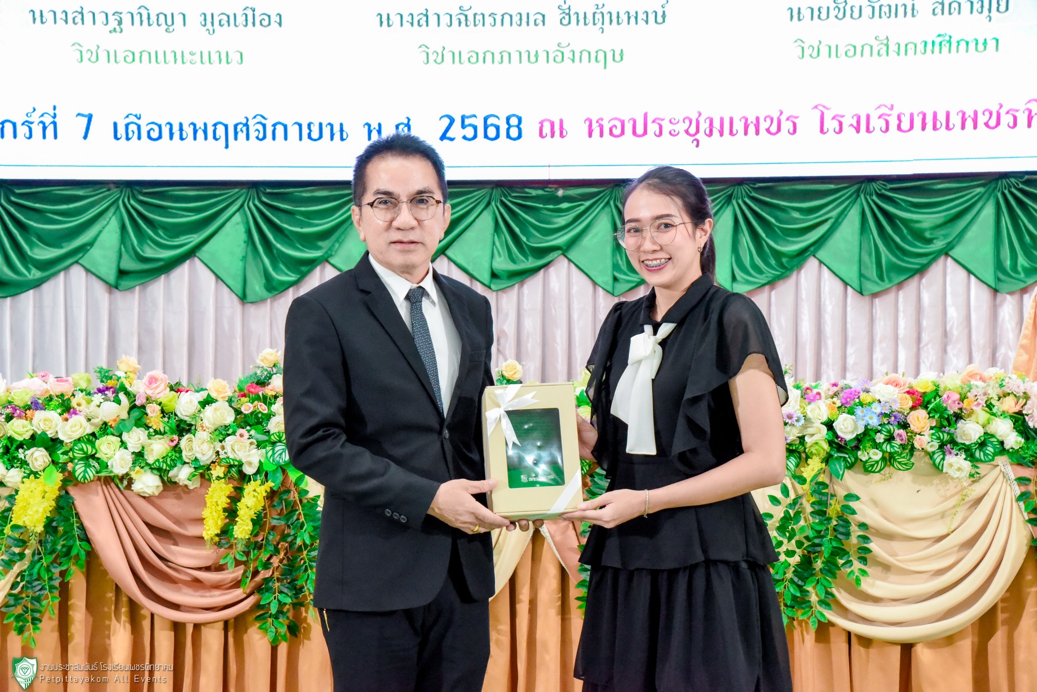 ในโอกาสนี้ ดร.พีระวัตร จันทกูล ผู้อำนวยการโรงเรียน ได้กล่าวต้อนรับและให้โอวาท โดยเน้นการทำงานร่วมกันเป็นทีม การสร้างบรรยากาศการเรียนรู้ที่ส่งเสริมผู้เรียน และปลูกฝังคุณธรรมจริยธรรมในการปฏิบัติหน้าที่ครู พร้อมทั้งแสดงความยินดีและให้กำลังใจแก่ครูใหม่ทั้งสามท่านอย่างอบอุ่น