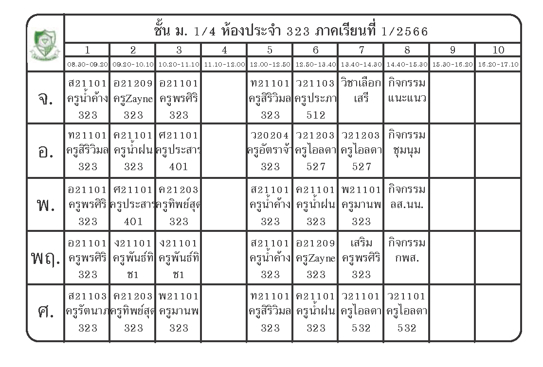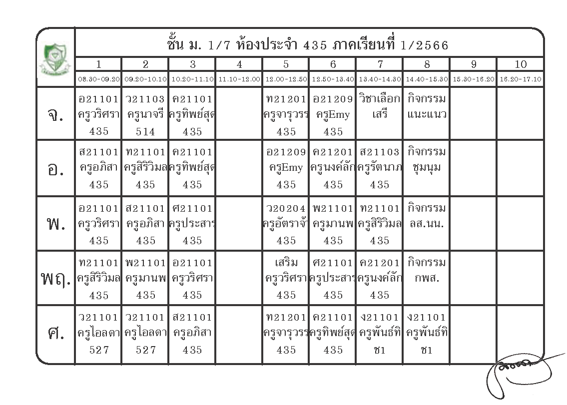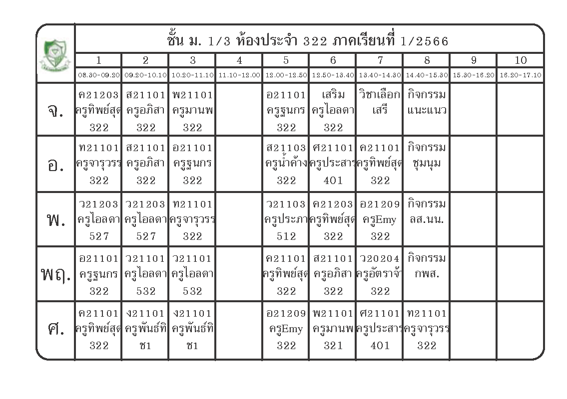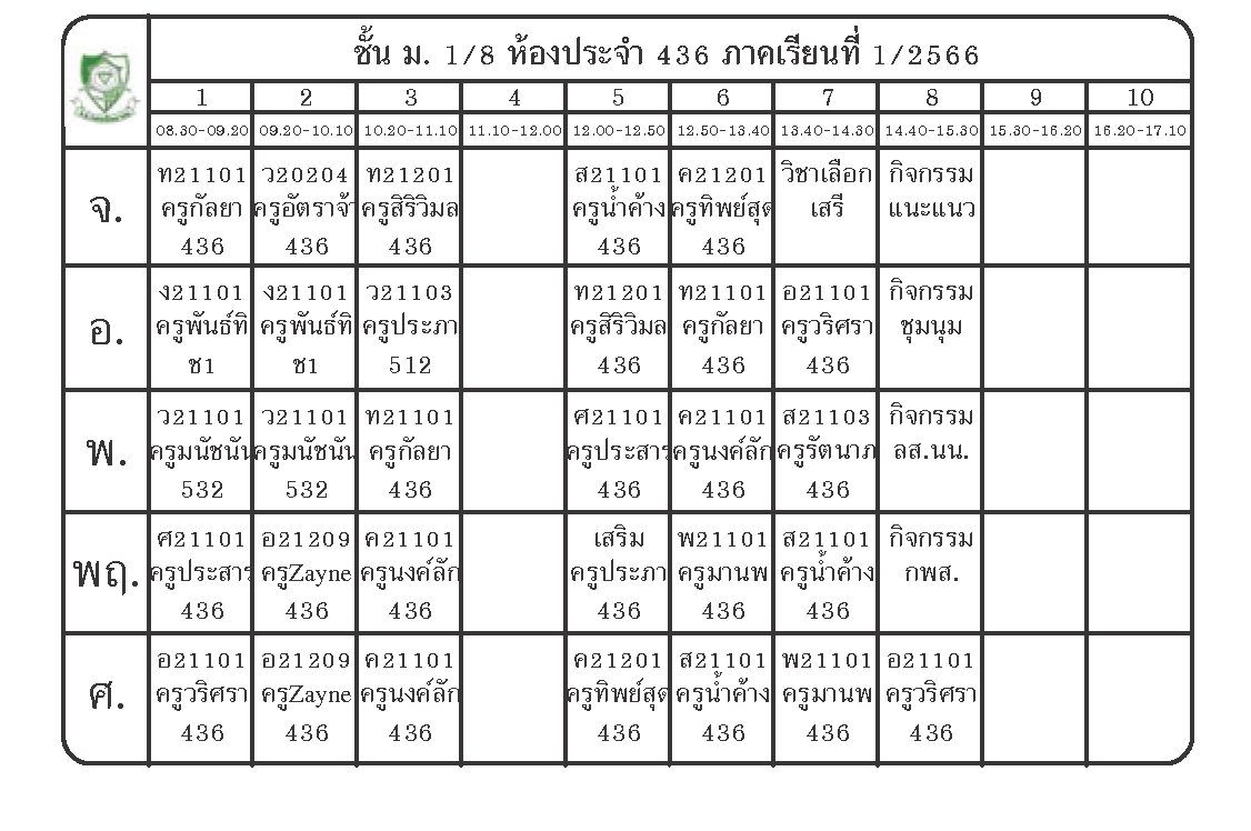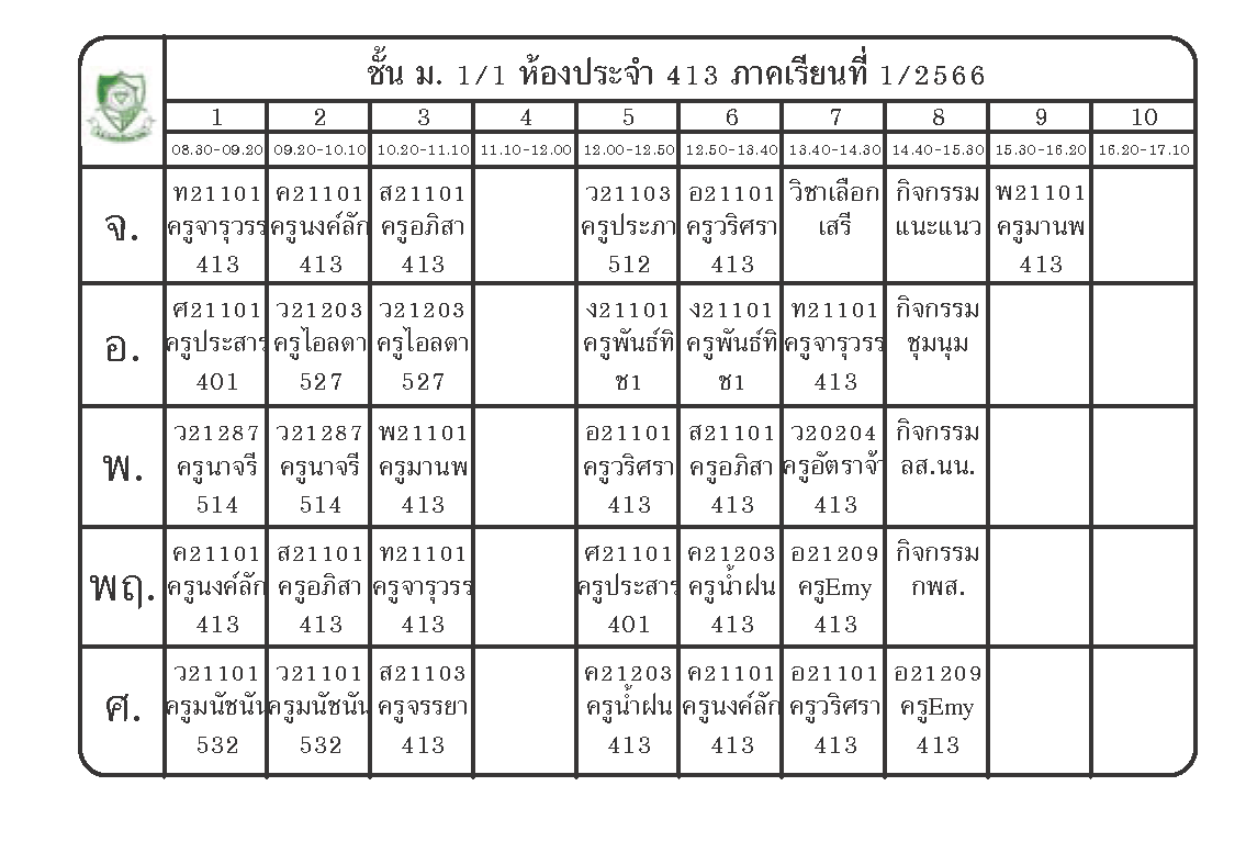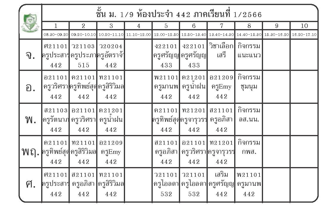 ตารางเรียนนักเรียนชั้น ม.1 ภาคเรียนที่ 1 ปีการศึกษา 2566