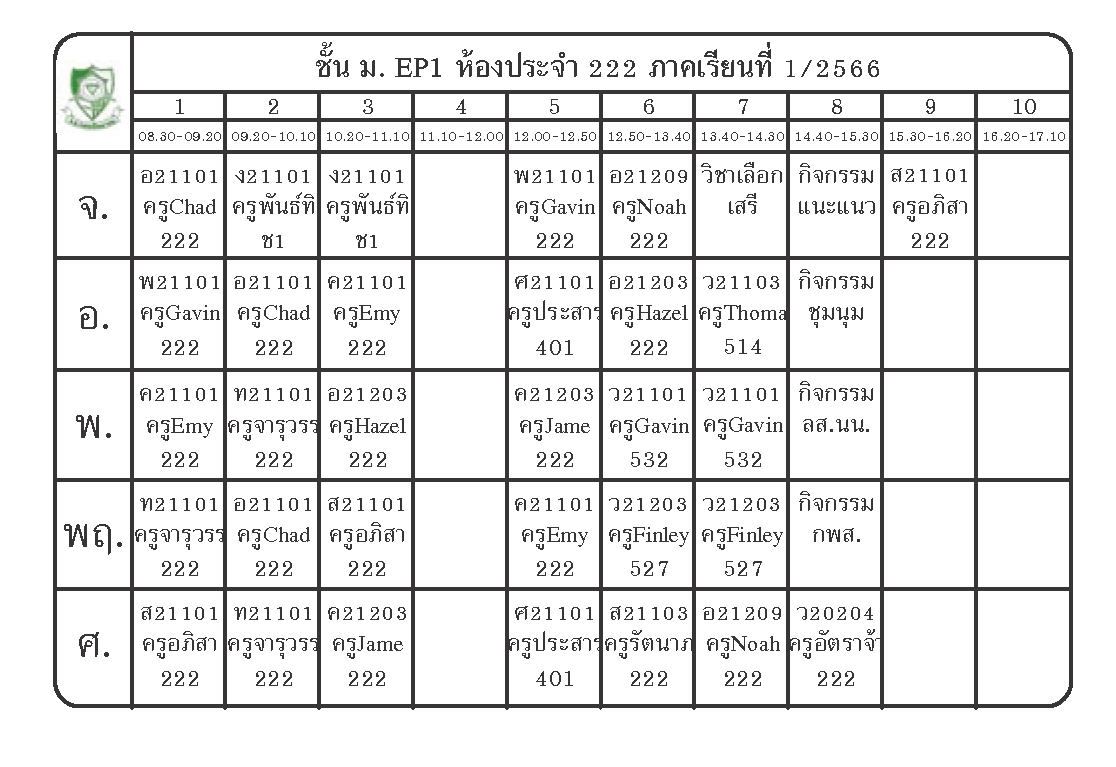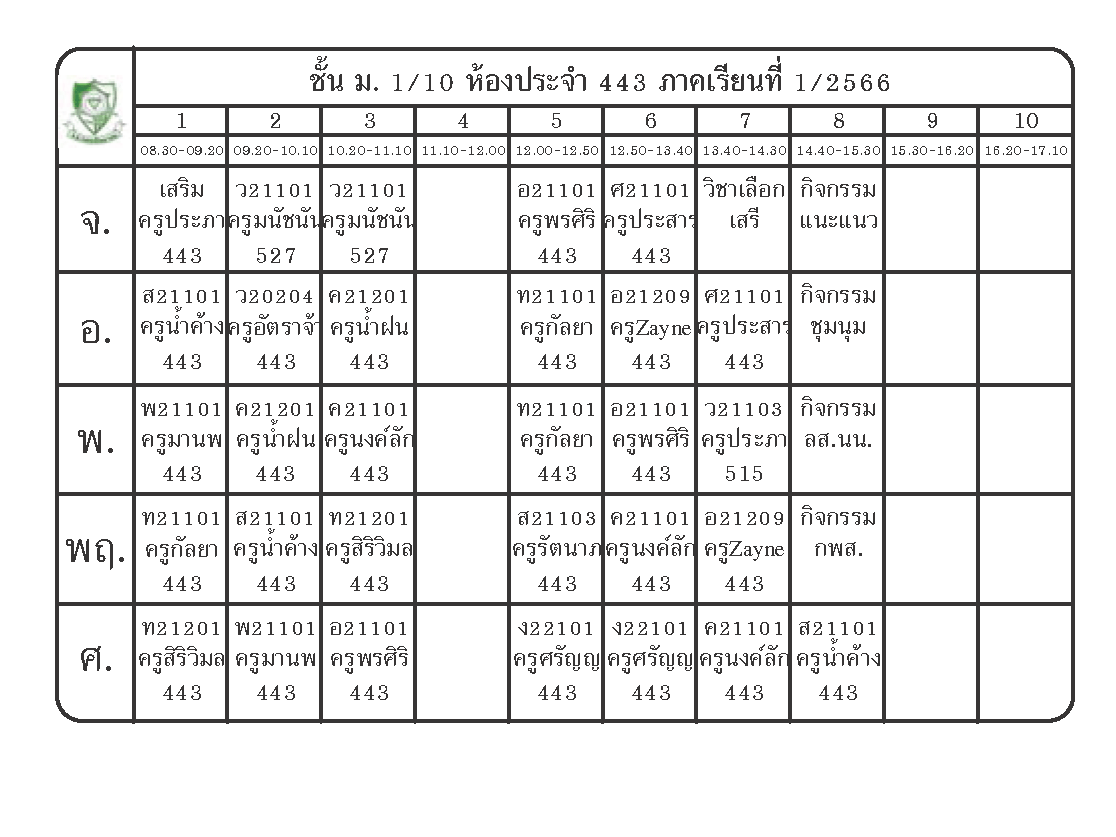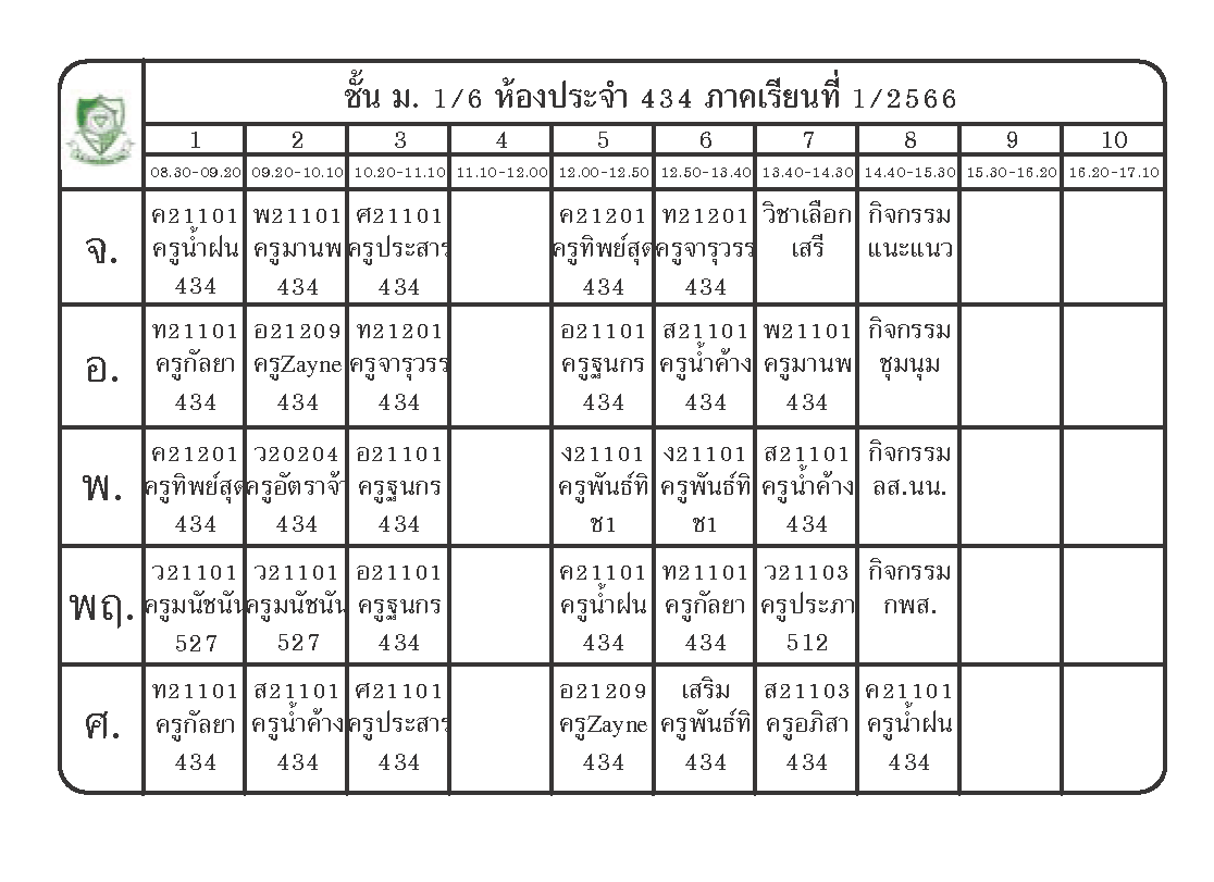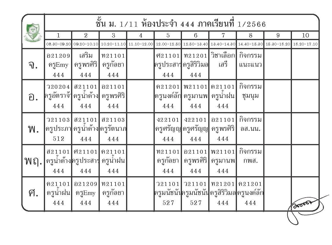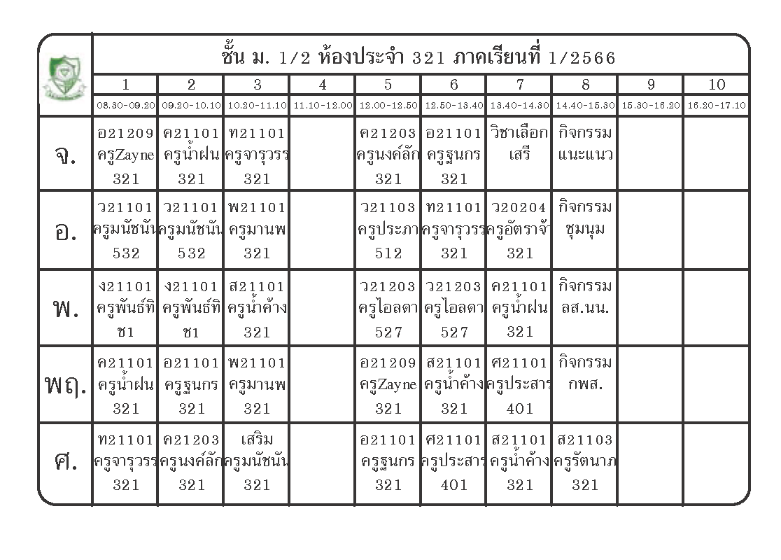 ตารางเรียนนักเรียนชั้น ม.1 ภาคเรียนที่ 1 ปีการศึกษา 2566