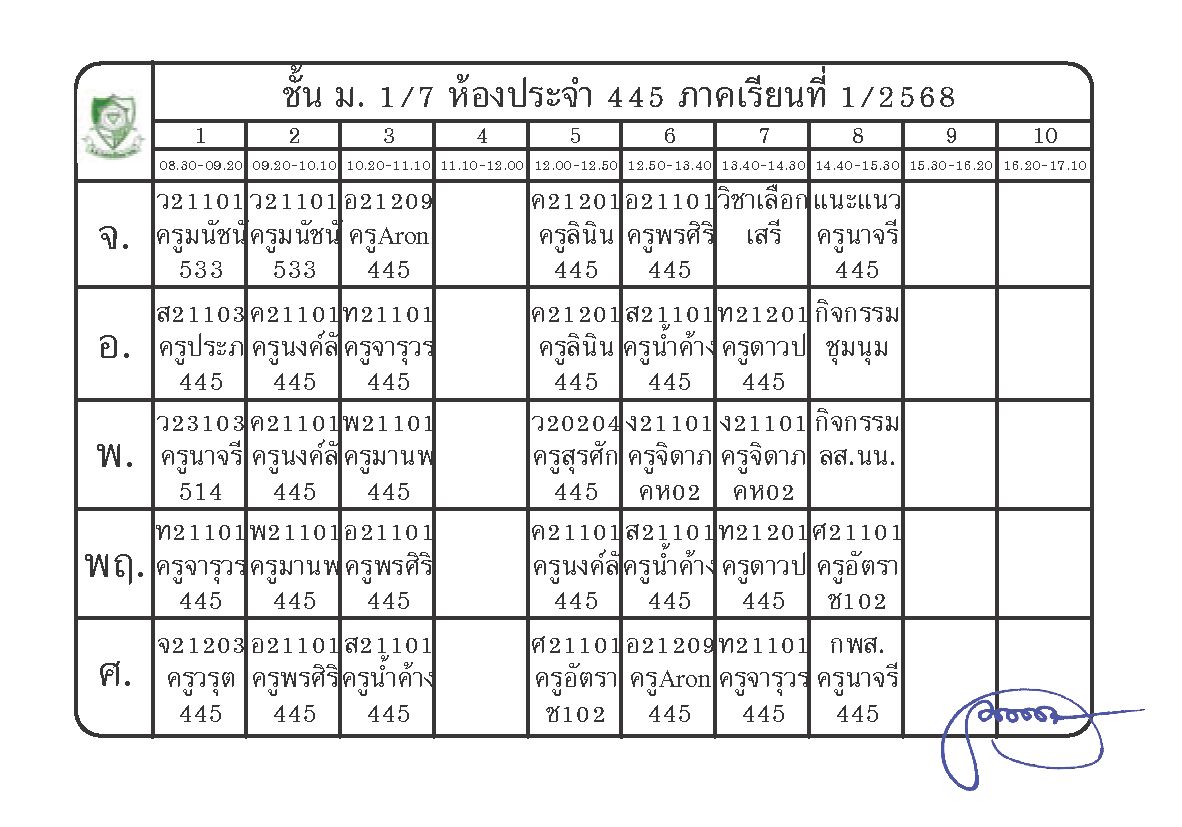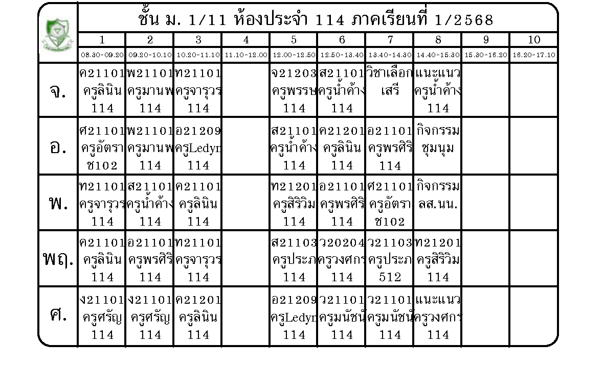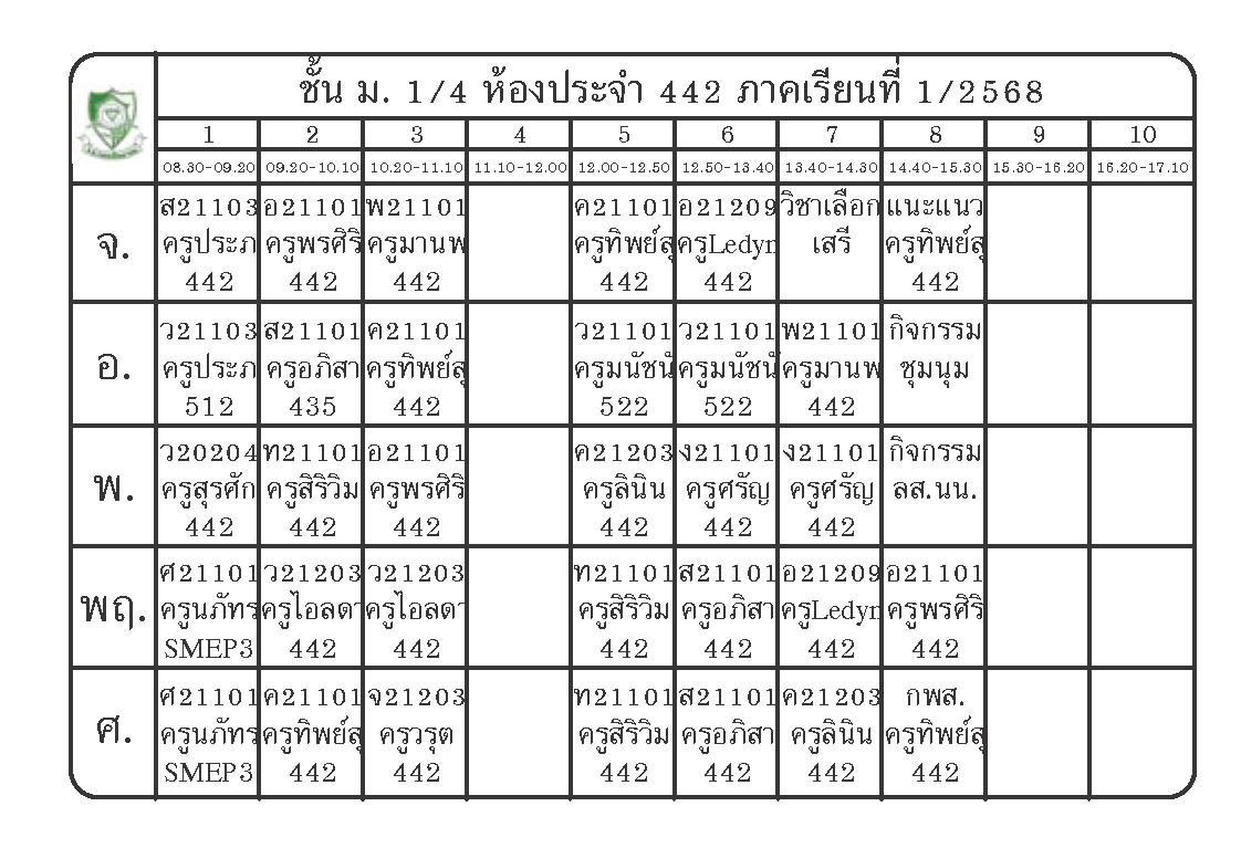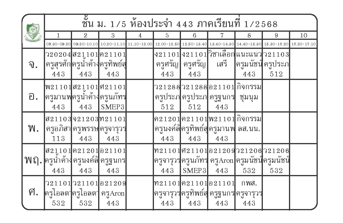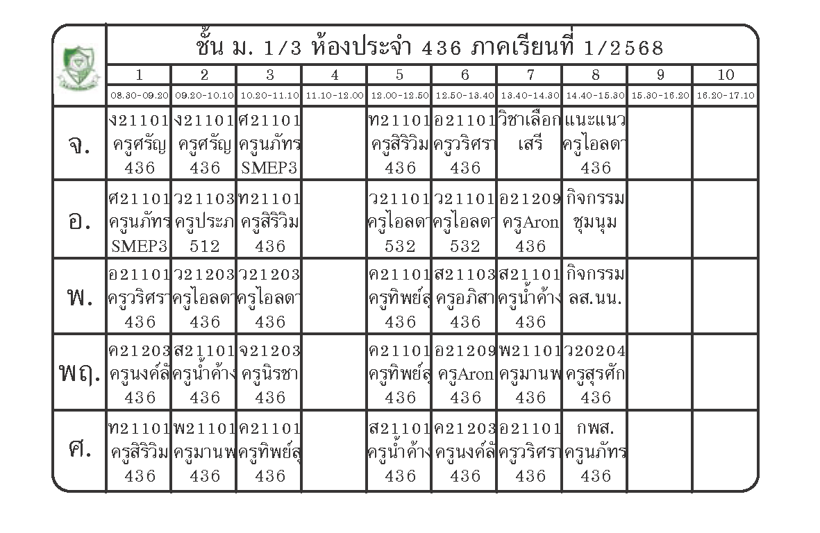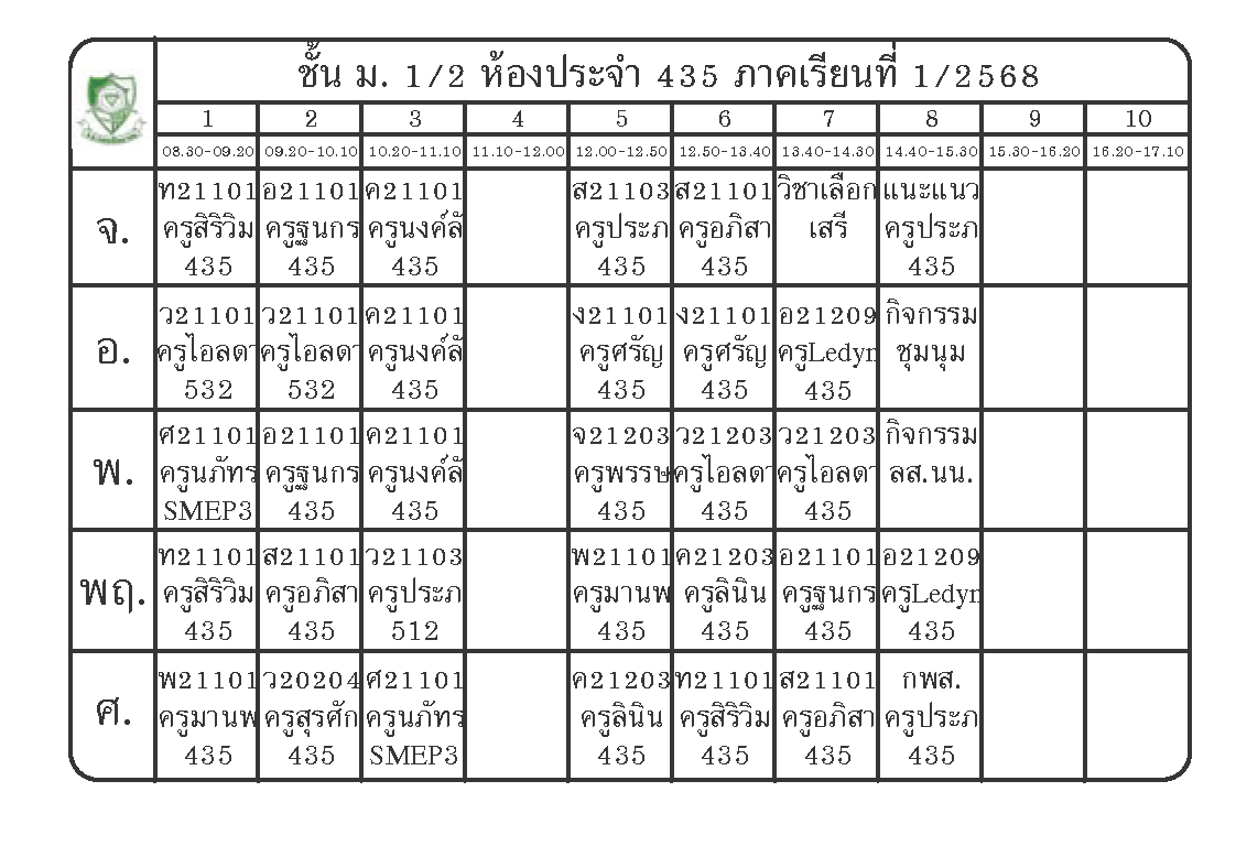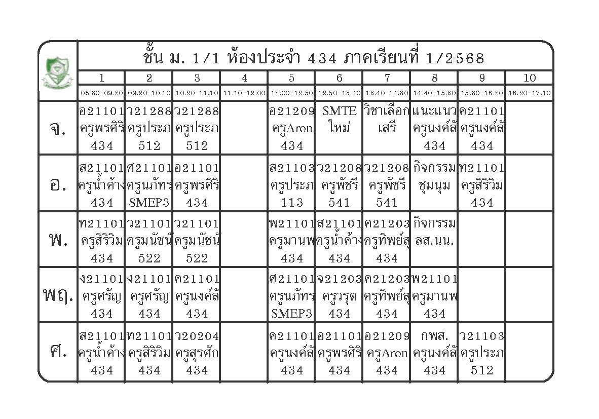 ตารางเรียนนักเรียนชั้น ม.1 ภาคเรียนที่ 1 ปีการศึกษา 2568