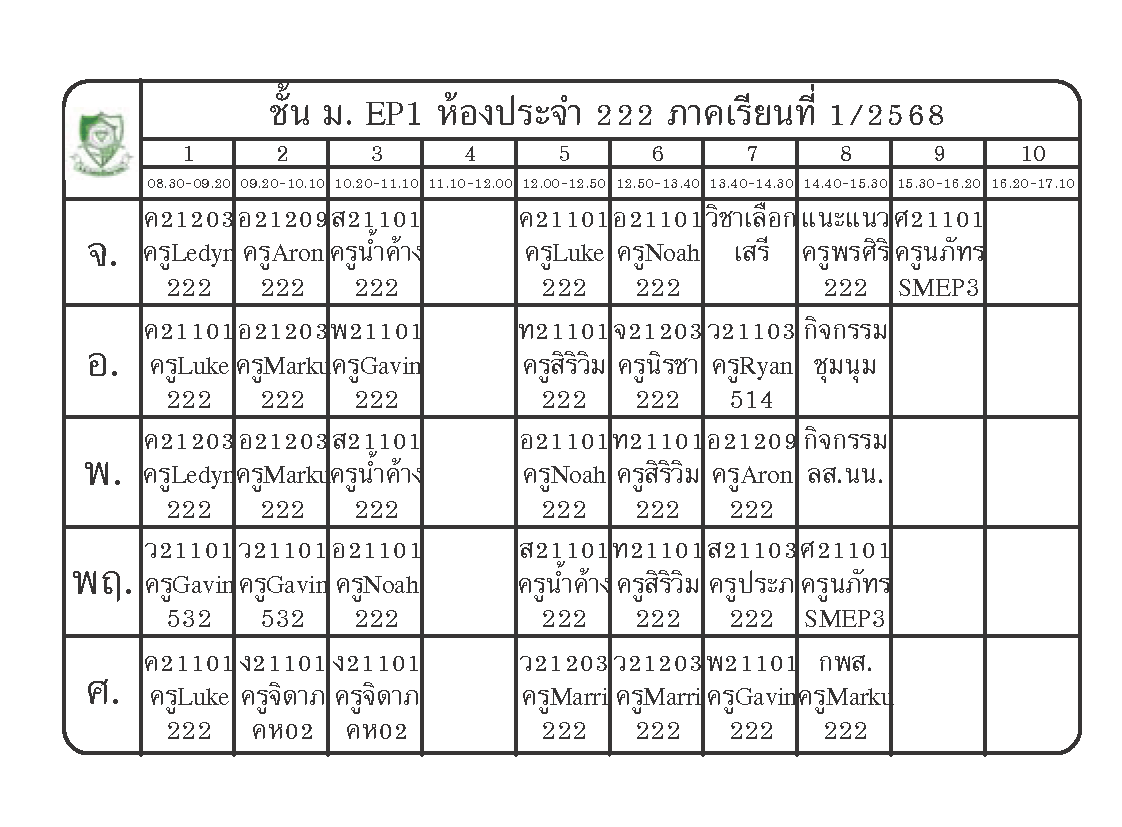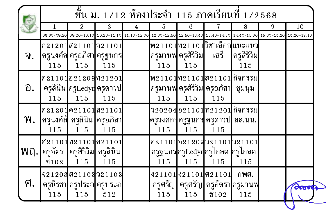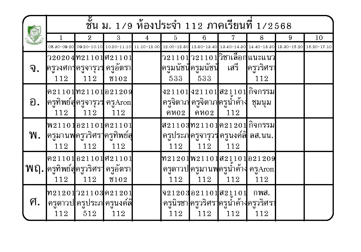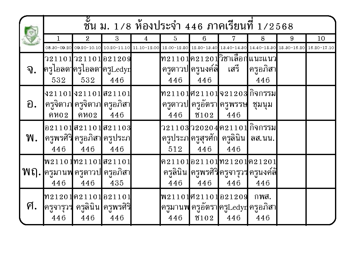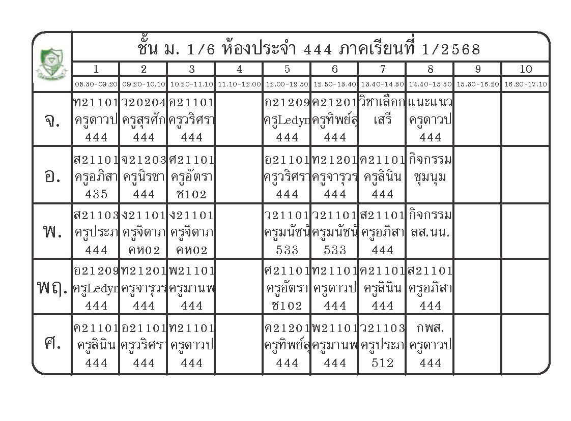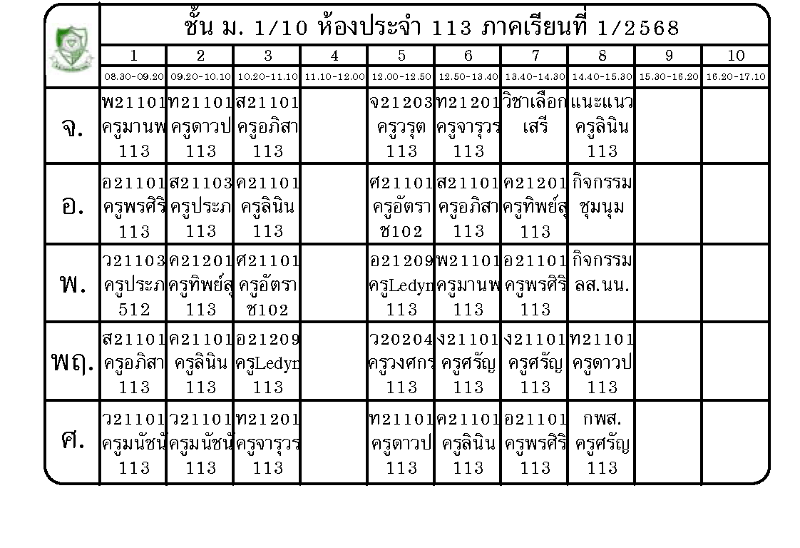 ตารางเรียนนักเรียนชั้น ม.1 ภาคเรียนที่ 1 ปีการศึกษา 2568
