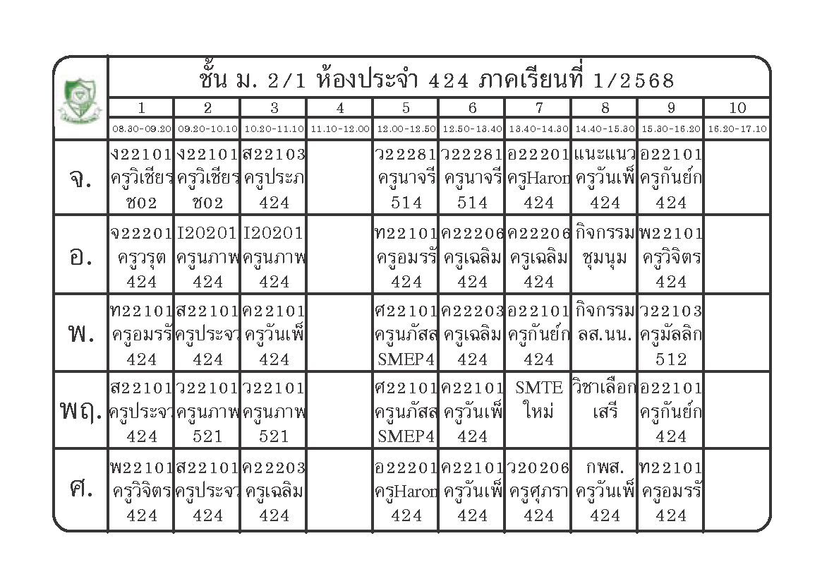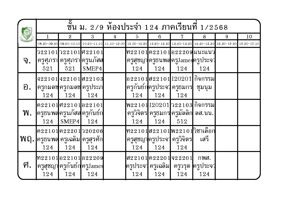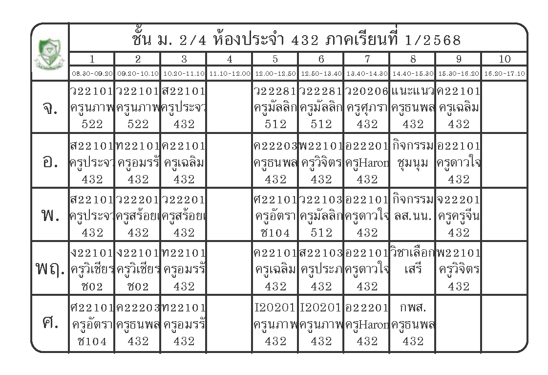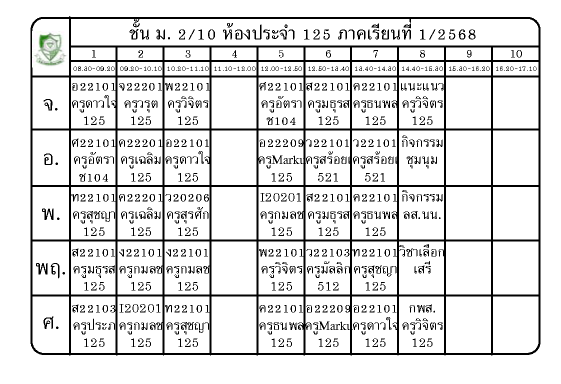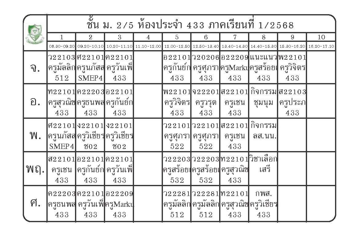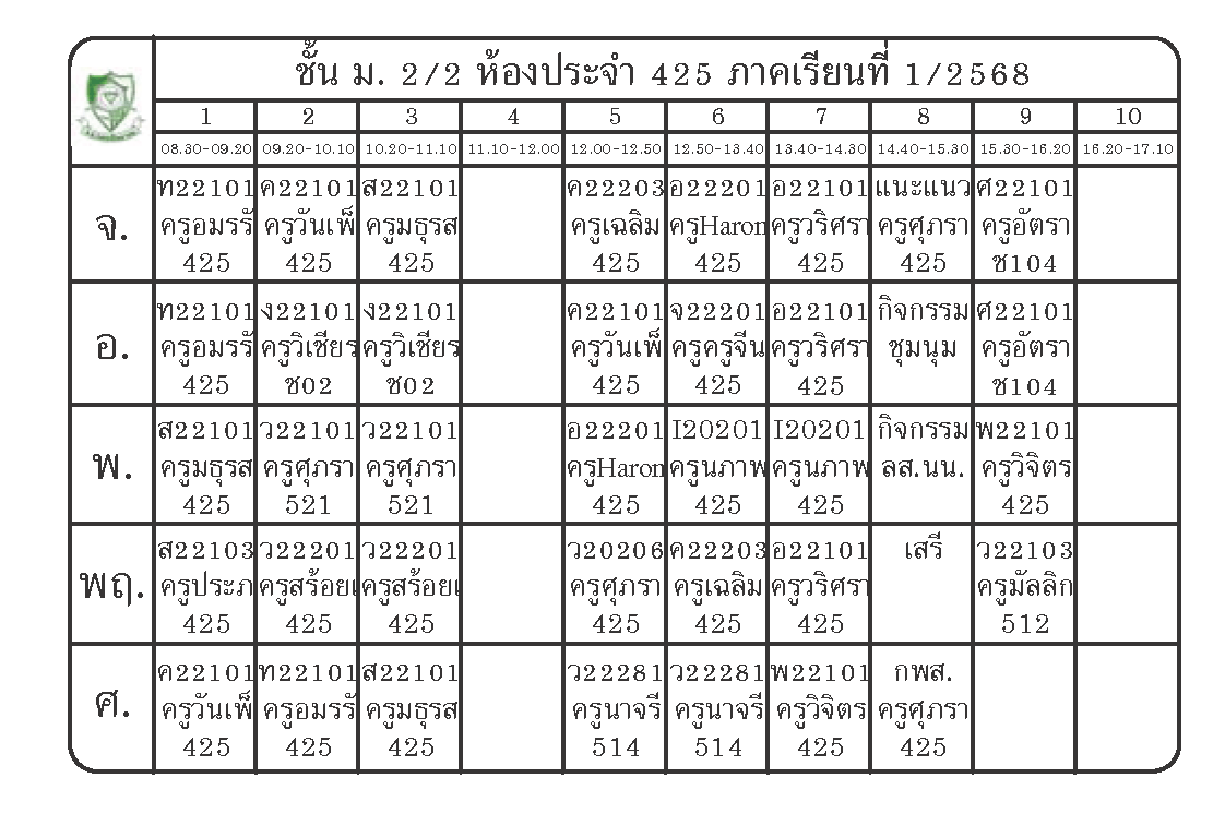 ตารางเรียนนักเรียนชั้น ม.2 ภาคเรียนที่ 1 ปีการศึกษา 2568