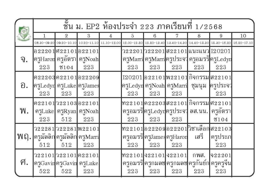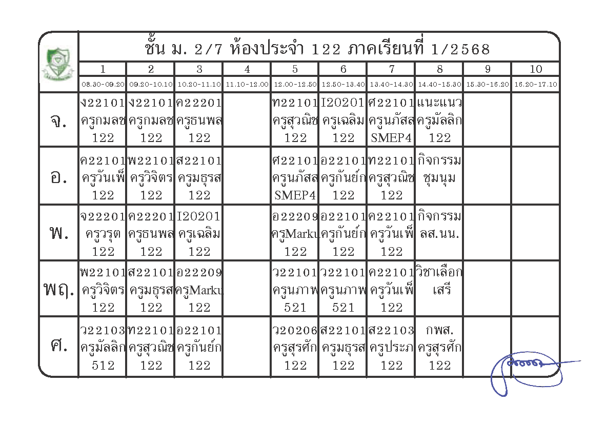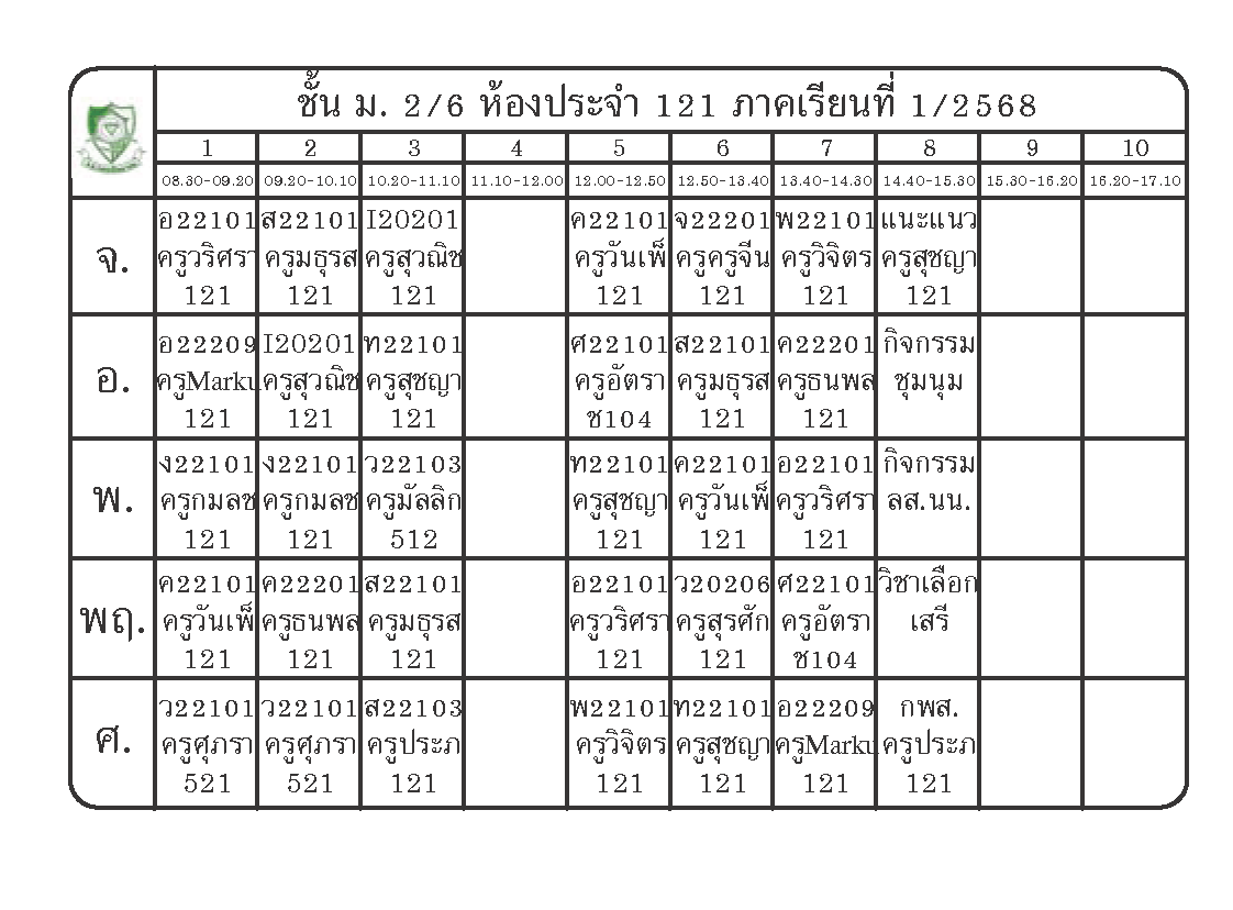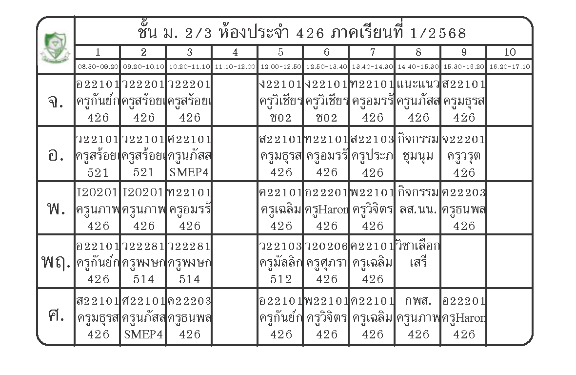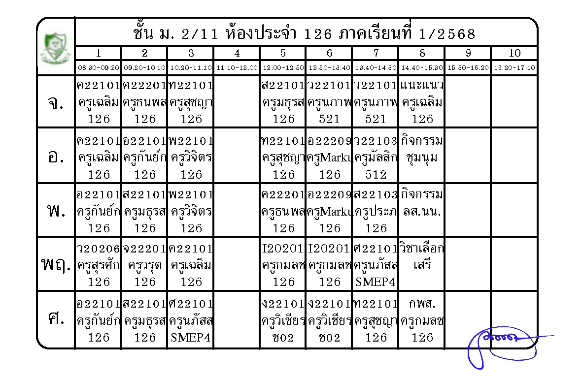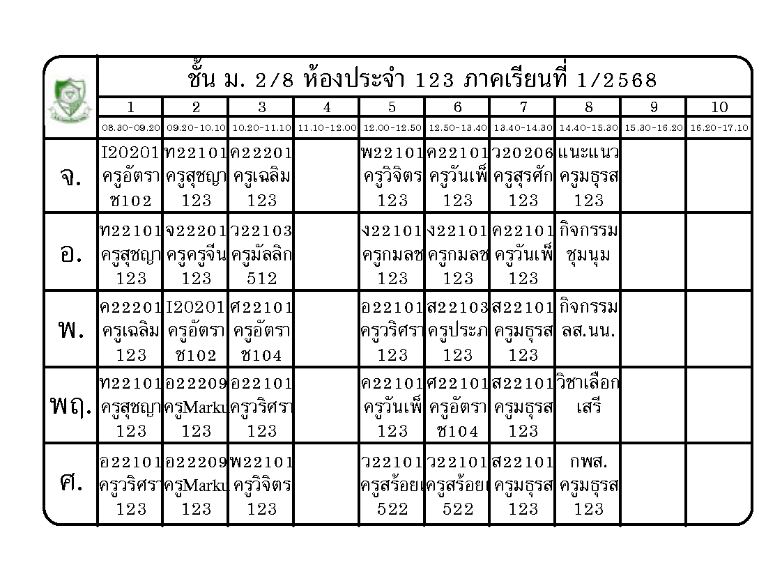 ตารางเรียนนักเรียนชั้น ม.2 ภาคเรียนที่ 1 ปีการศึกษา 2568