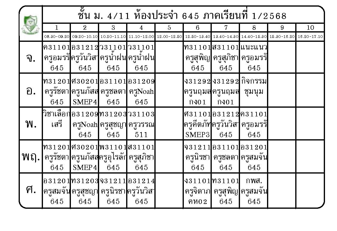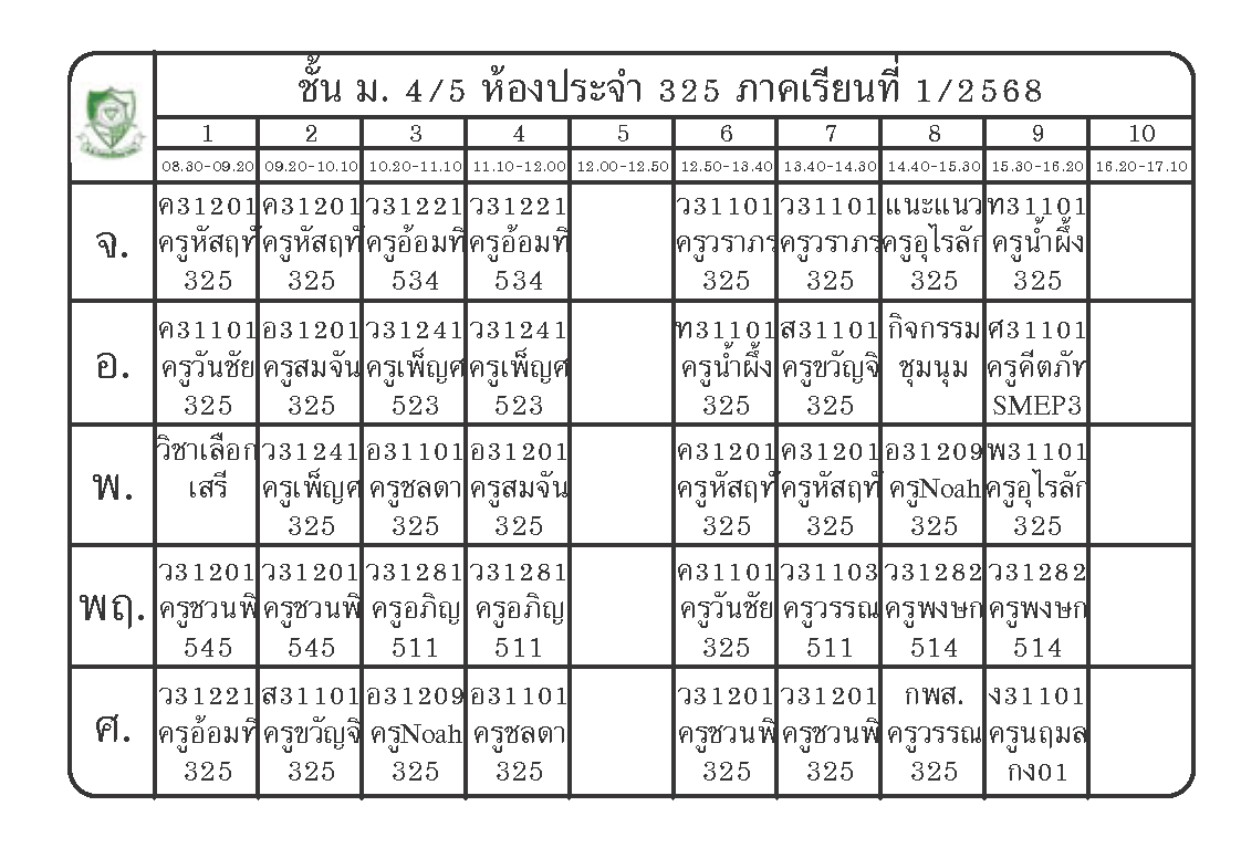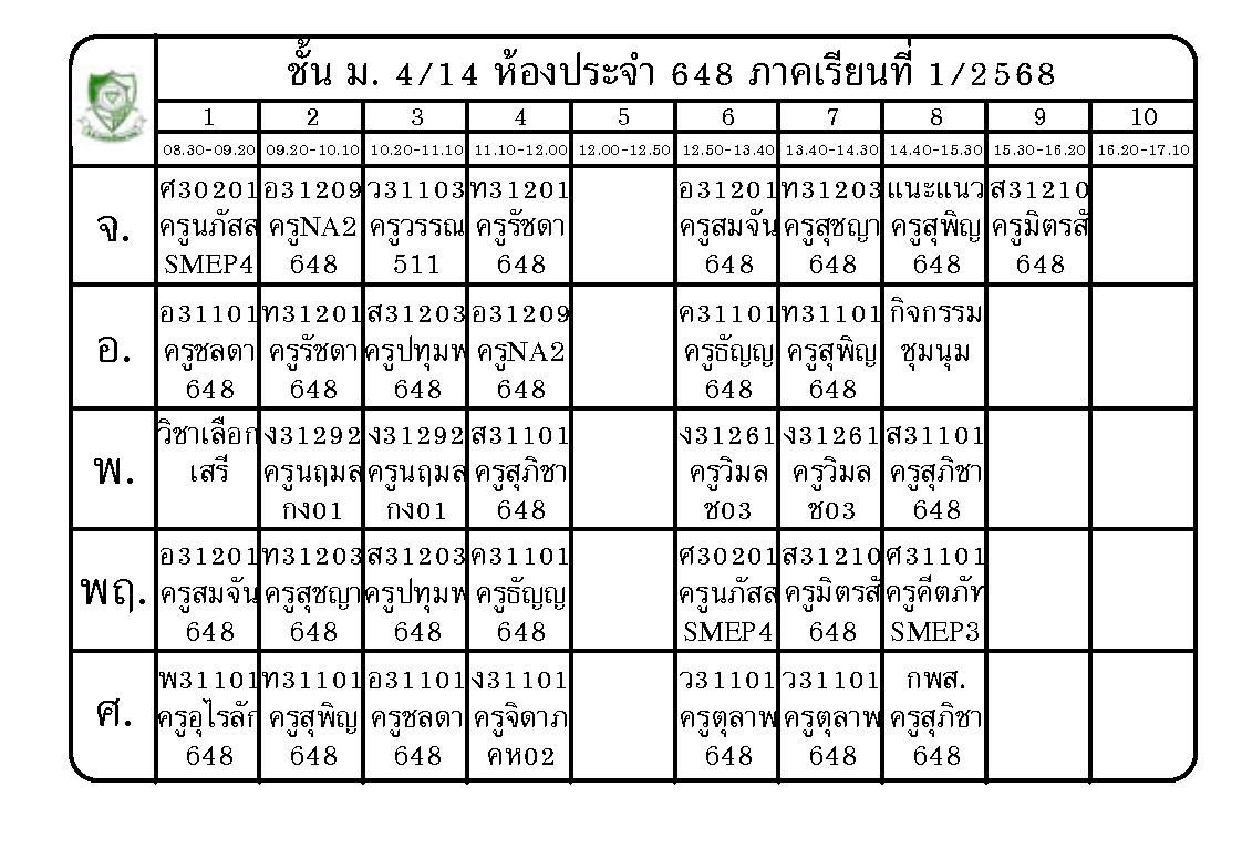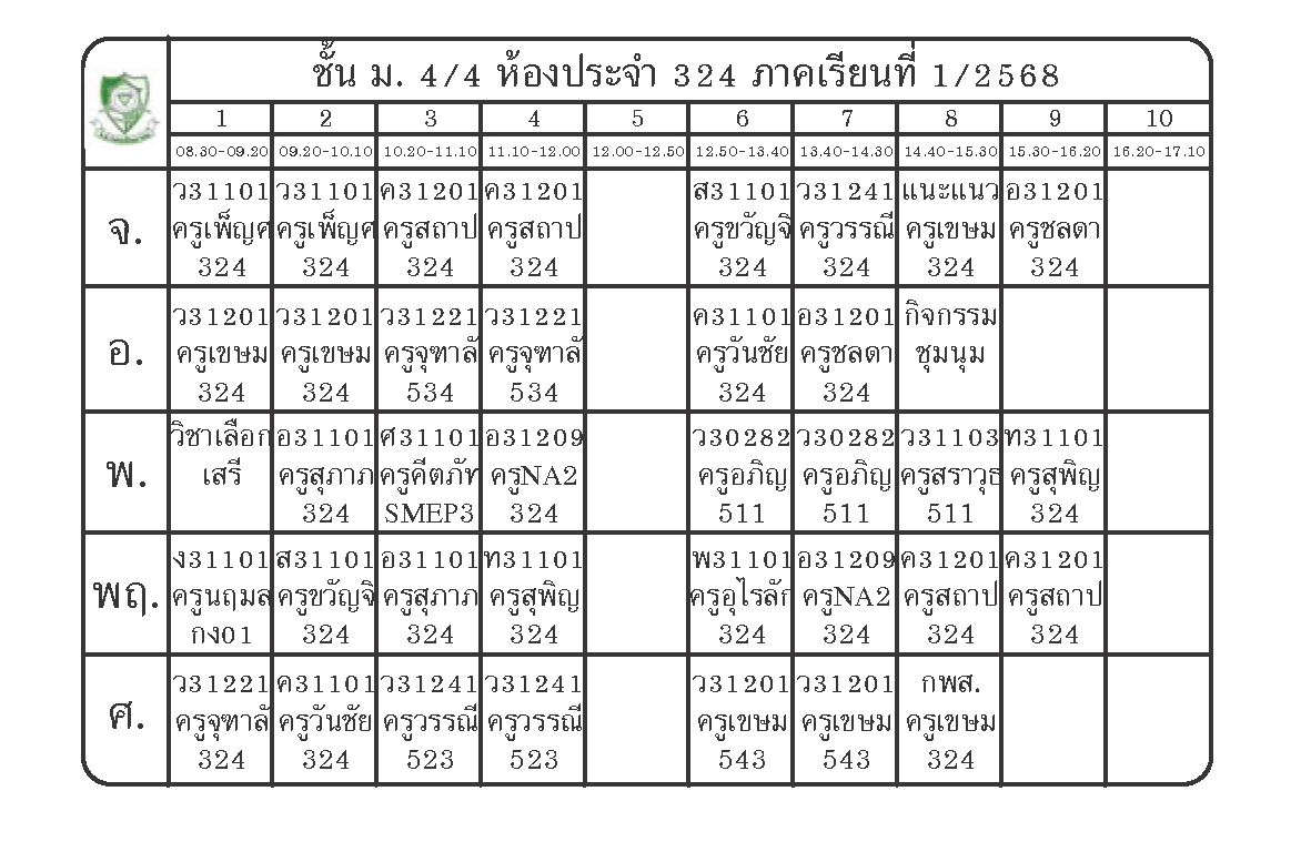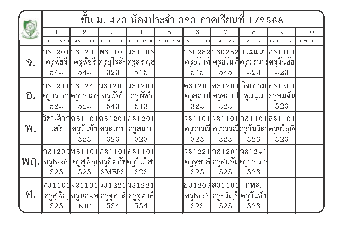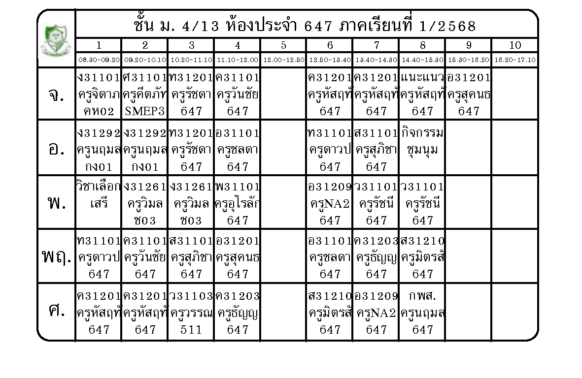 ตารางเรียนนักเรียนชั้น ม.4 ภาคเรียนที่ 1 ปีการศึกษา 2568