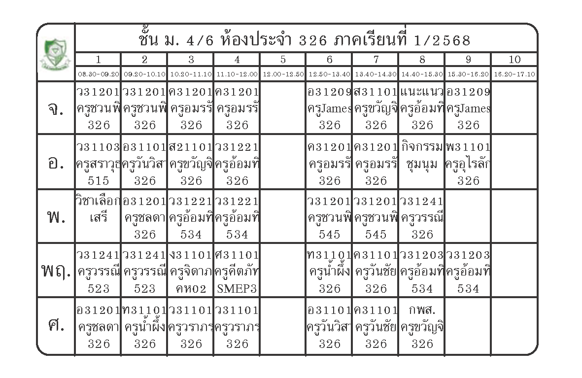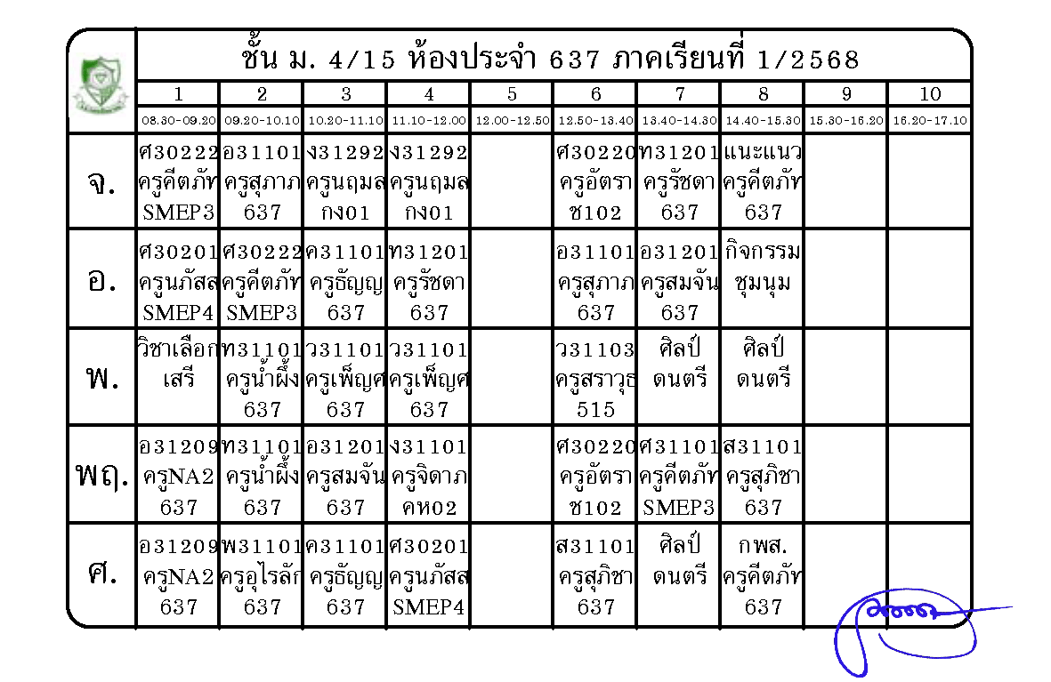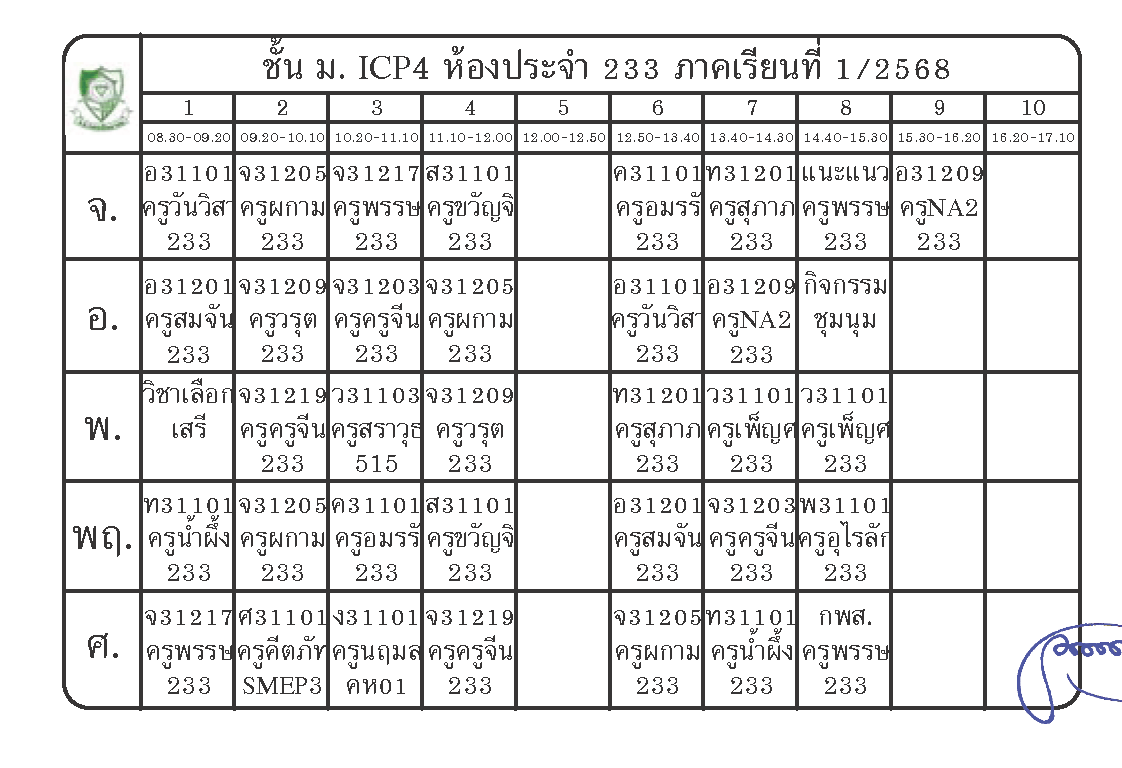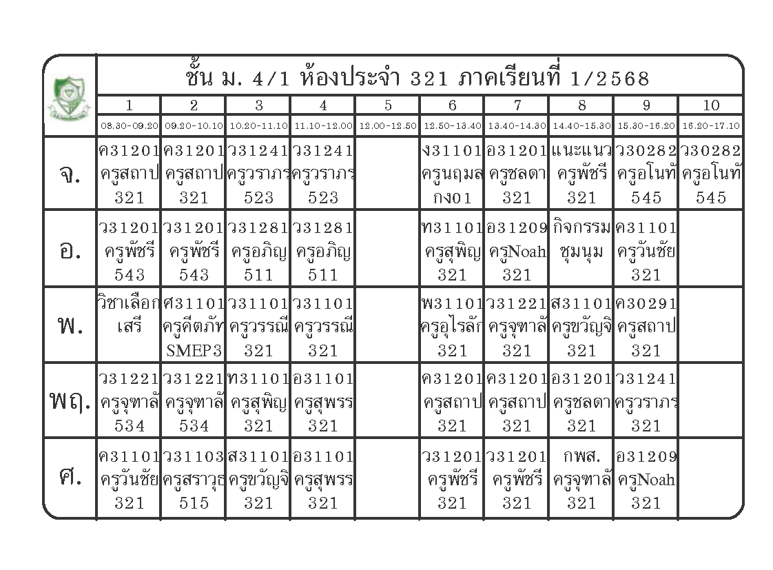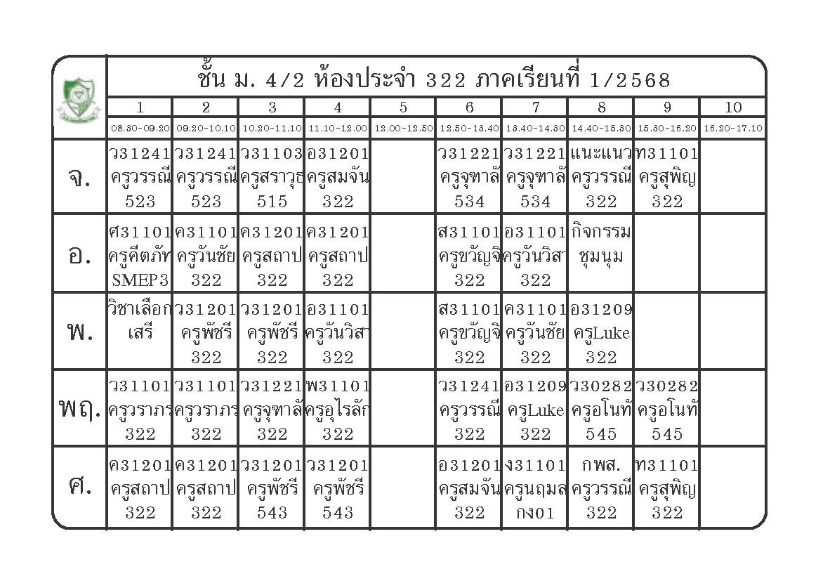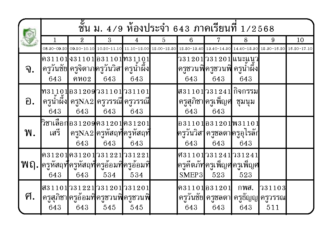 ตารางเรียนนักเรียนชั้น ม.4 ภาคเรียนที่ 1 ปีการศึกษา 2568