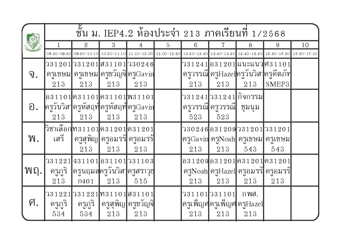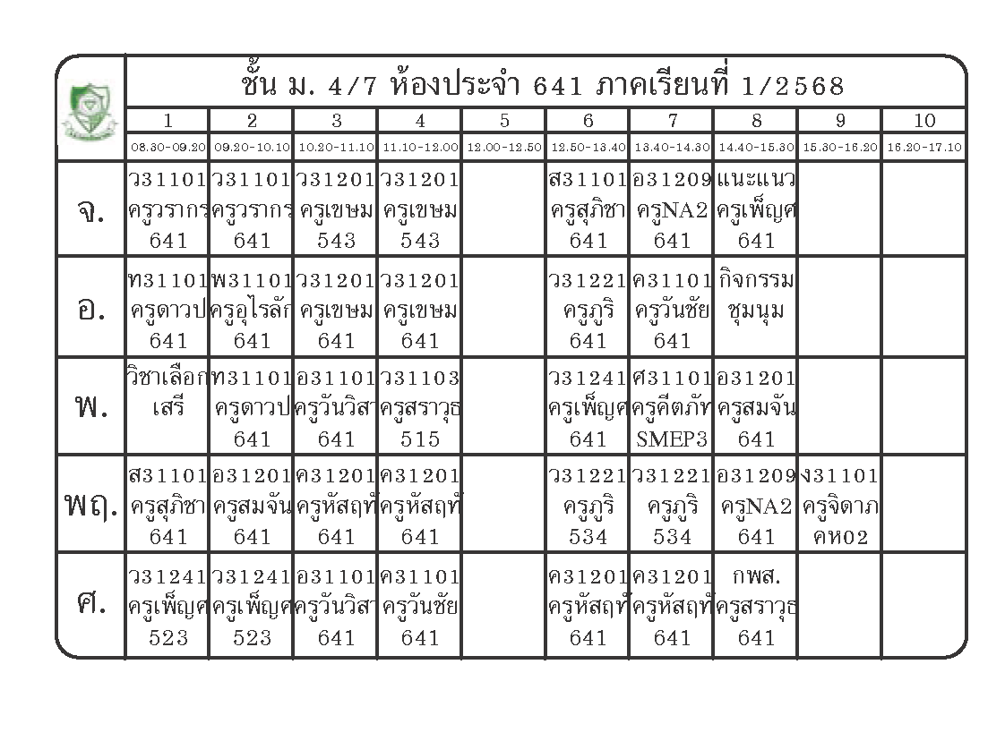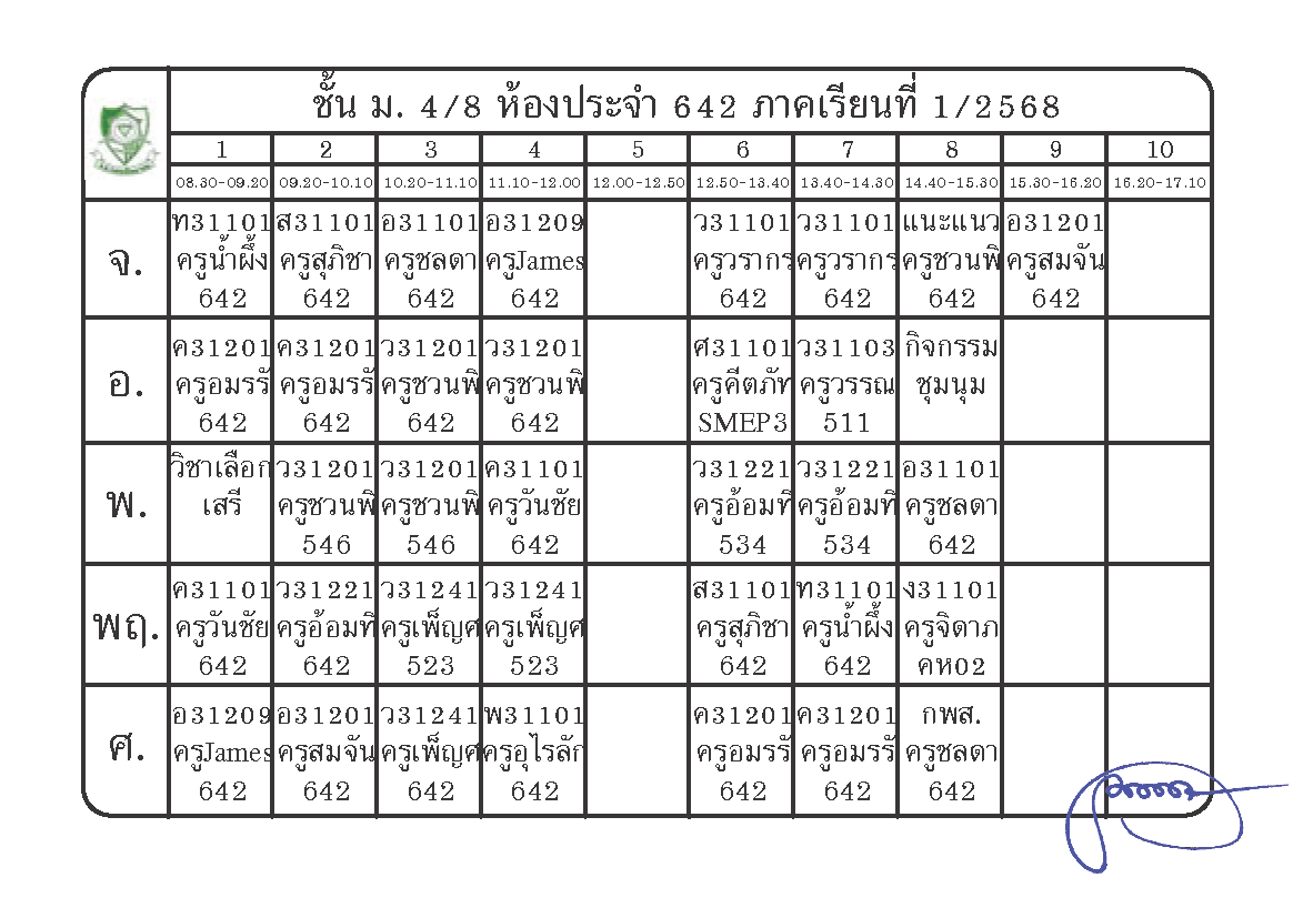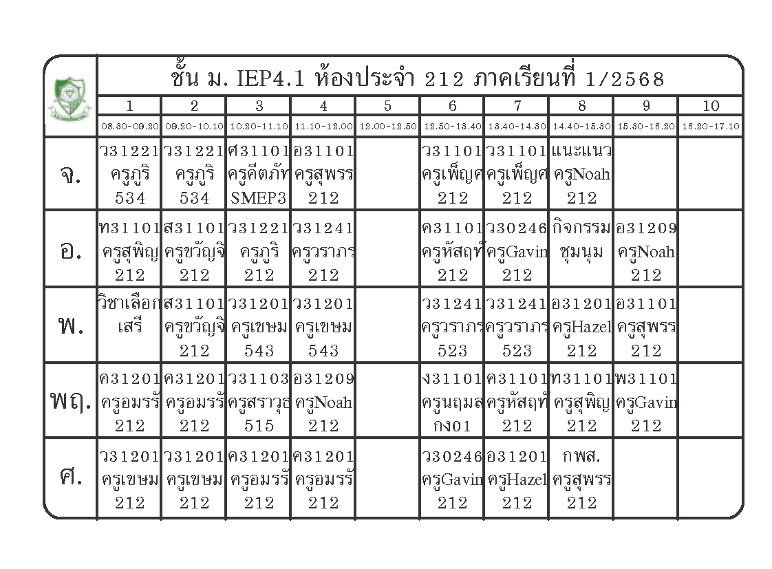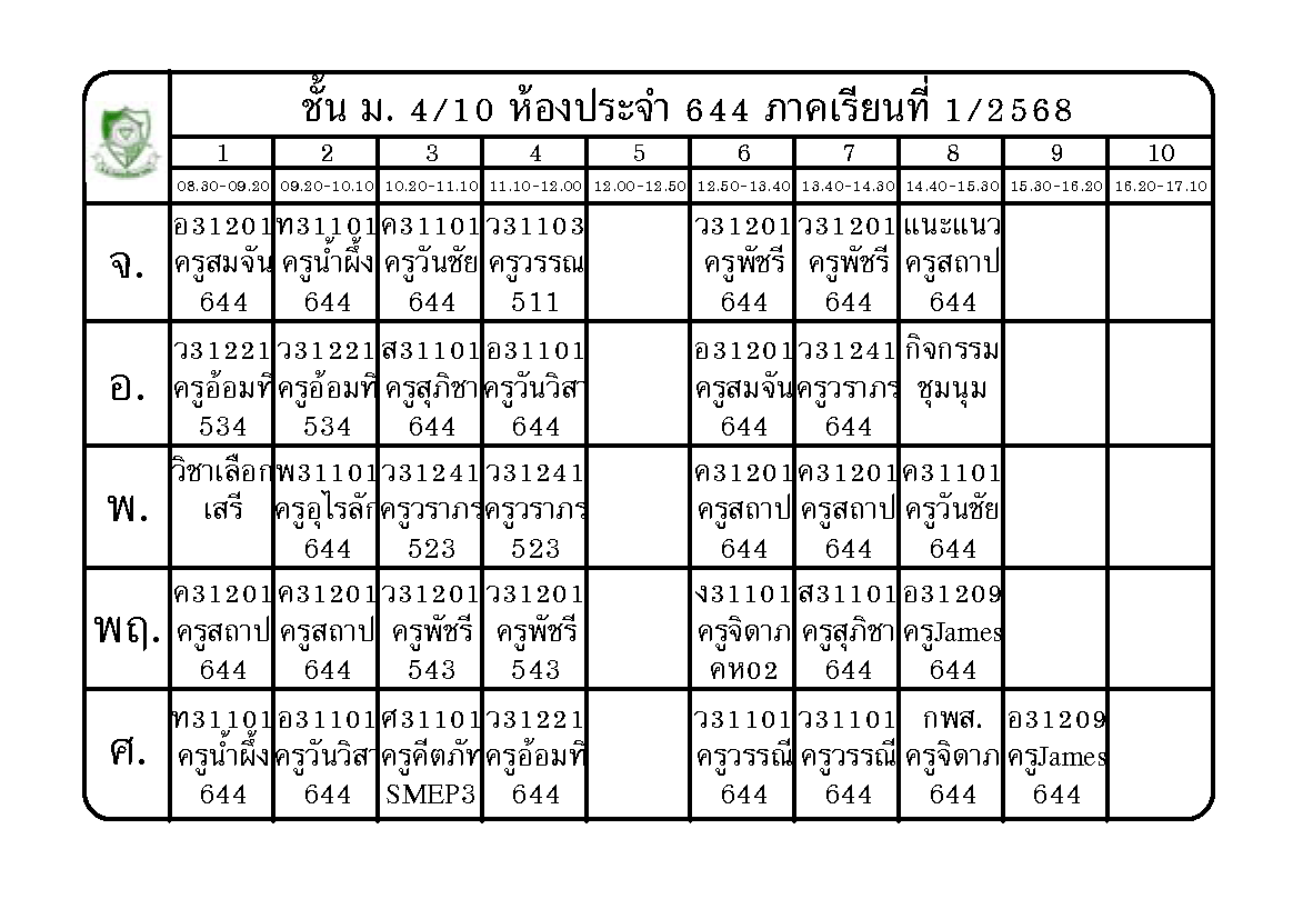 ตารางเรียนนักเรียนชั้น ม.4 ภาคเรียนที่ 1 ปีการศึกษา 2568
