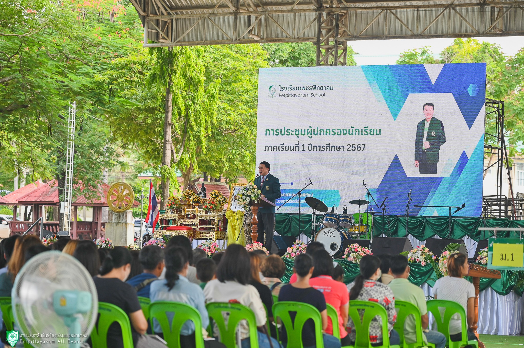 โรงเรียนเพชรพิทยาคมดำเนินการจัดการประชุมผู้ปกครองนักเรียน สานสัมพันธ์พ่อแม่ครูสู่ลูกรัก ระดับชั้นมัธยมศึกษาตอนต้น ครั้งที่ 1 ประจำปีการศึกษา 2567 ประกอบด้วยผู้ปกครอง นักเรียน ระดับชัันมัธยมศึกษาปีที่ 1, 2 และ 3 โดยมี นายวิเศษ ปิ่นพิทักษ์ ผู้อำนวยการโรงเรียน เป็นเกียรติกล่าวต้อนรับและรายงานผลการดำเนินงานของโรงเรียน พร้อมด้วยรองผู้อำนวยการ คณะครูร่วมกิจกรรม เมื่อวันที่ 6 กรกฎาคม 2567 ณ อาคารพระราชปริยัติบัณฑิต 112 ปี โรงเรียนเพชรพิทยาคม