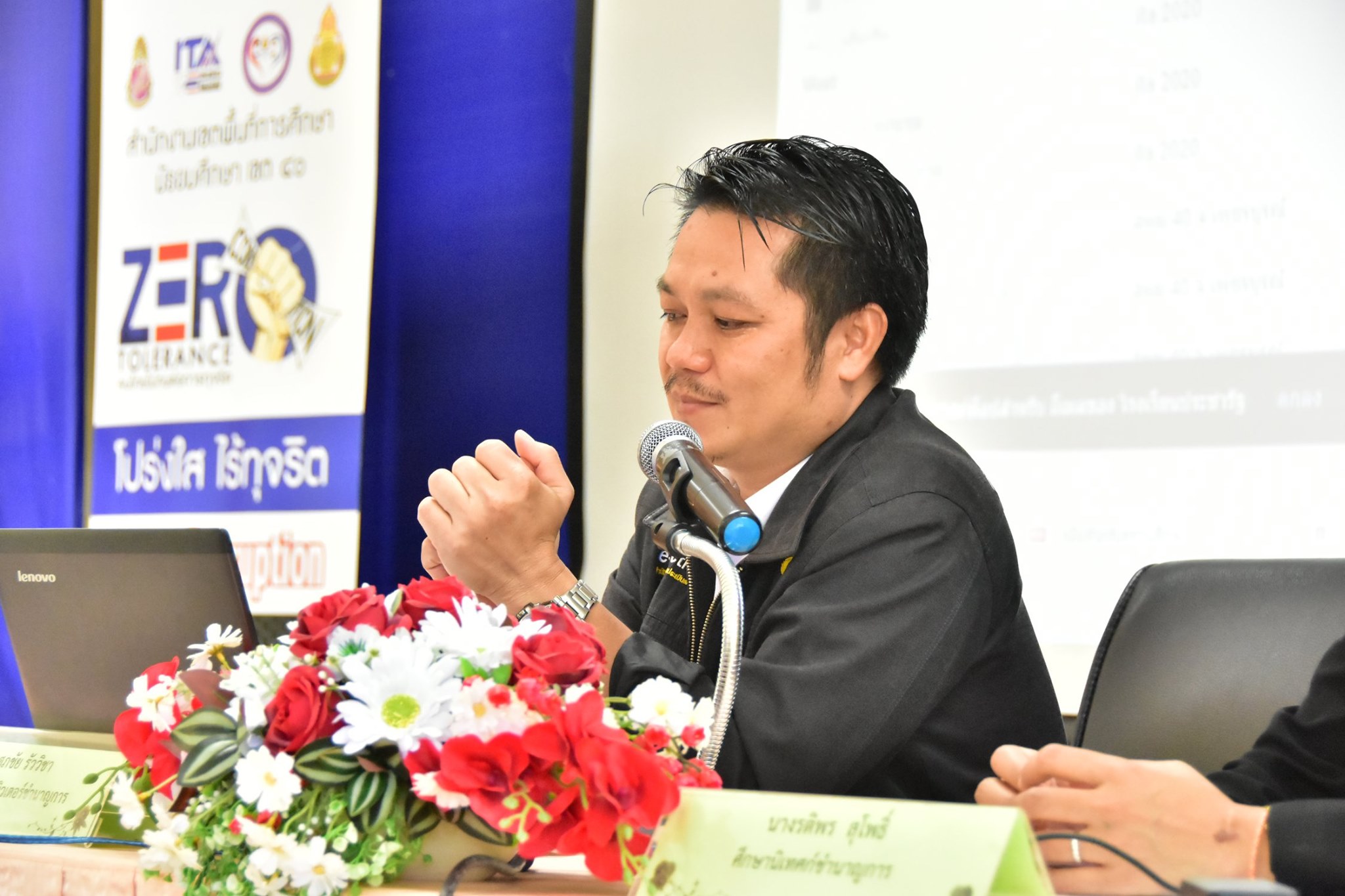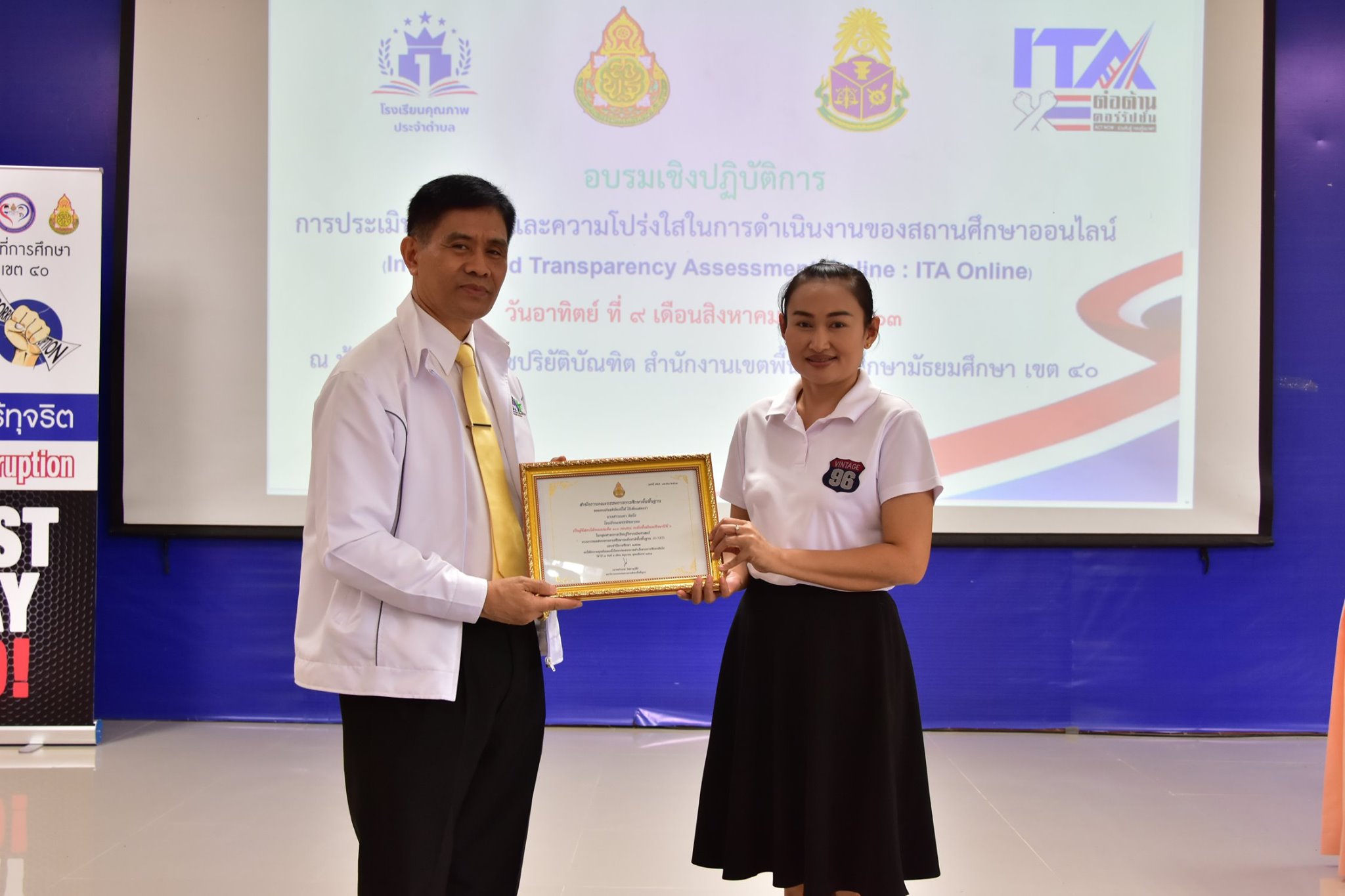 โดยมีนายประสิทธิ์ อินวรรณา ผู้อำนวยการสำนักงานเขตพื้นที่การศึกษามัธยมศึกษา เขต 40 เป็นประธานพิธีเปิดพร้อมทั้งบรรยายพิเศษ และนายวาทกานต์ ศรีธรราษฎร์ รองผู้อำนวยการสำนักงานเขตพื้นที่การศึกษามัธยมศึกษา เขต 40 ผู้กล่าวรายงาน ให้แก่คณะผู้บริหารสถานศึกษาและผู้รับผิดชอบการประเมิน ITA ของโรงเรียนในสังกัด จำนวนทั้งสิ้น 117 คน