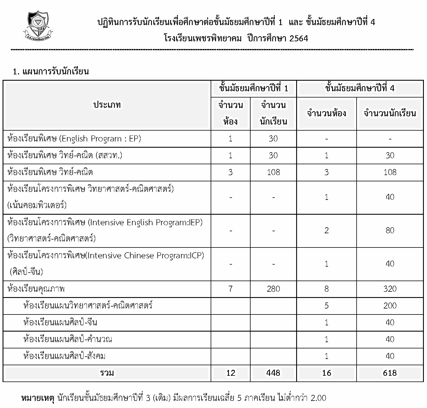 โรงเรียนเพชรพิทยาคม ปีการศึกษา 2564