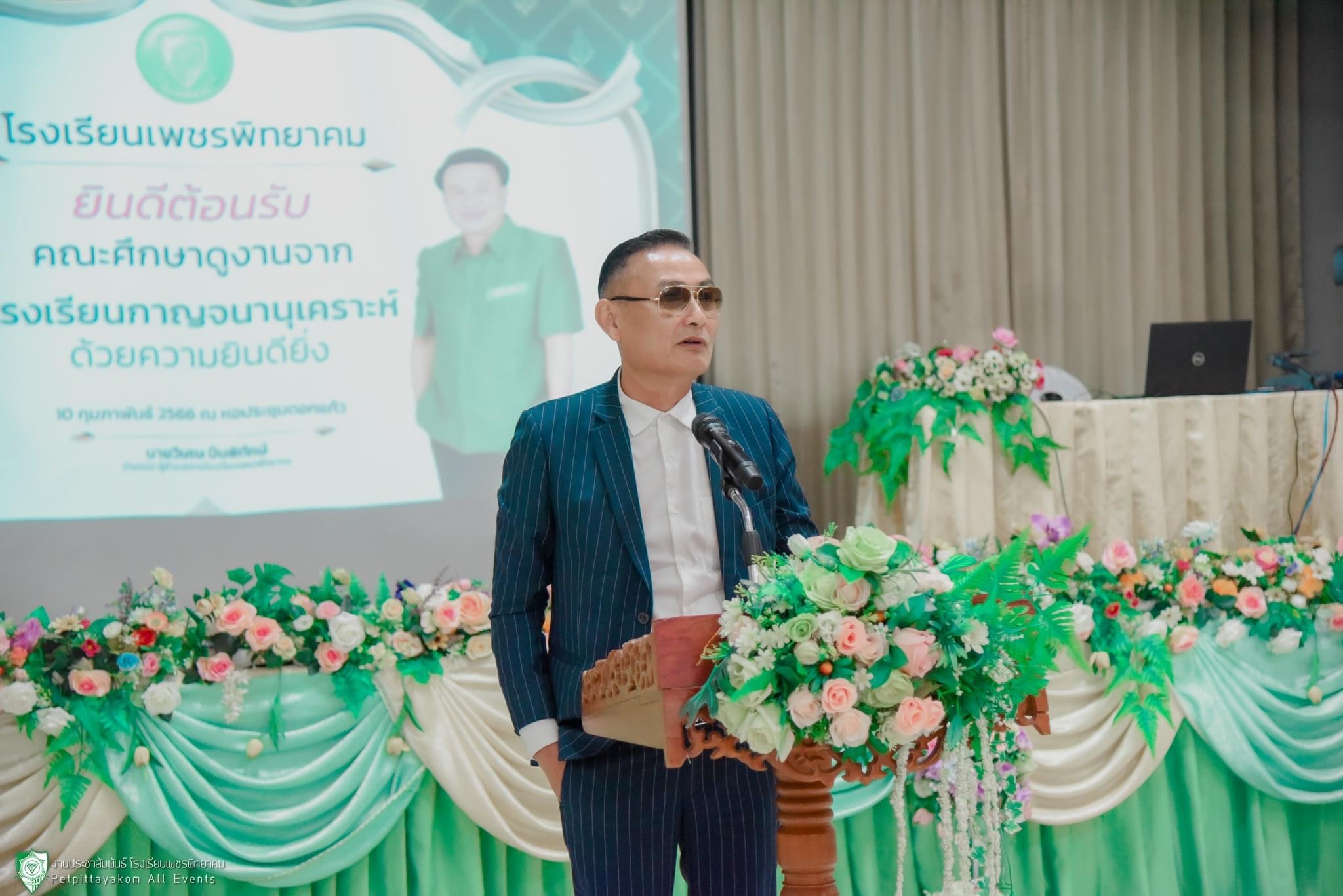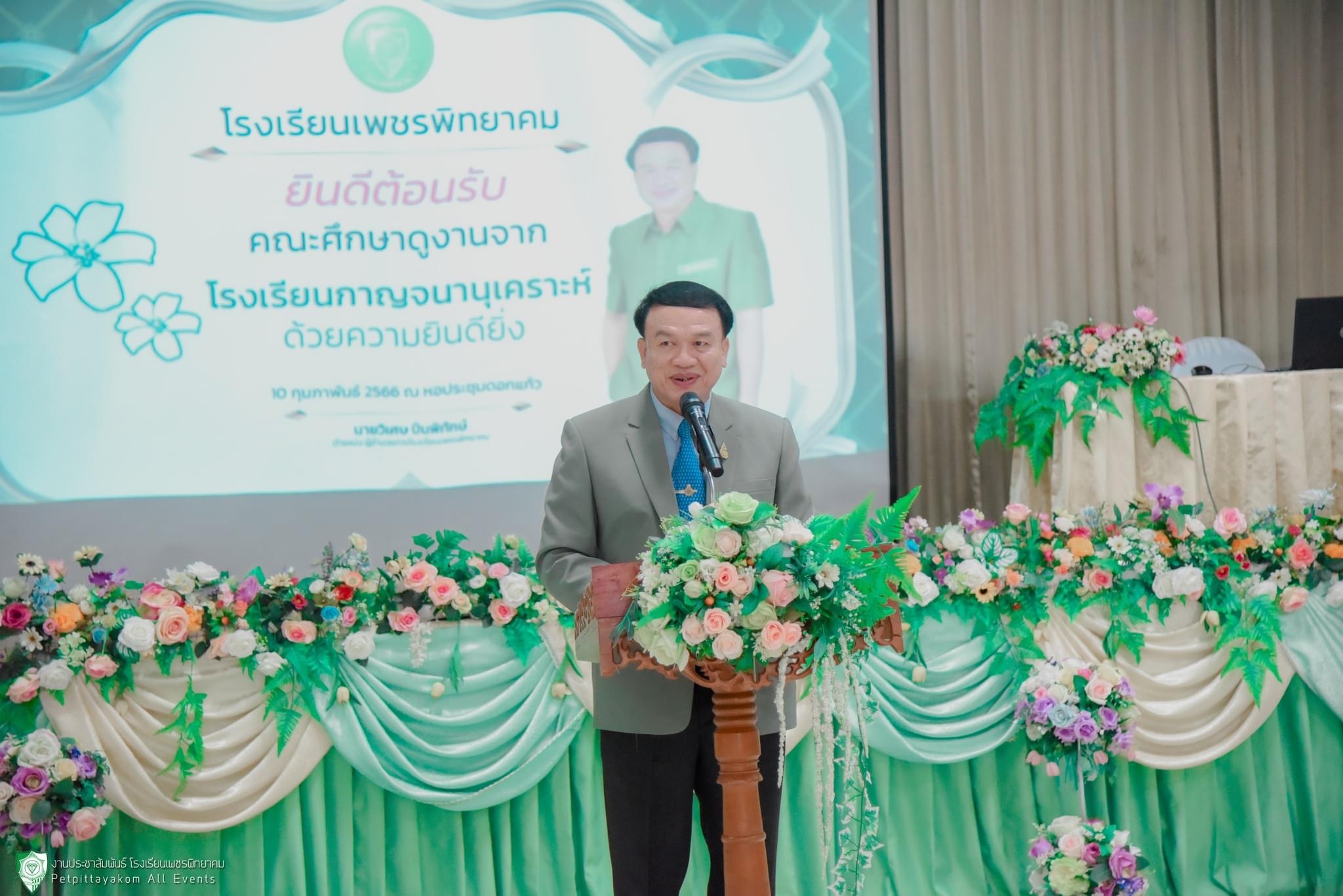 9 กุมภาพันธ์ 2566 นายวิเศษ ปิ่นพิทักษ์ ผู้อำนวยการโรงเรียนเพชรพิทยาคม พร้อมด้วยรองผู้อำนวยการ และคณะครูร่วมต้อนรับคณะศึกษาดูงาน แลกเปลี่ยนเรียนรู้ด้านการจัดการเรียนการสอนกลุ่มสาระการเรียนรู้วิทยาศาสตร์และเทคโนโลยีกับโรงเรียนกาญจนานุเคราะห์ จังหวัดกาญจนบุรี นำโดย ดร.ณรินทร์ ชำนาญดู ผู้อำนวยการโรงเรียน พร้อมด้วยฝ่ายบริหาร และคณะครู ณ หอประชุมดอกแก้ว โรงเรียนเพชรพิทยาคม