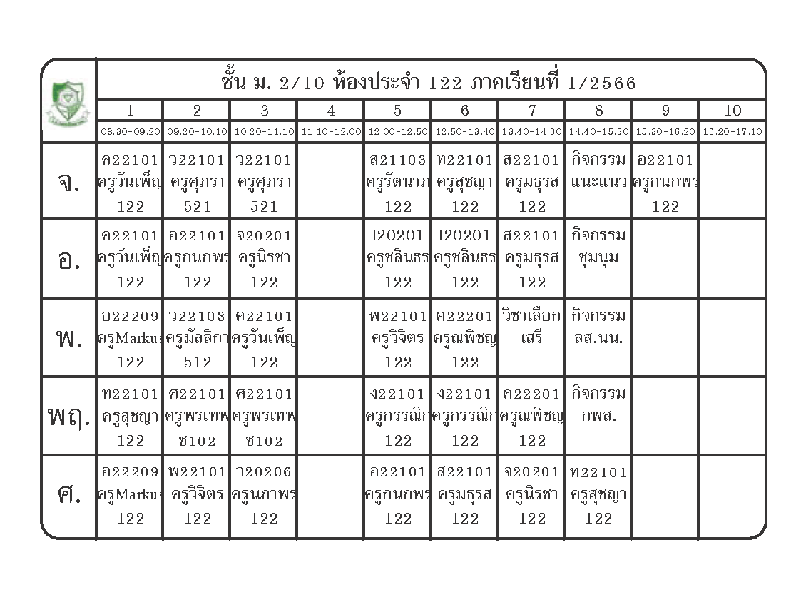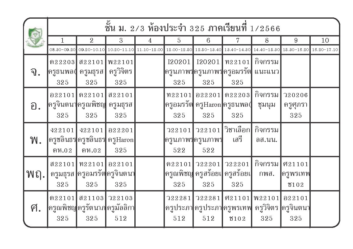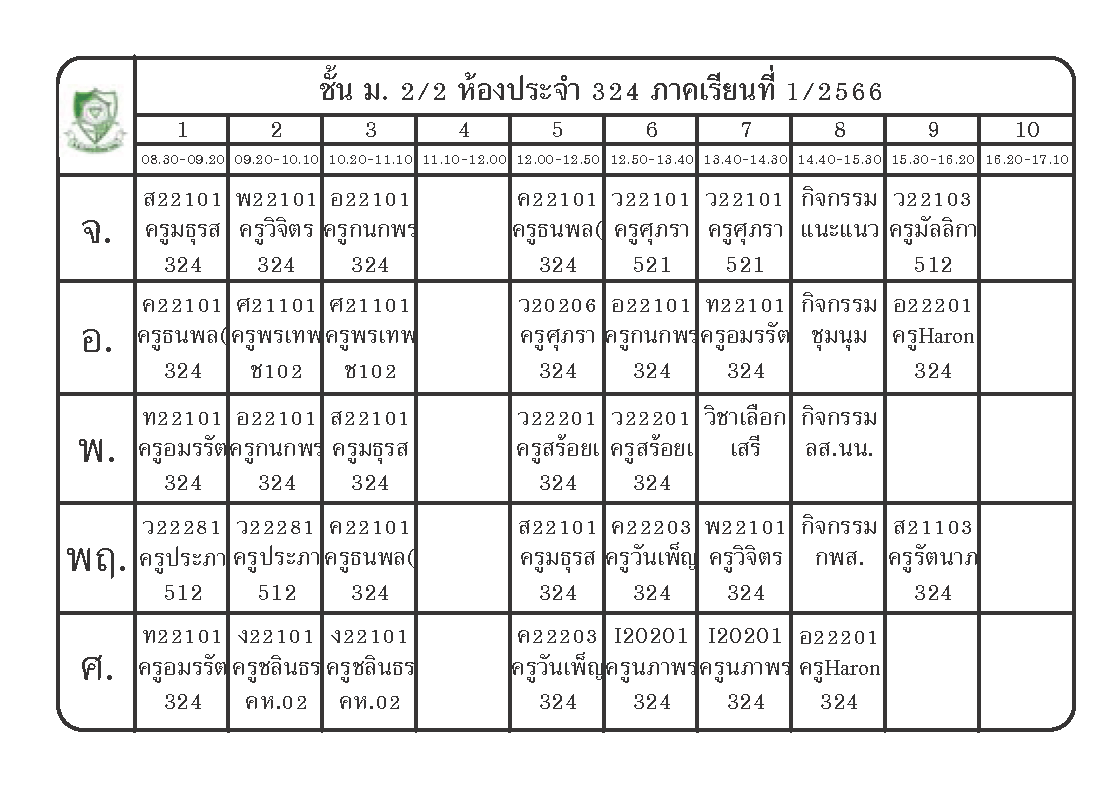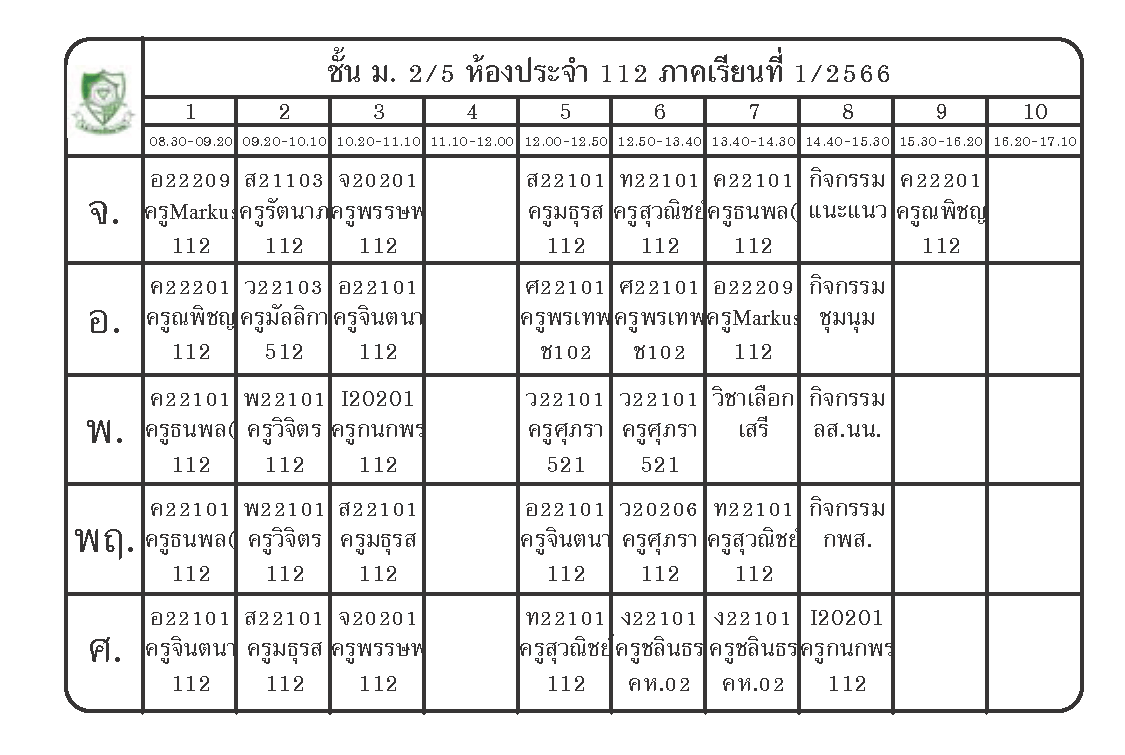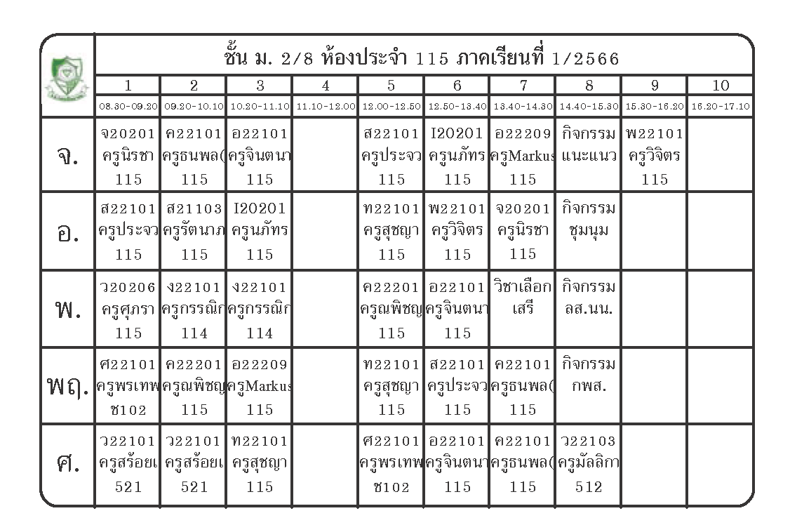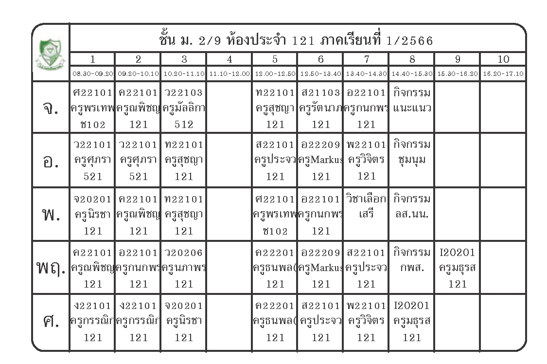 ตารางเรียนนักเรียนชั้น ม.2 ภาคเรียนที่ 1 ปีการศึกษา 2566
