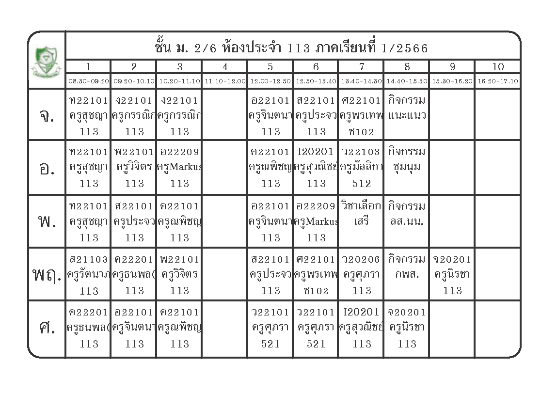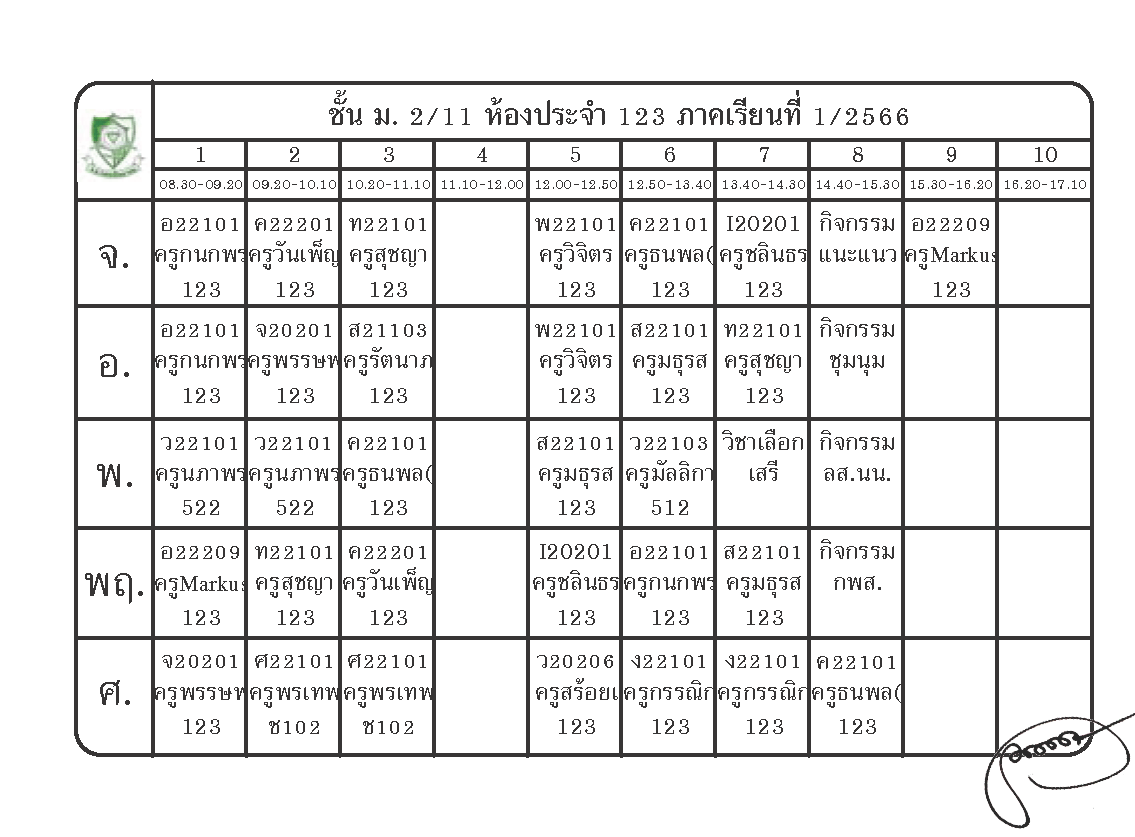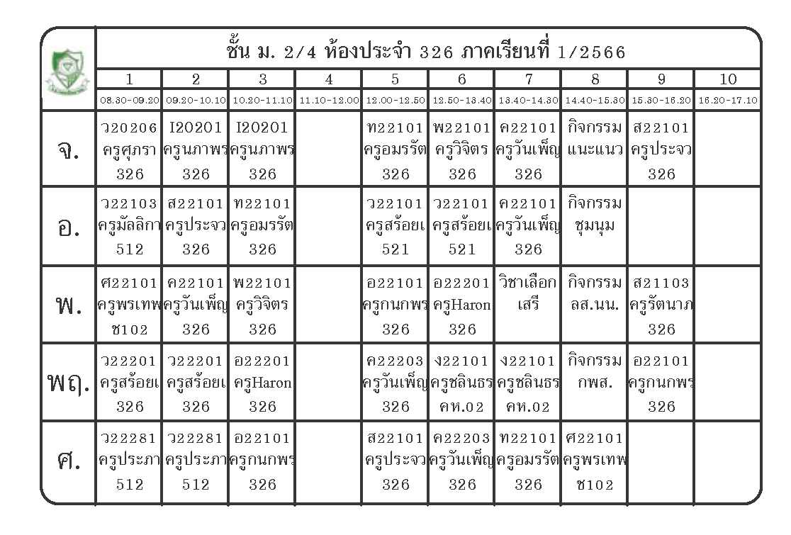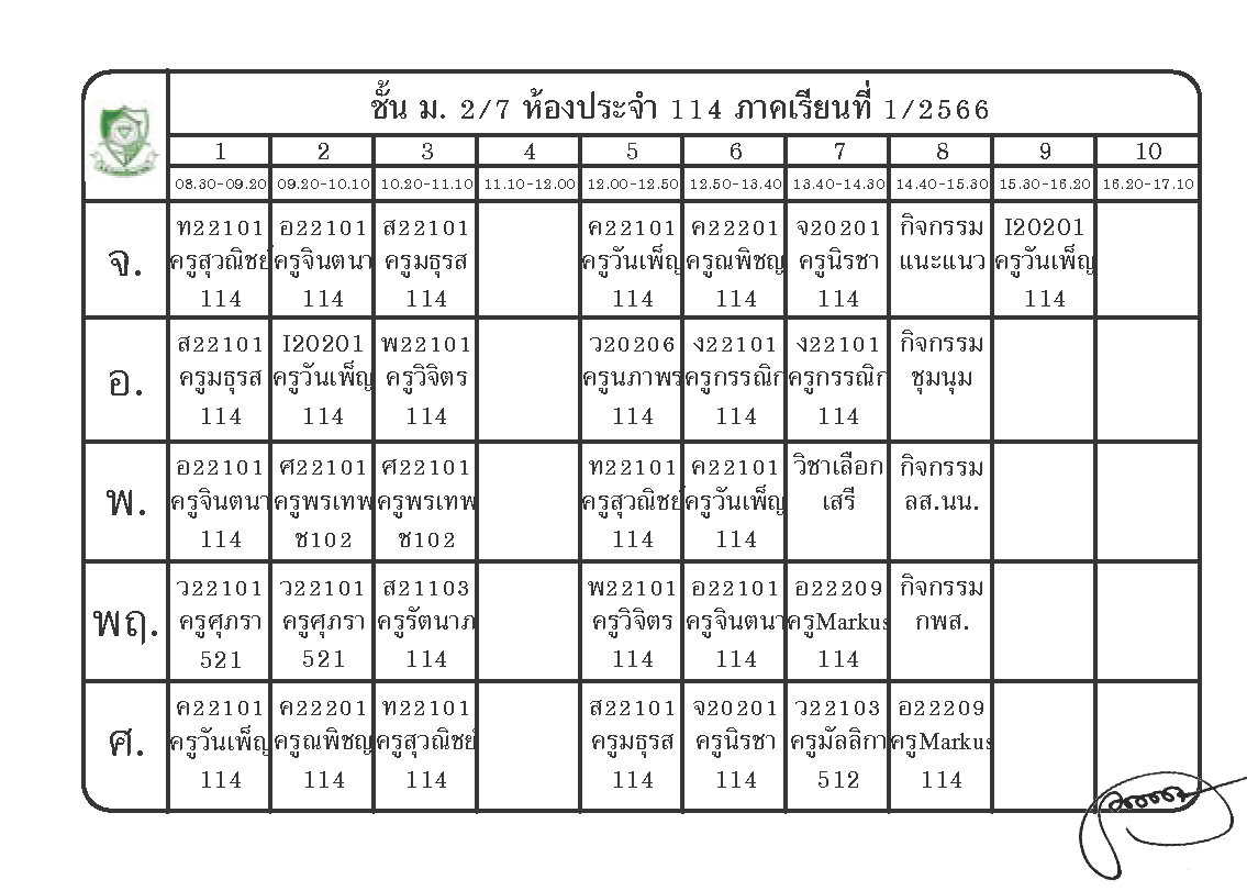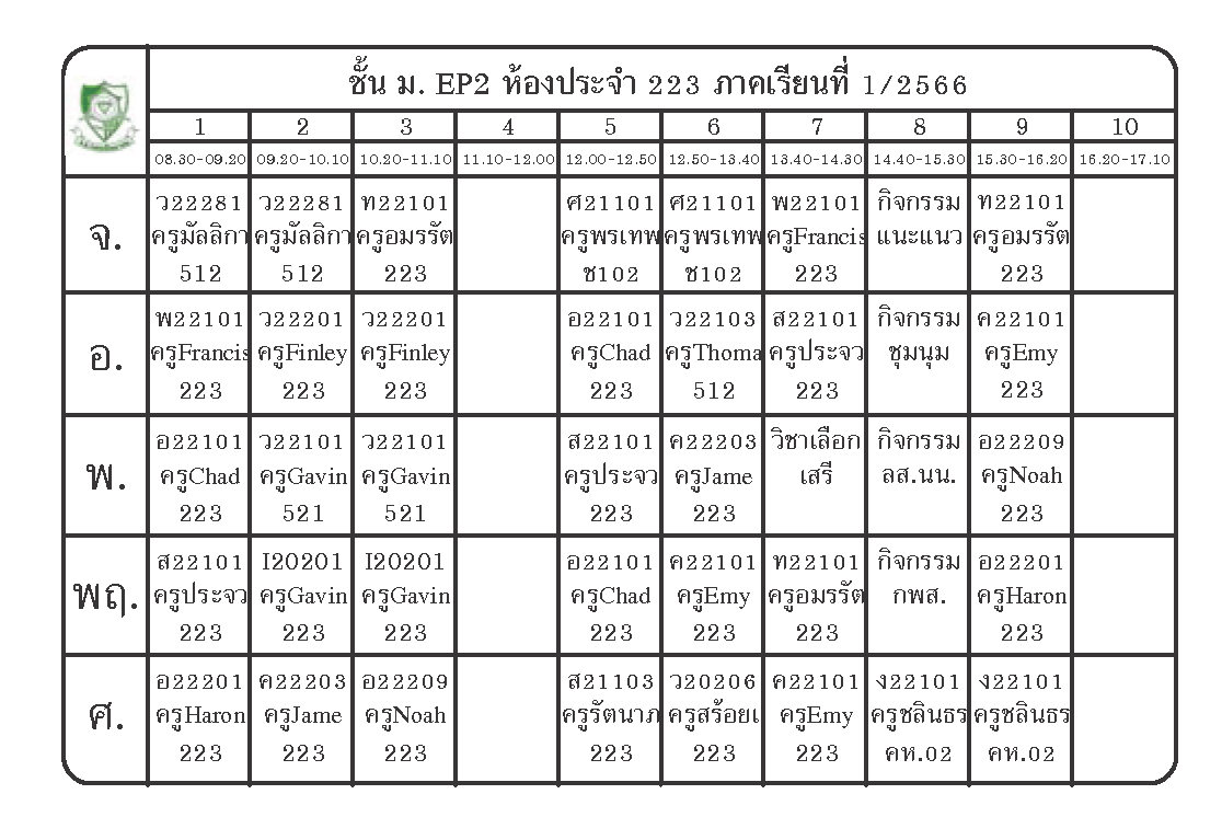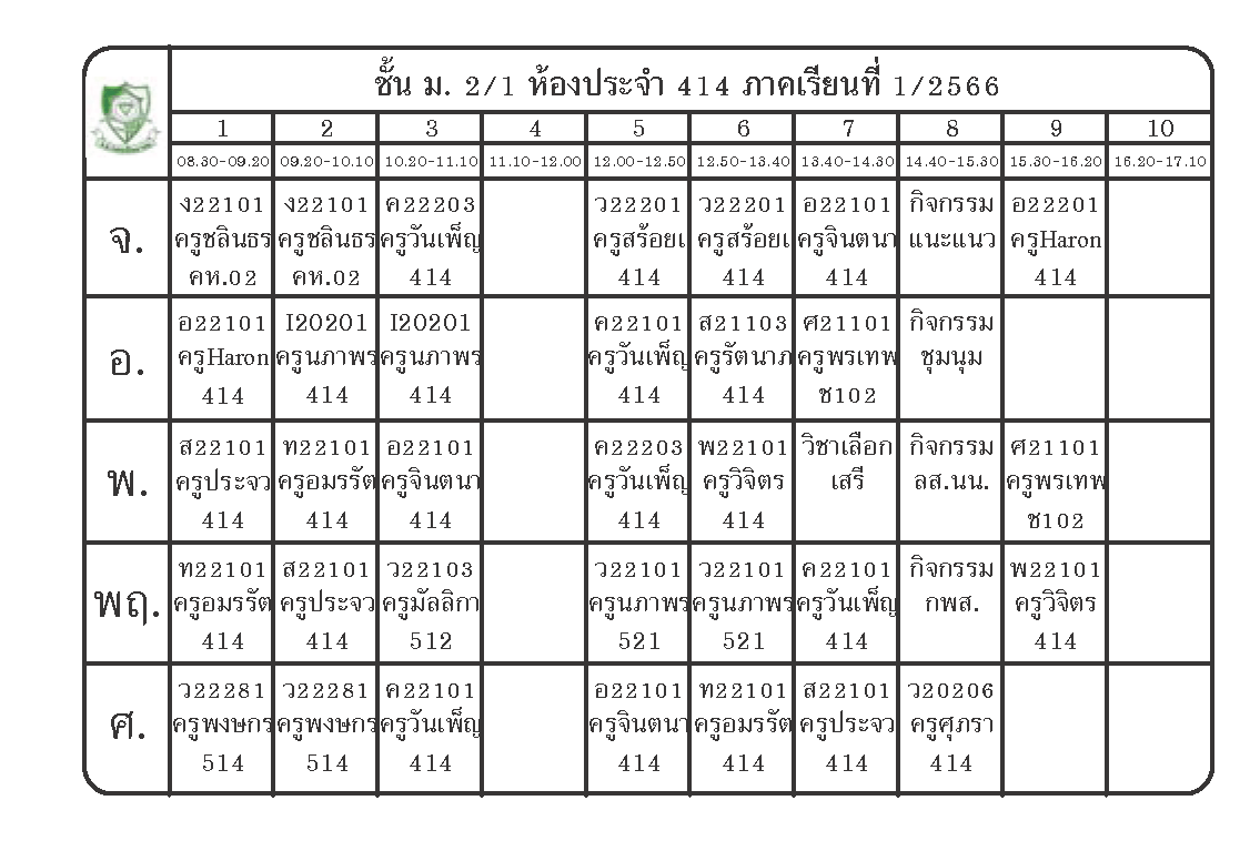 ตารางเรียนนักเรียนชั้น ม.2 ภาคเรียนที่ 1 ปีการศึกษา 2566