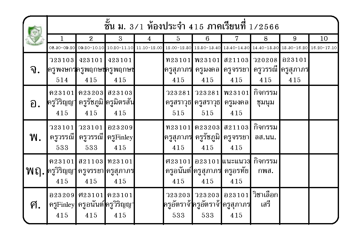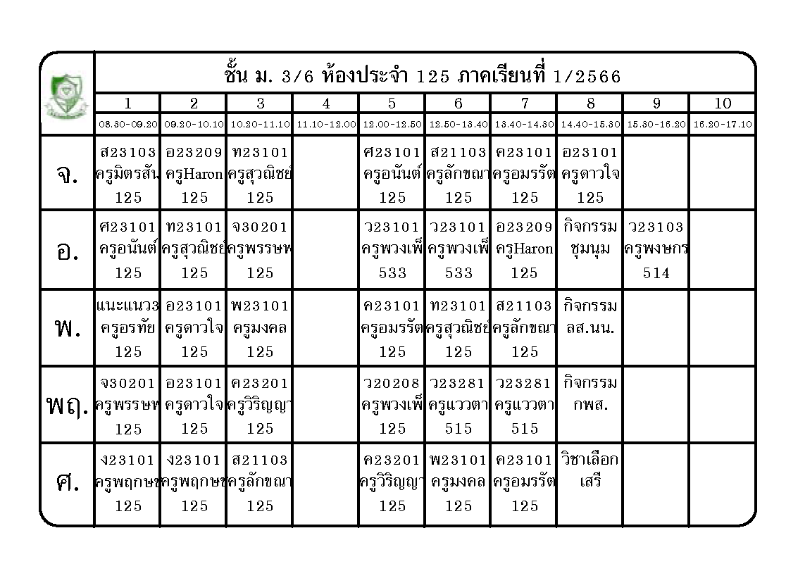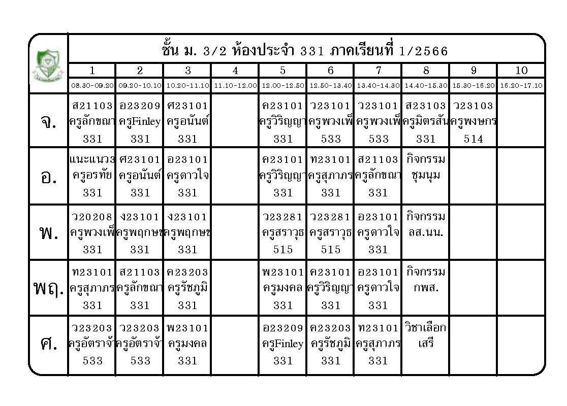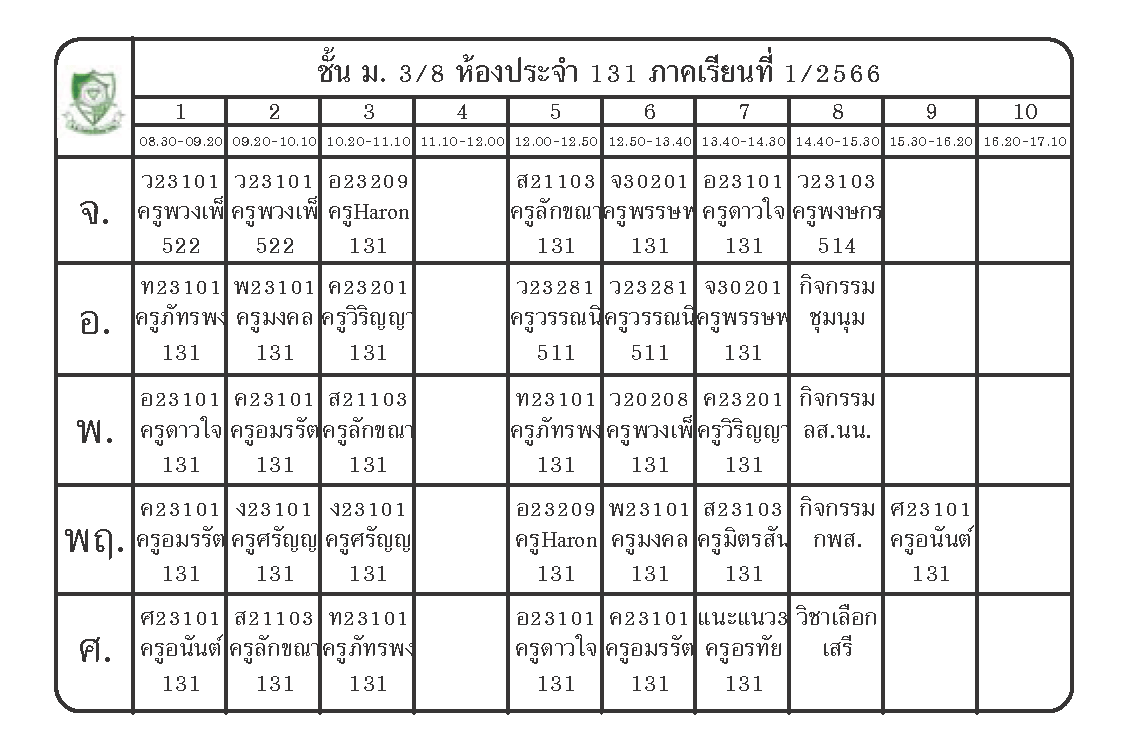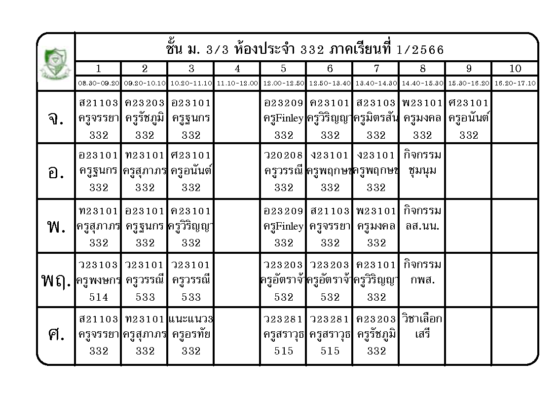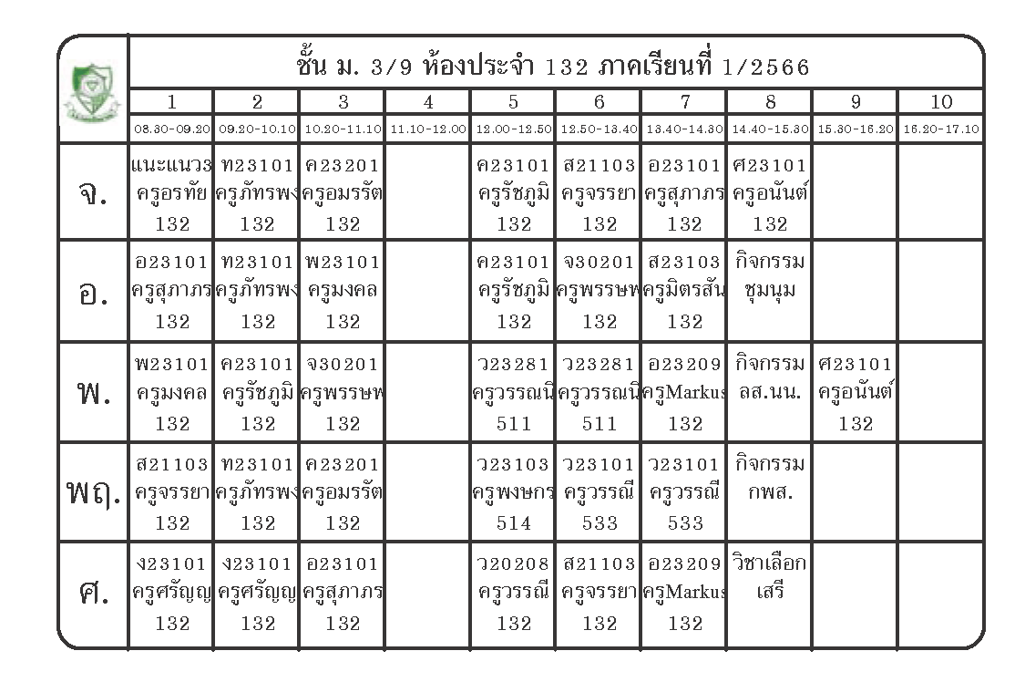 ตารางเรียนนักเรียนชั้น ม.3 ภาคเรียนที่ 1 ปีการศึกษา 2566