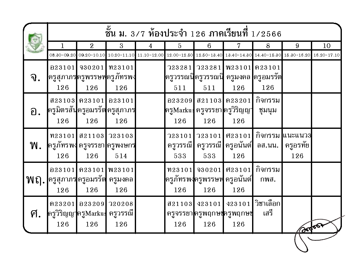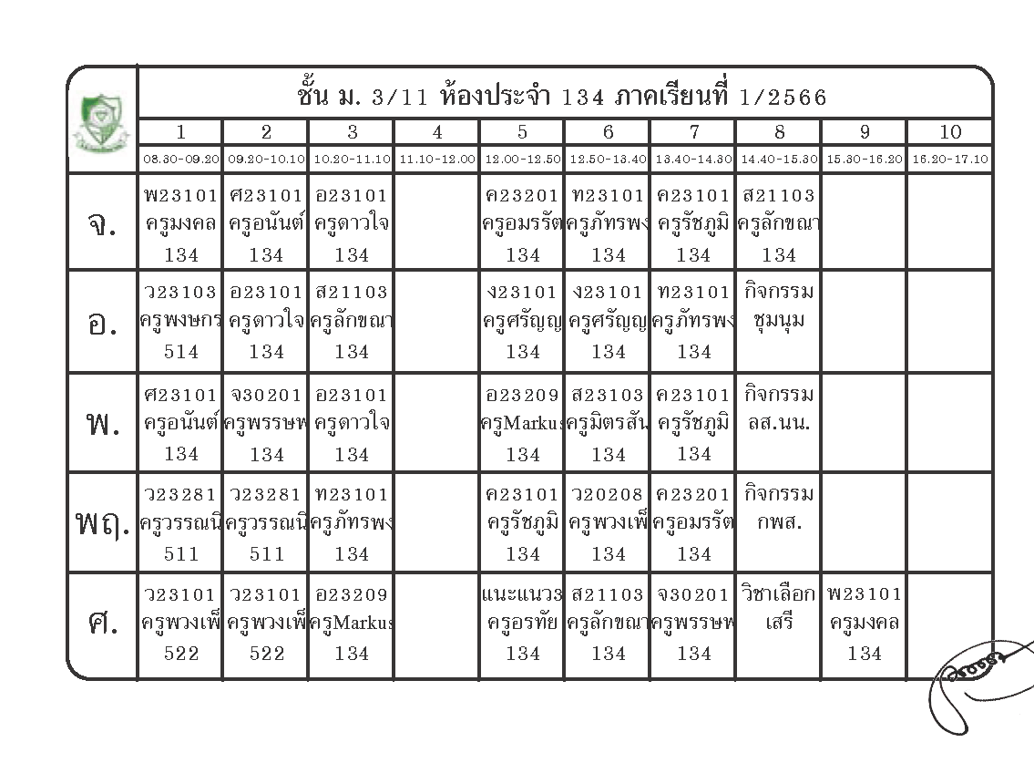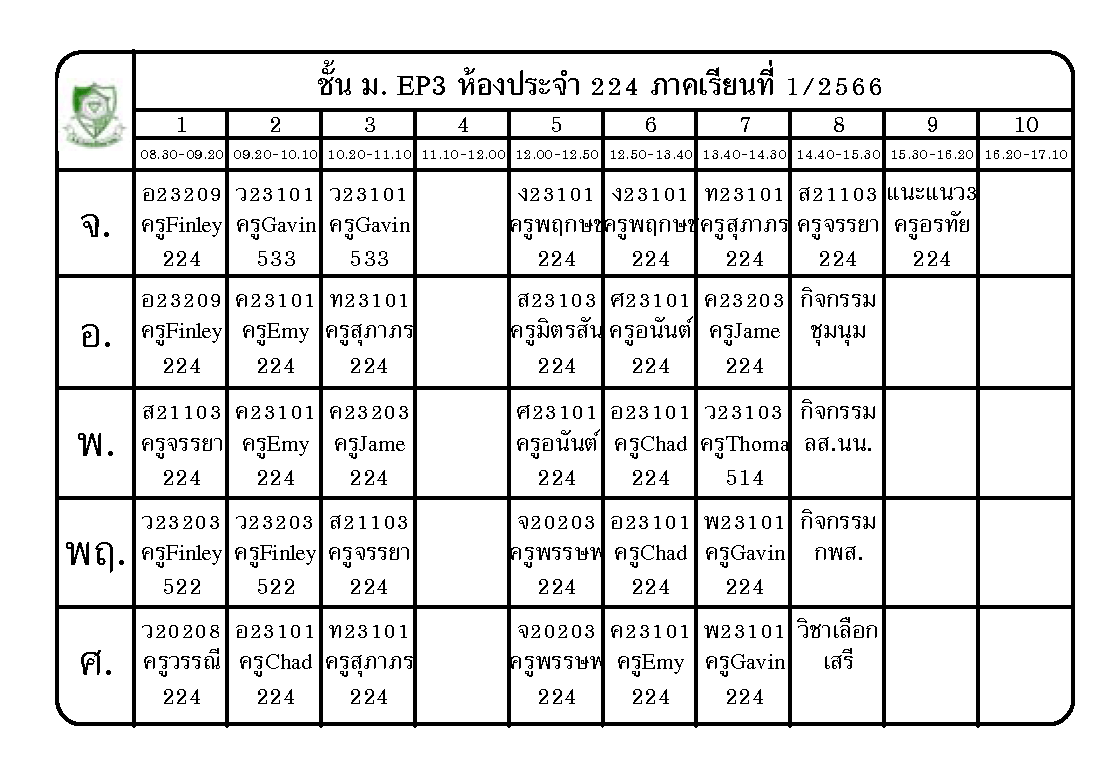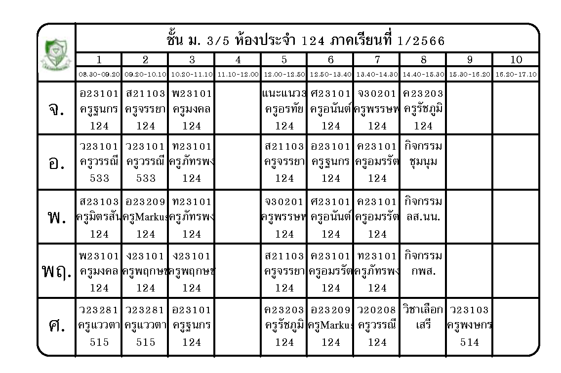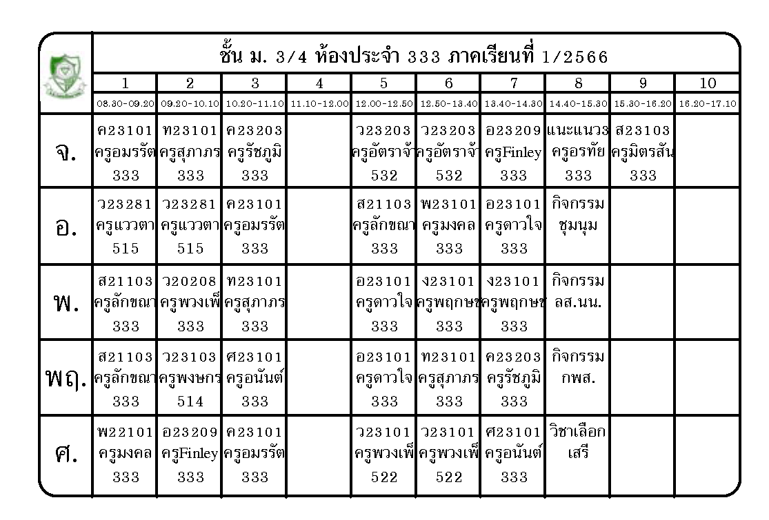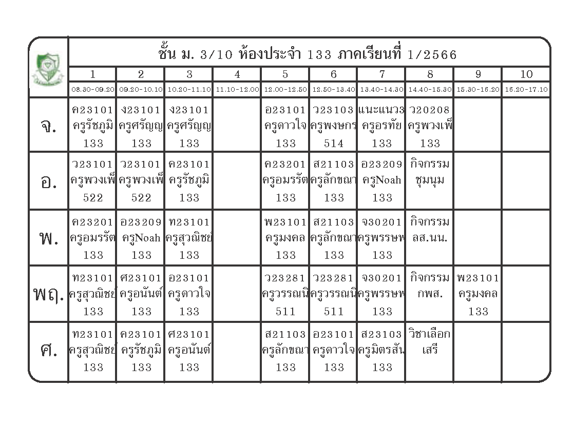 ตารางเรียนนักเรียนชั้น ม.3 ภาคเรียนที่ 1 ปีการศึกษา 2566