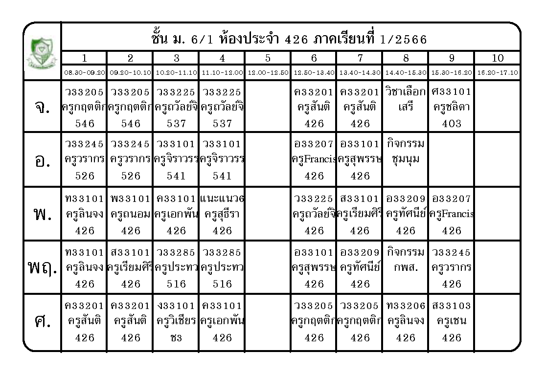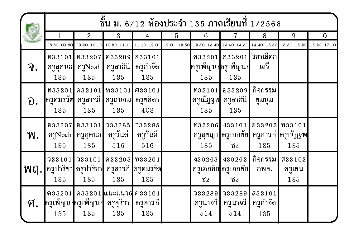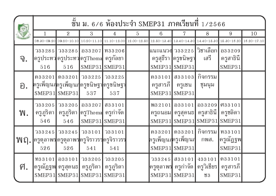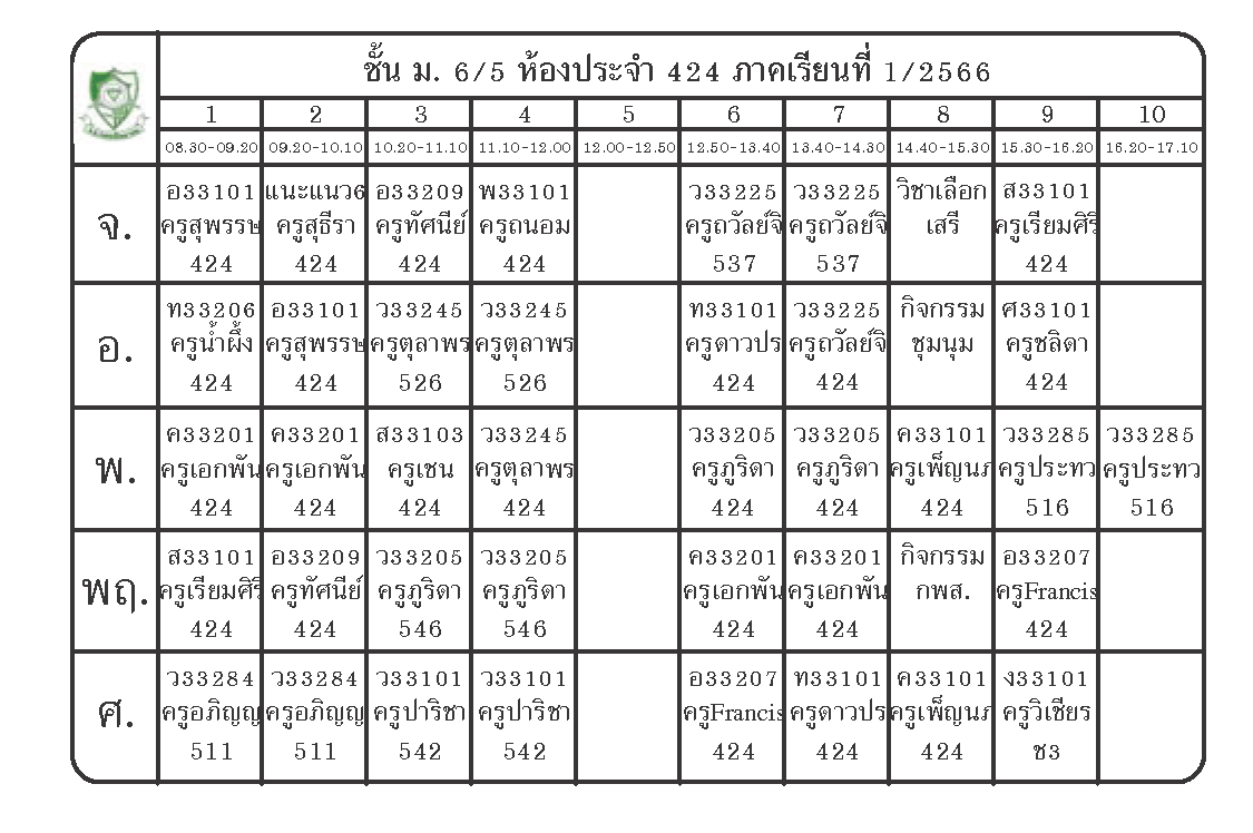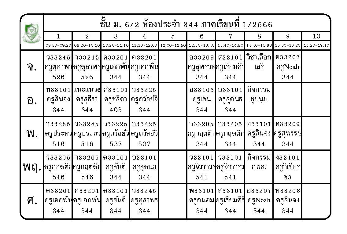 ตารางเรียนนักเรียนชั้น ม.6 ภาคเรียนที่ 1 ปีการศึกษา 2566
