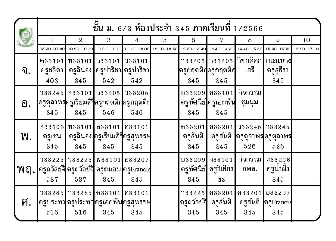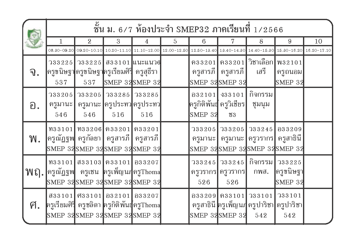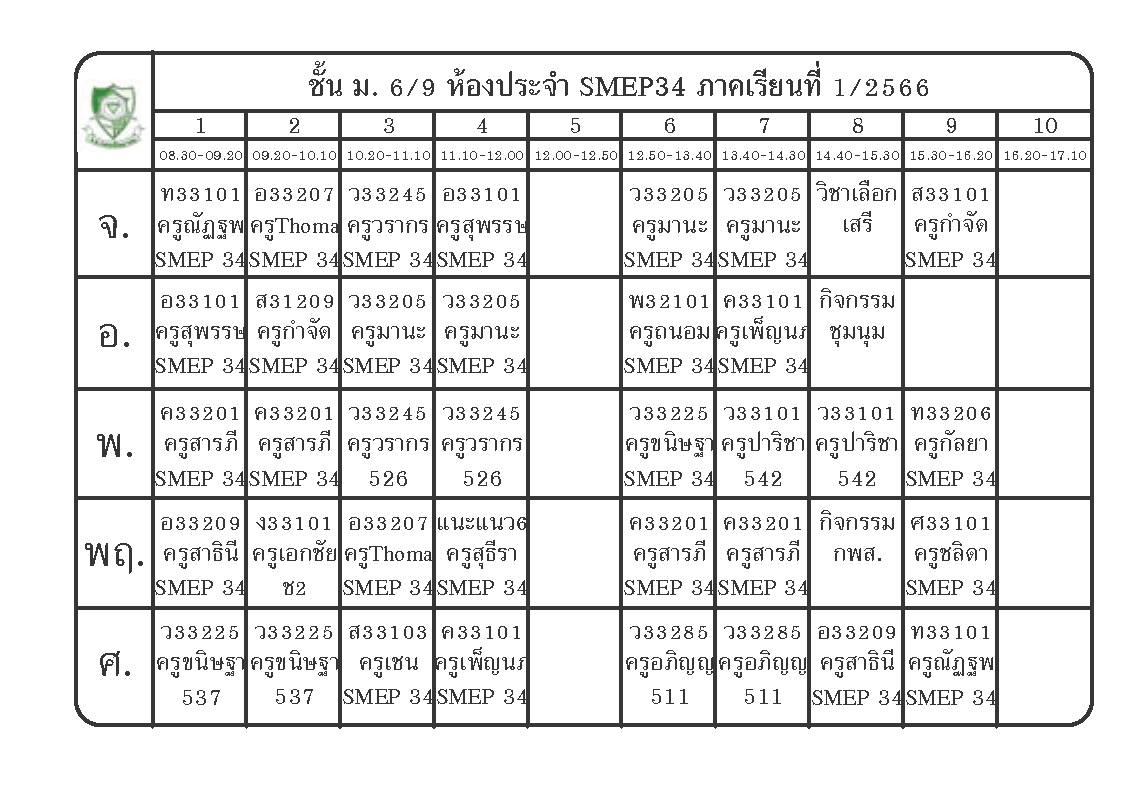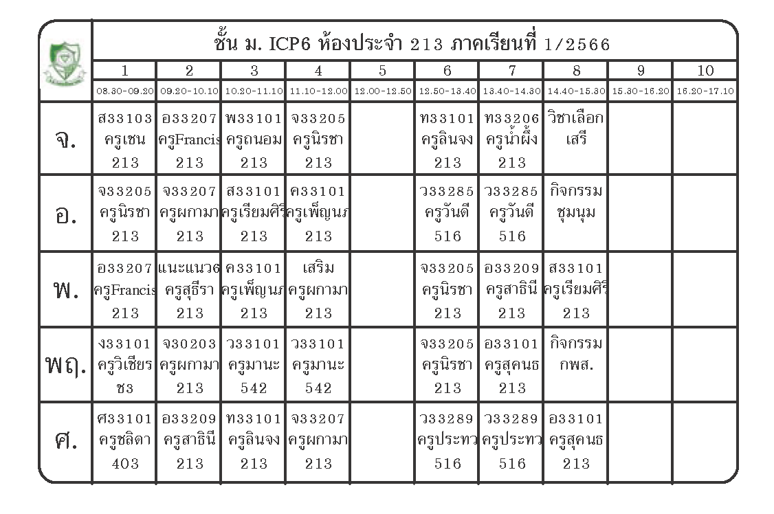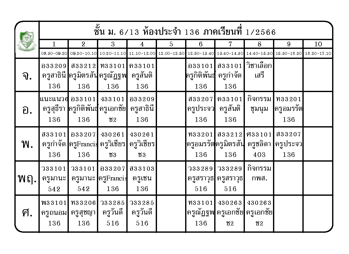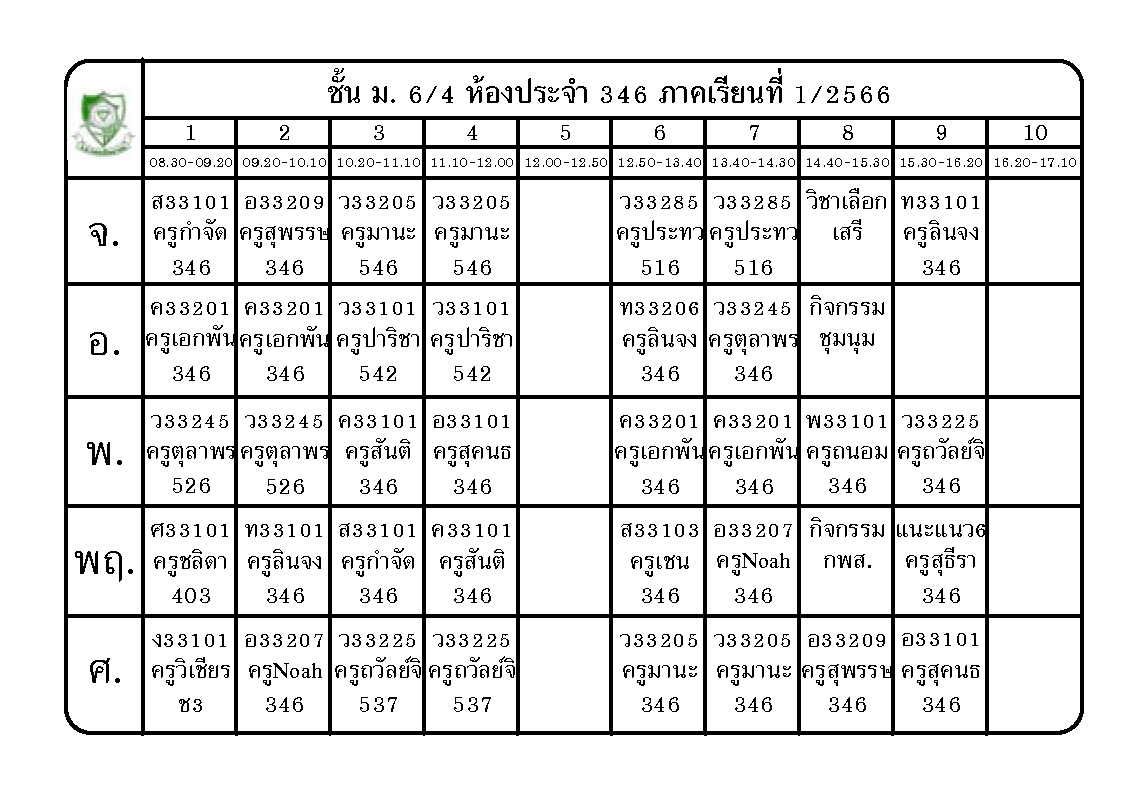 ตารางเรียนนักเรียนชั้น ม.6 ภาคเรียนที่ 1 ปีการศึกษา 2566