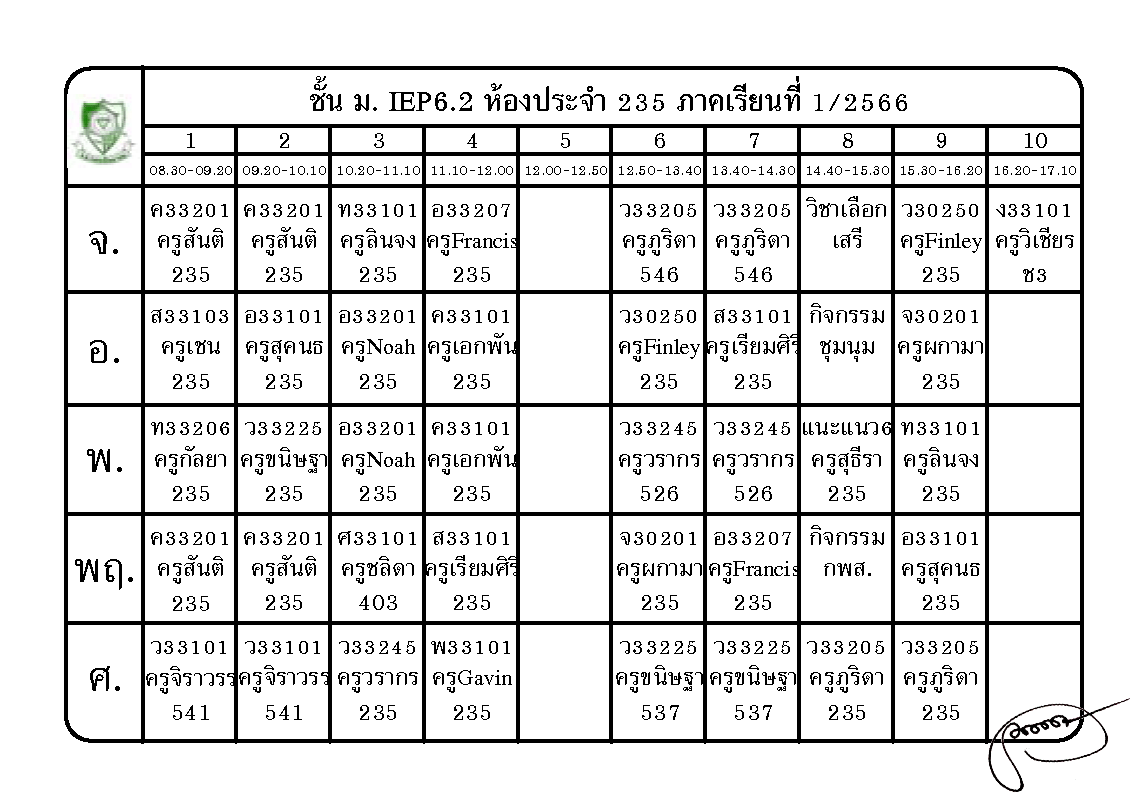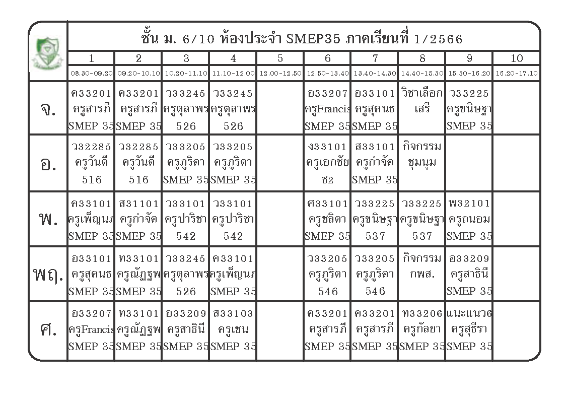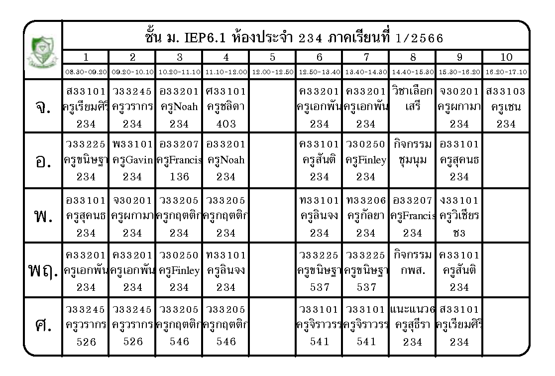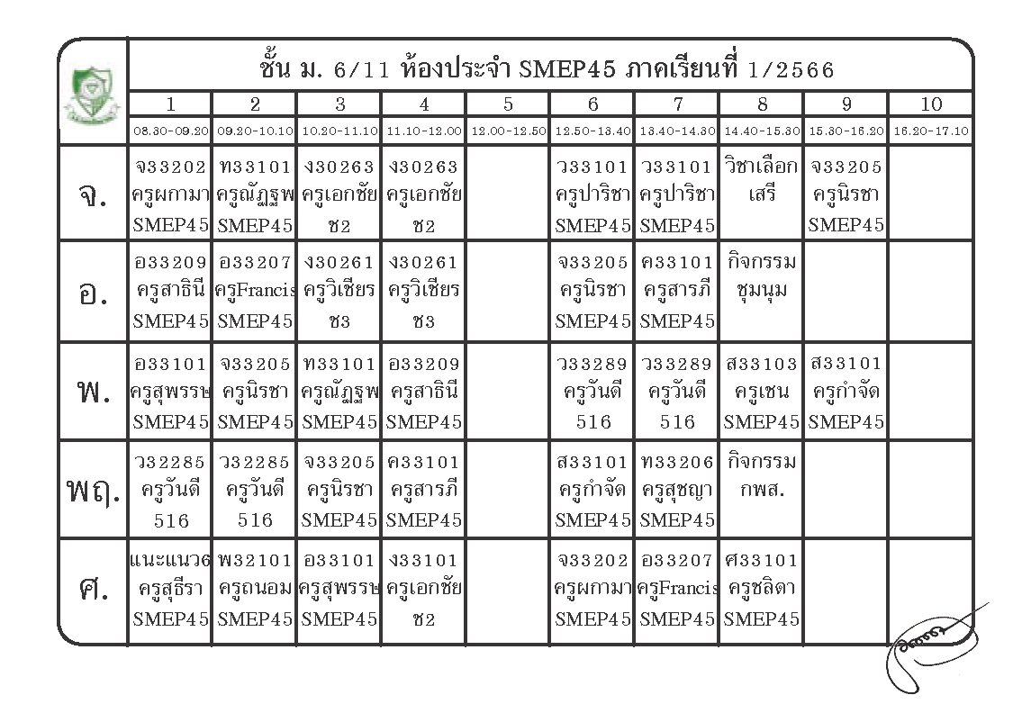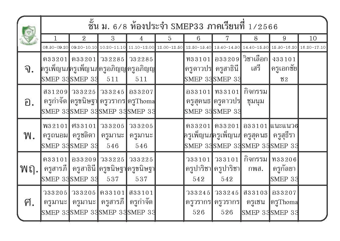 ตารางเรียนนักเรียนชั้น ม.6 ภาคเรียนที่ 1 ปีการศึกษา 2566