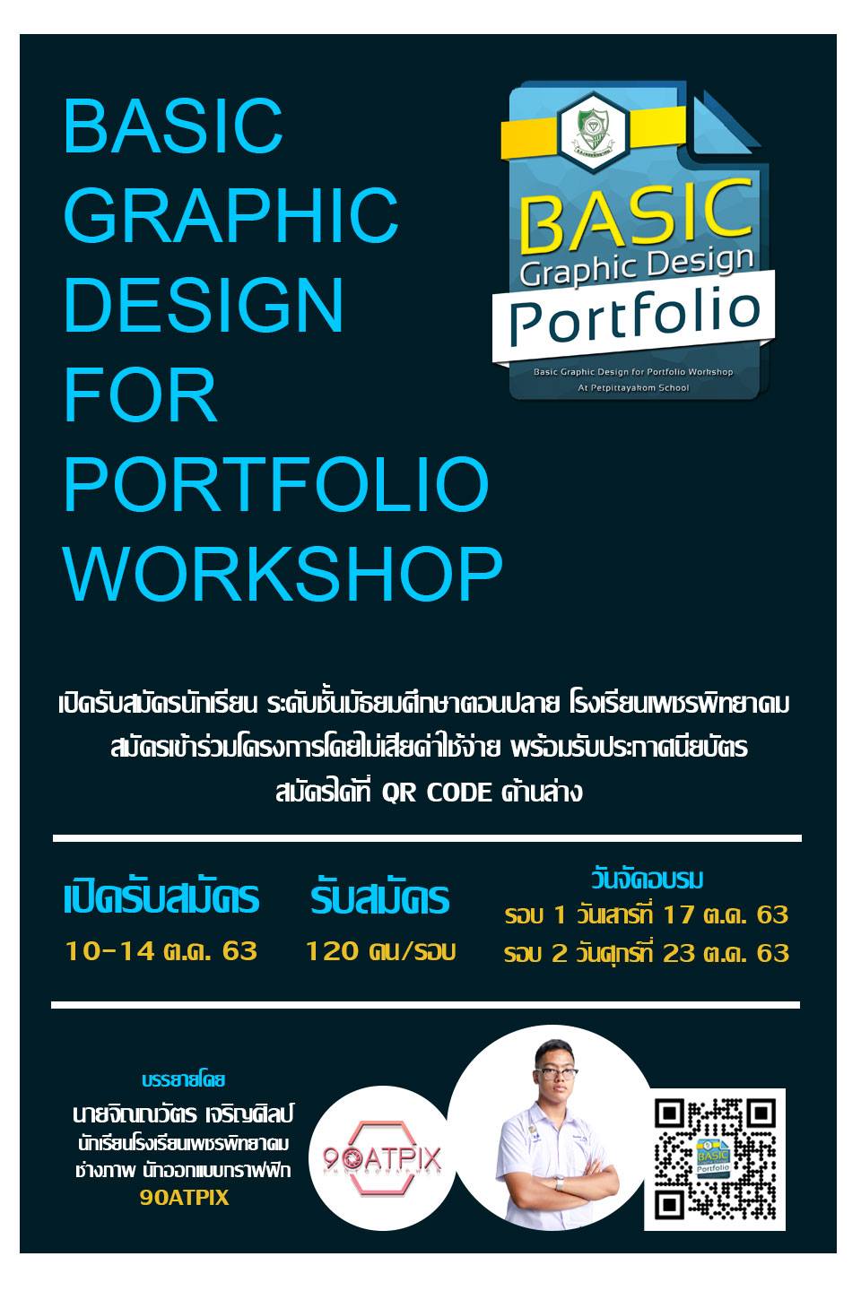 กิจกรรมดีๆ โครงการ Basic Graphic Design for Portfolio Workshop สำหรับนักเรียนที่สนใจเตรียมความพร้อมทำ Portfolio ด้วยตนเอง สมัครด่วน! ตั้งแต่บัดนี้-14 ต.ค.63