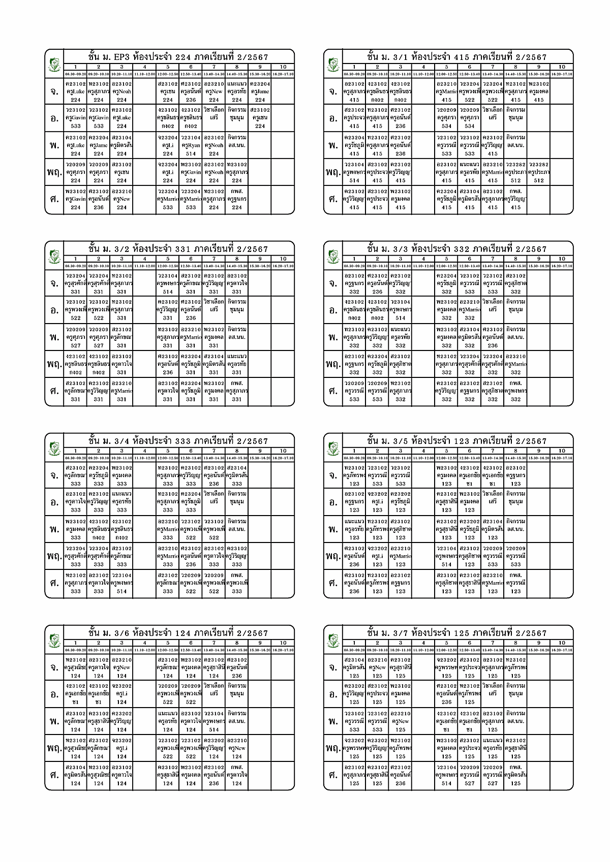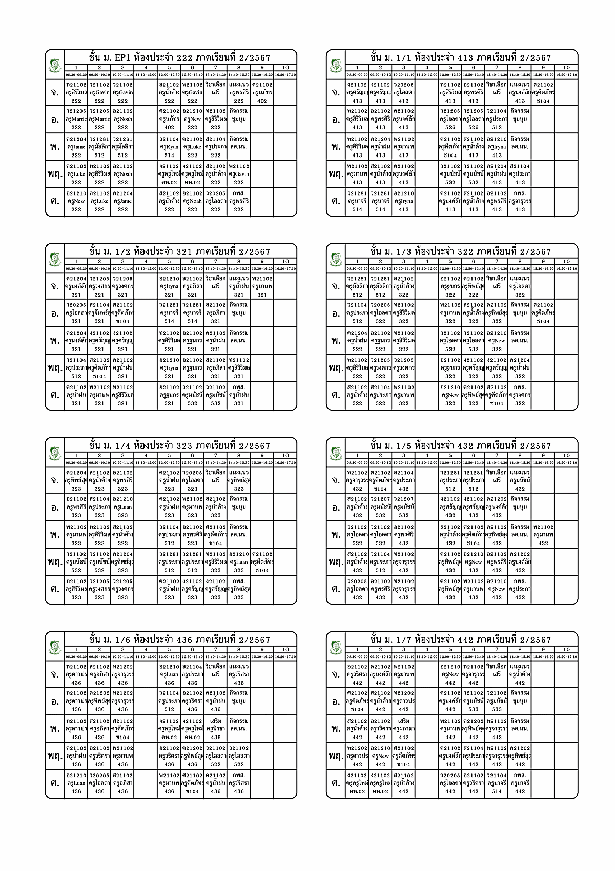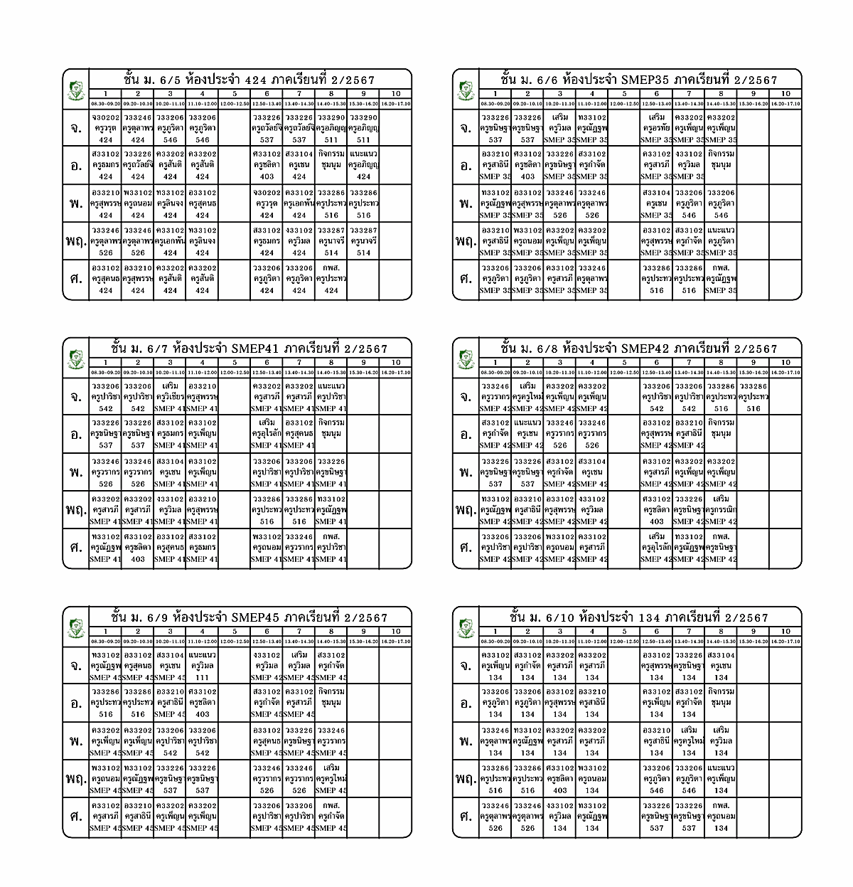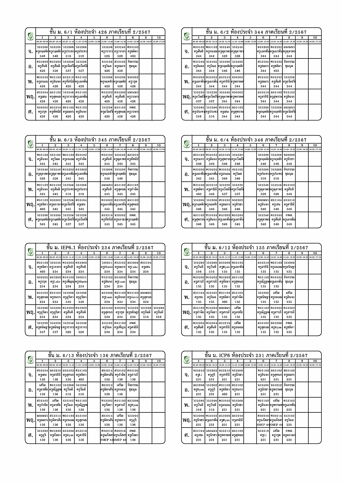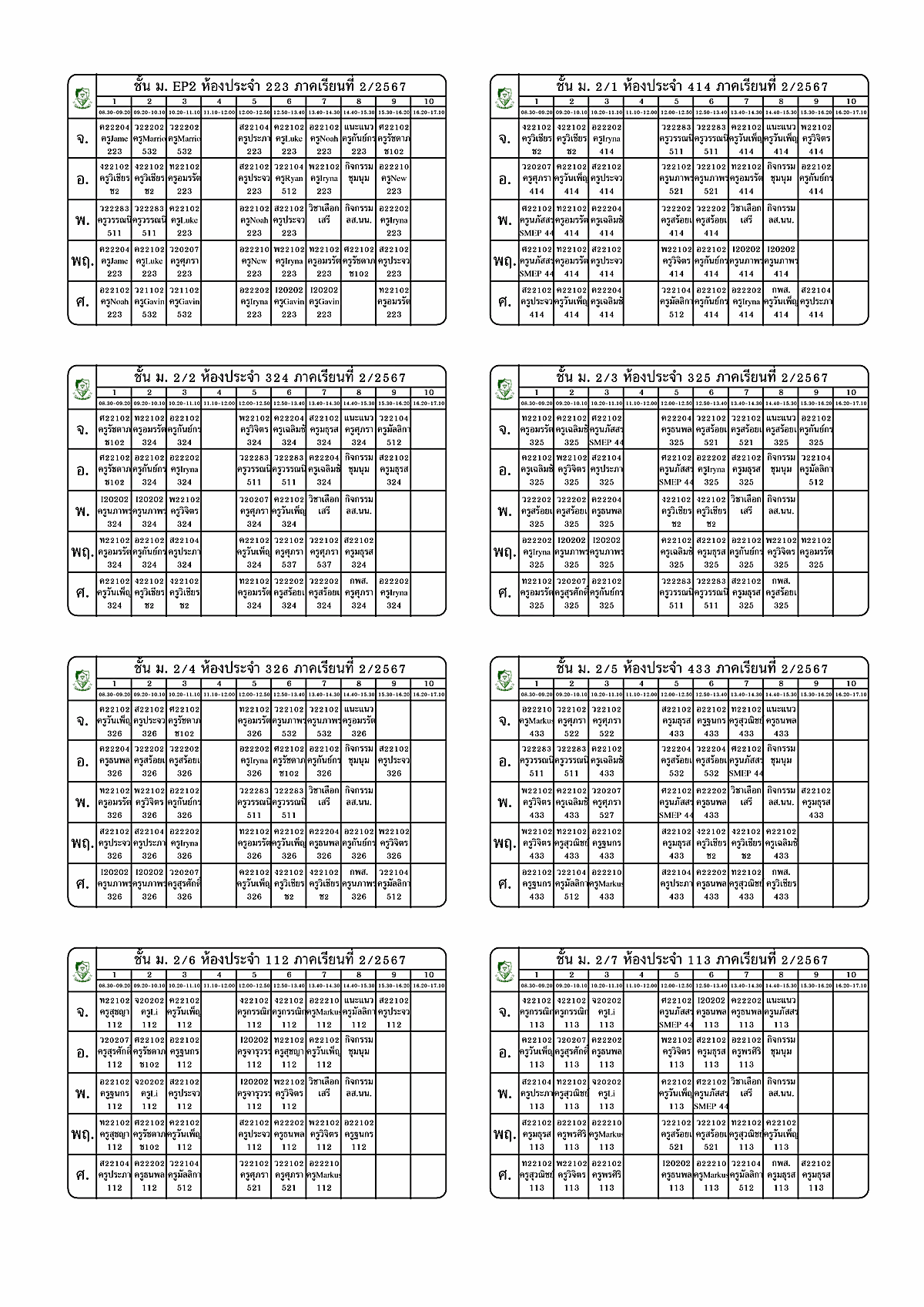 ตารางเรียนนักเรียน ม.1 - ม.6 (ปรับใหม่) เริ่มใช้ 11 พ.ย.2567 เป็นต้นไป