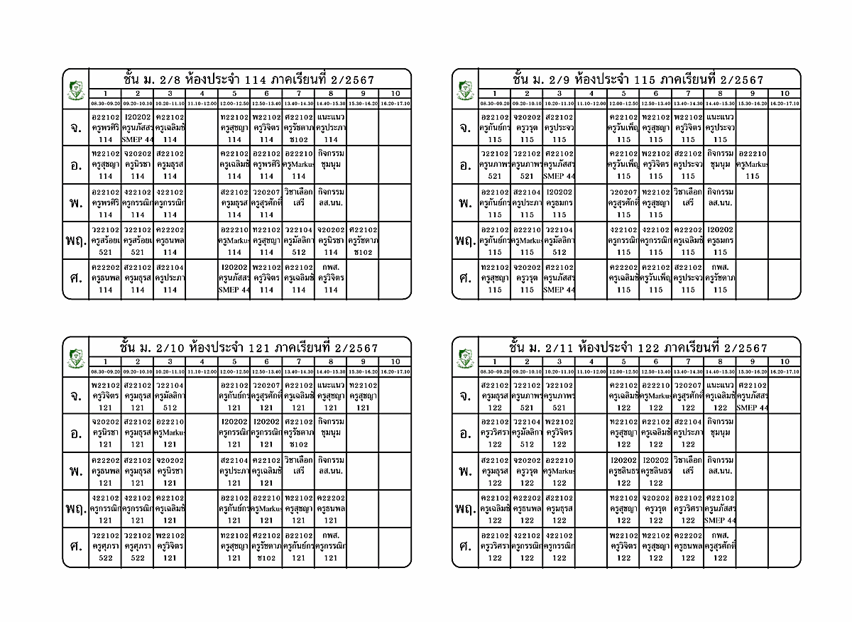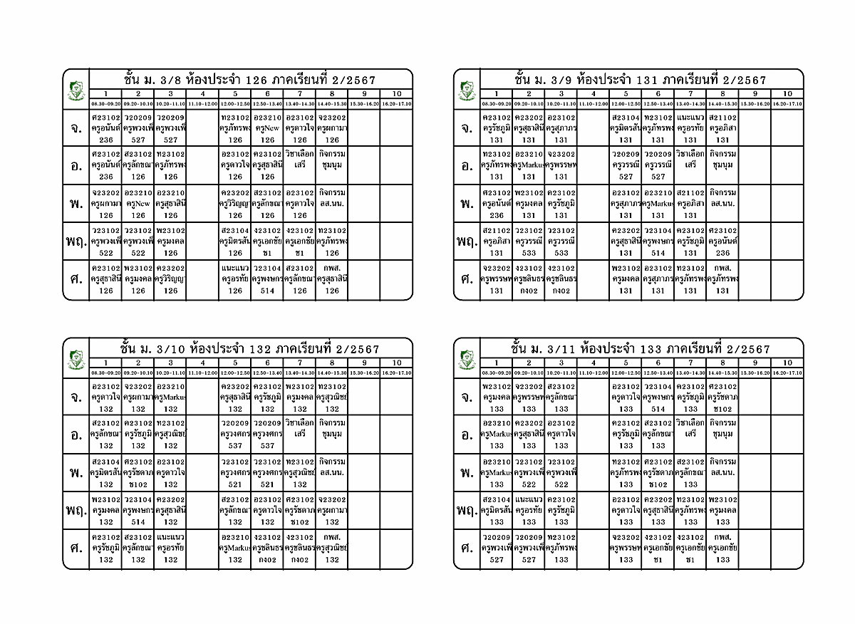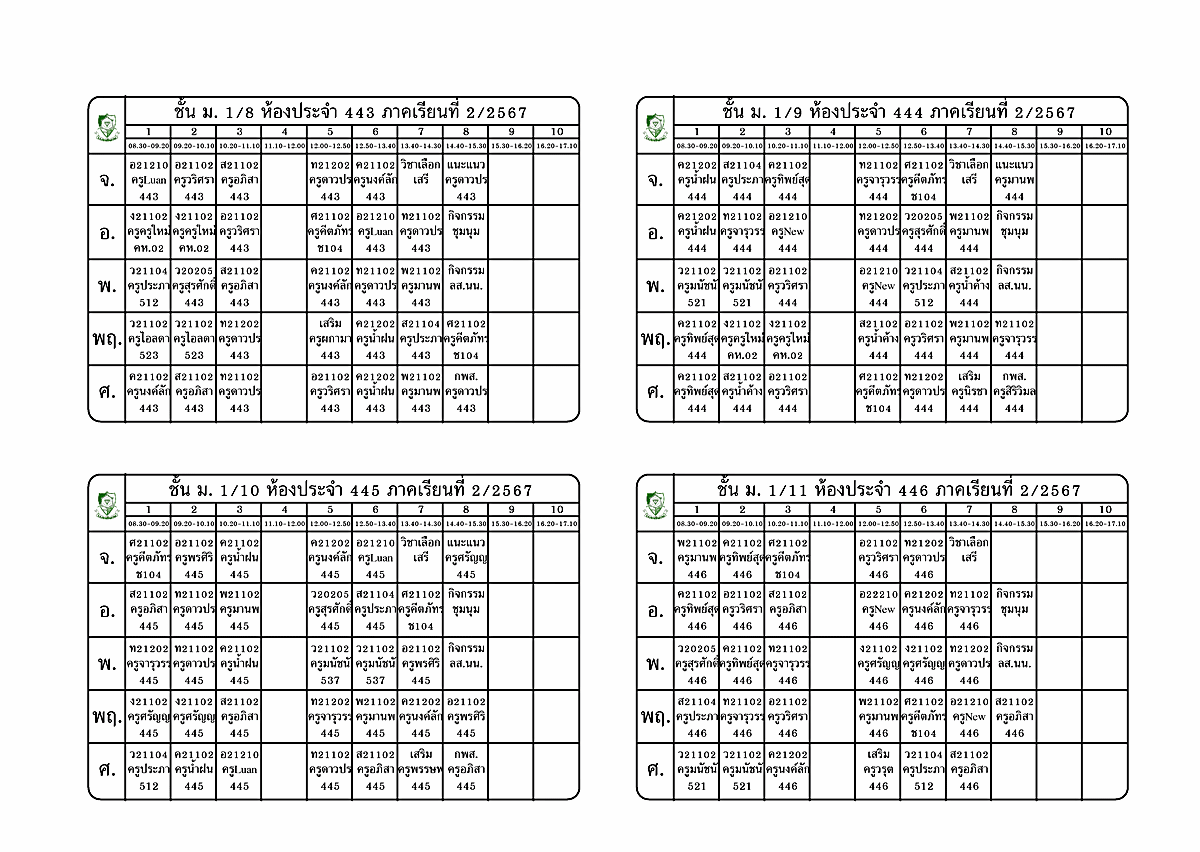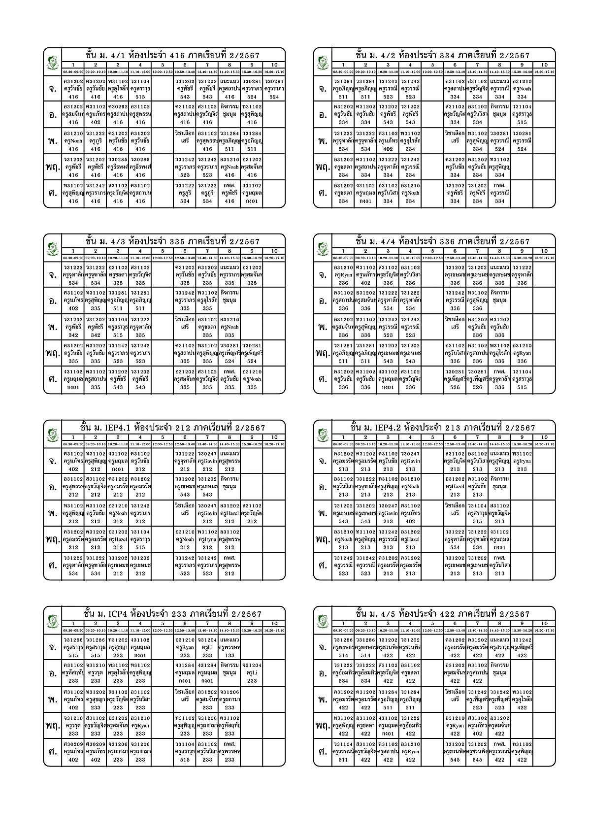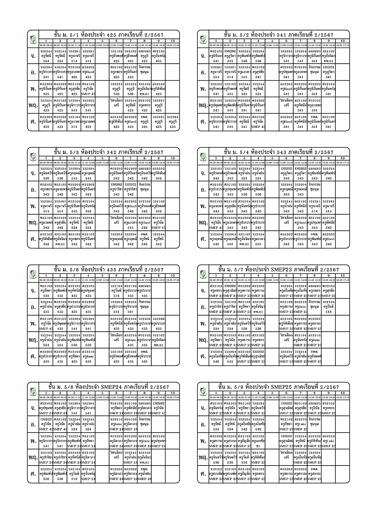 ตารางเรียนนักเรียน ม.1 - ม.6 (ปรับใหม่) เริ่มใช้ 11 พ.ย.2567 เป็นต้นไป