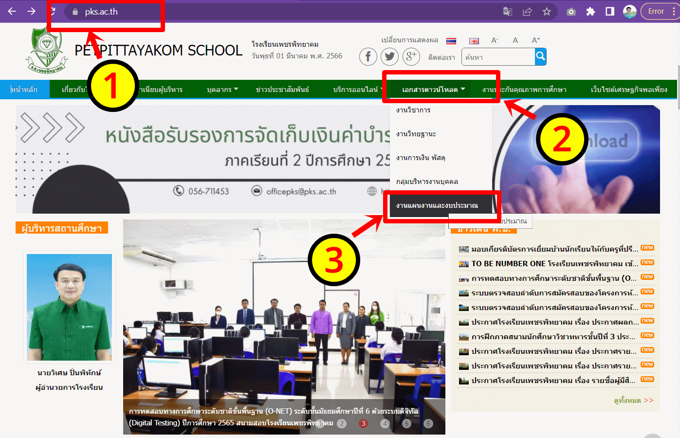 เว็บไซต์ประกอบการดำเนินงานของงานแผนงานและงบประมาณ กลุ่มบริหารงบประมาณ โรงเรียนเพชรพิทยาคม