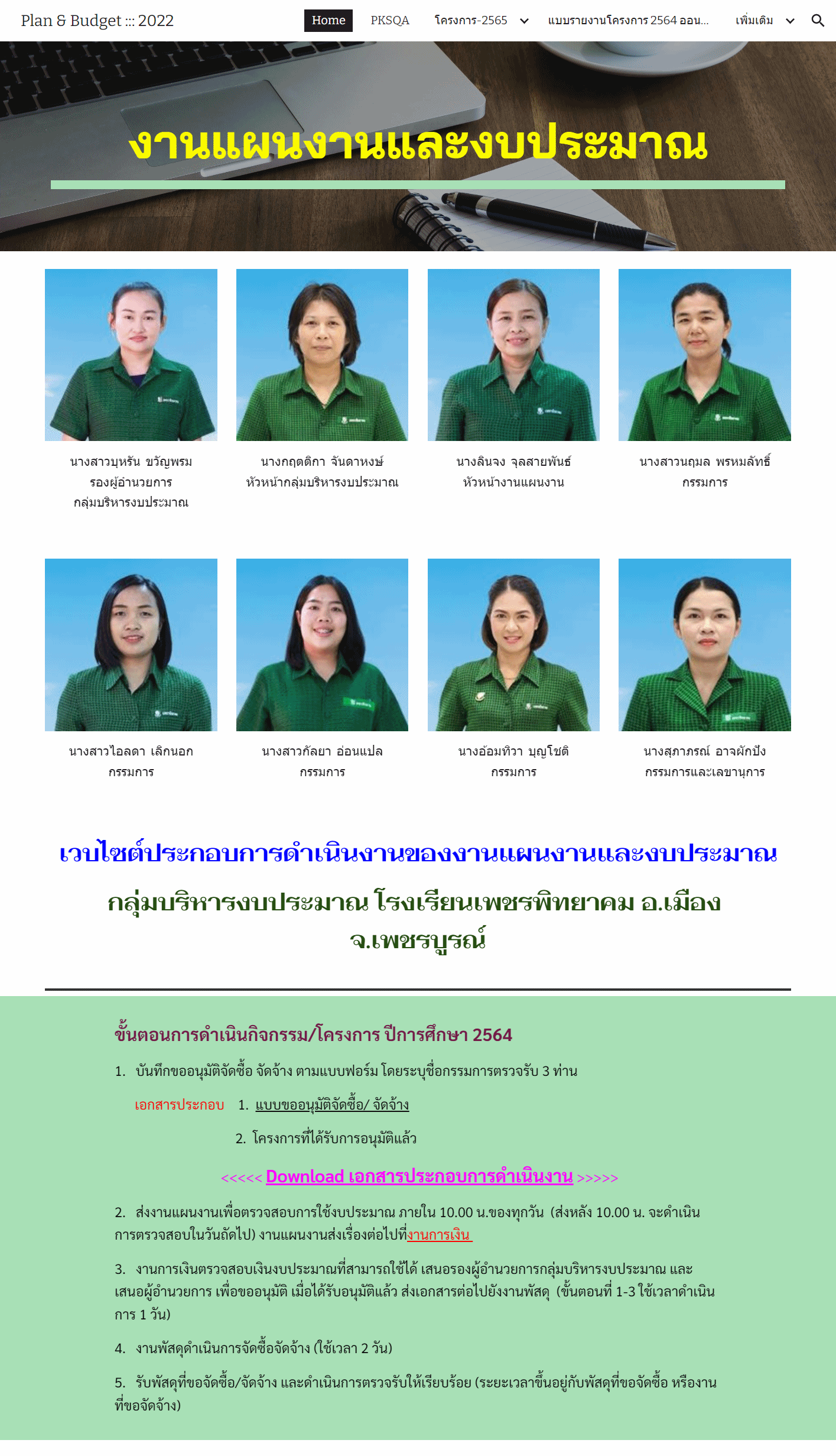หรือพิมพ์ URL แบบตรง ๆ ได้ที่ https://sites.google.com/pks.ac.th/plan-budget-2021/home