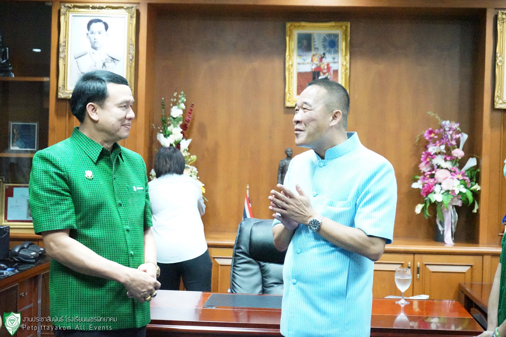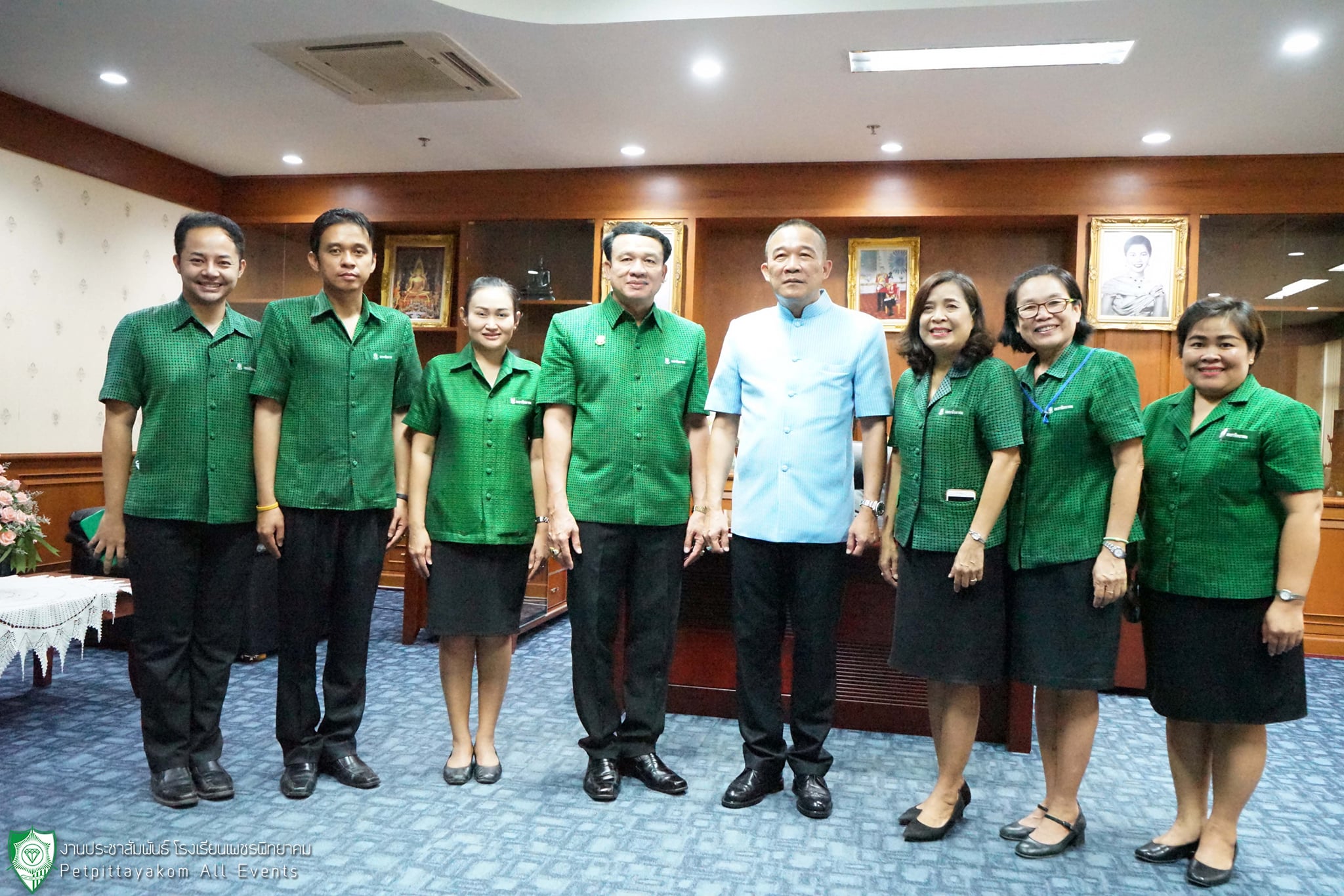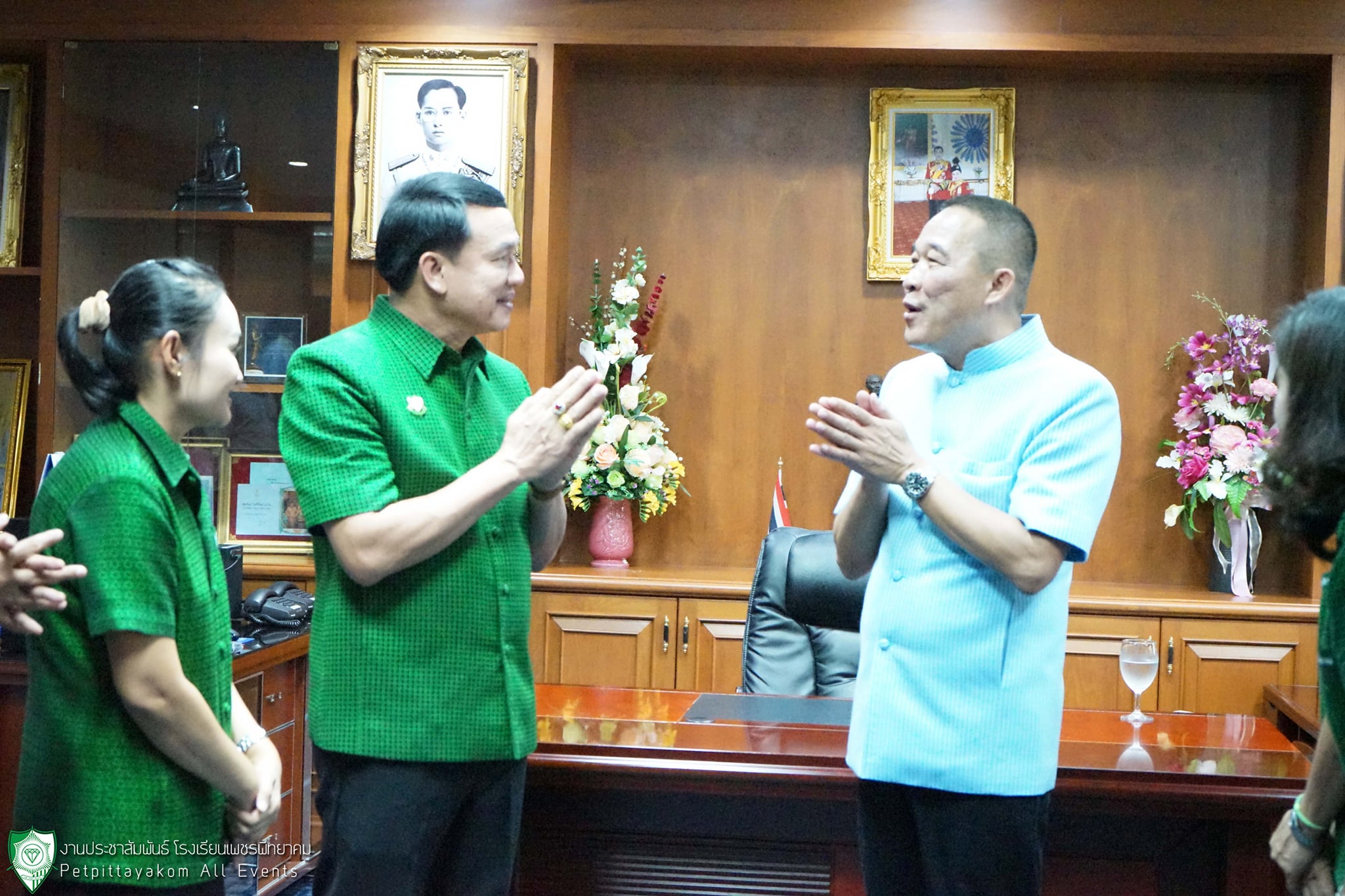 ท่านผู้อำนวยการวิเศษ ปิ่นพิทักษ์ พร้อมด้วยท่านรองผู้อำนวยการและคณะเป็นตัวแทนข้าราชการครูและบุคลากรโรงเรียนเพชรพิทยาคมร่วมแสดงความยินดีและยินต้อนรับท่านกฤษณ์ คงเมือง ในโอกาสเข้าดำรงตำแหน่งผู้ว่าราชการจังหวัดเพชรบูรณ์