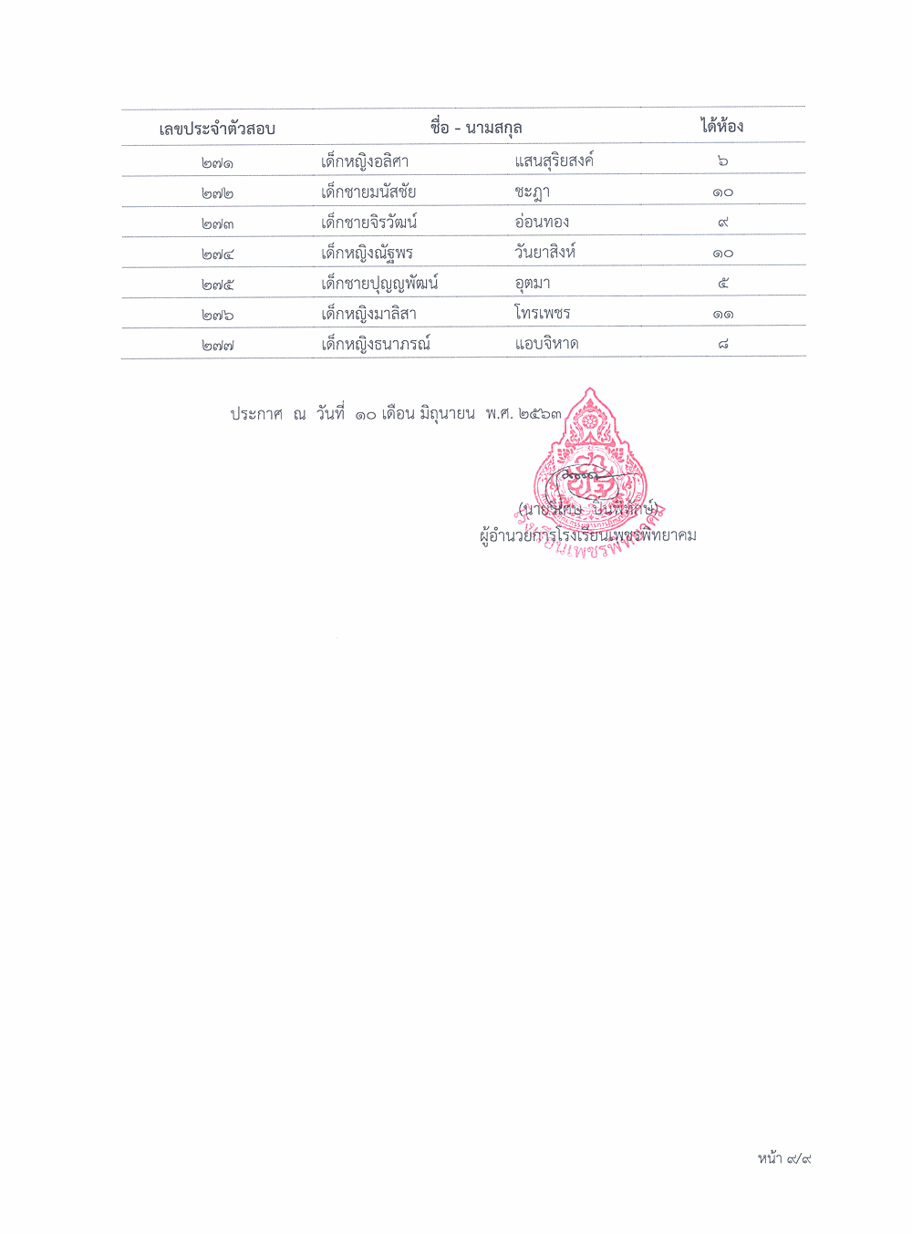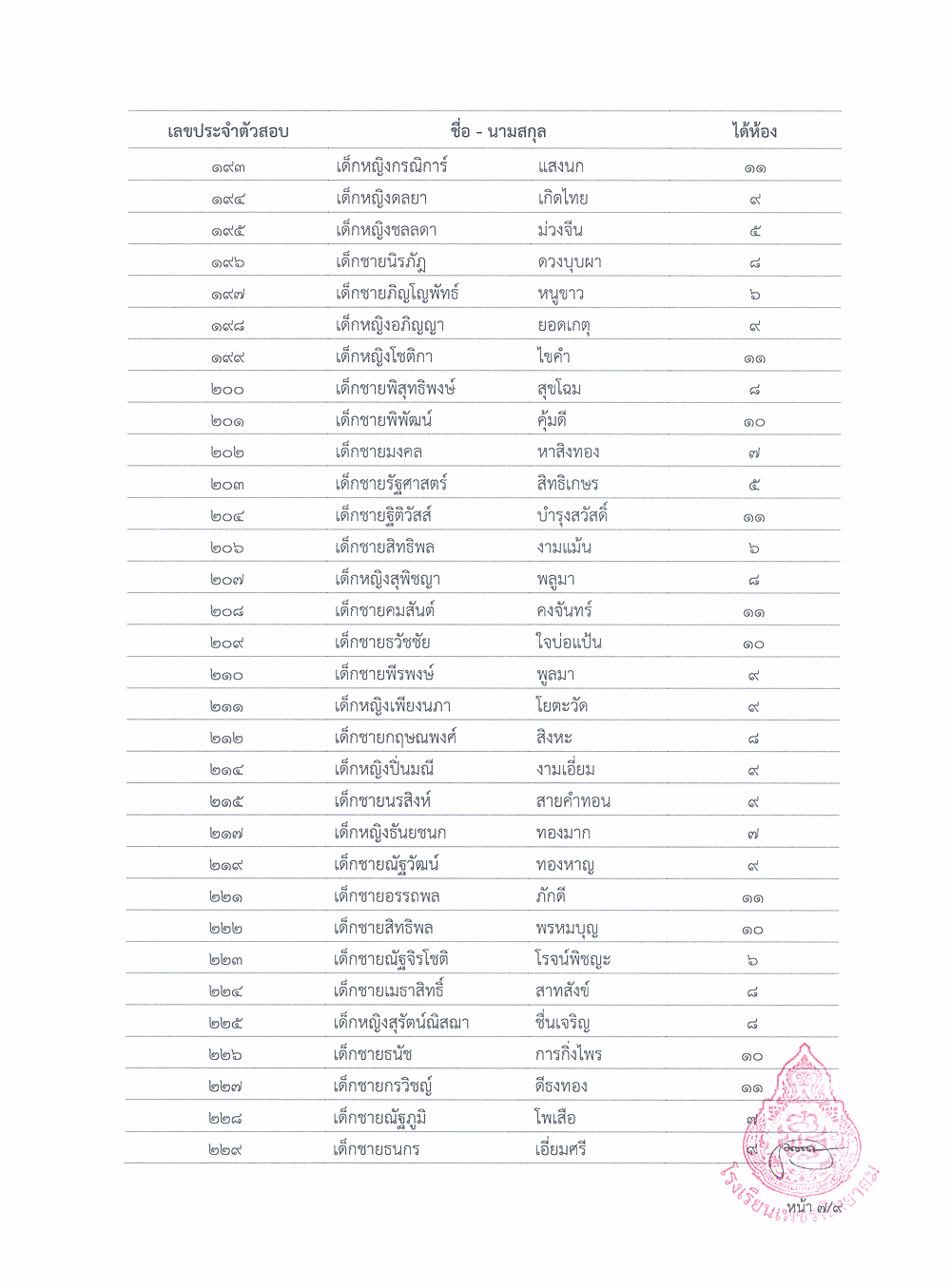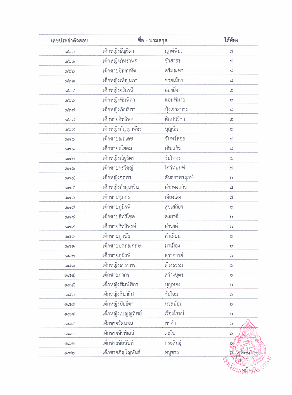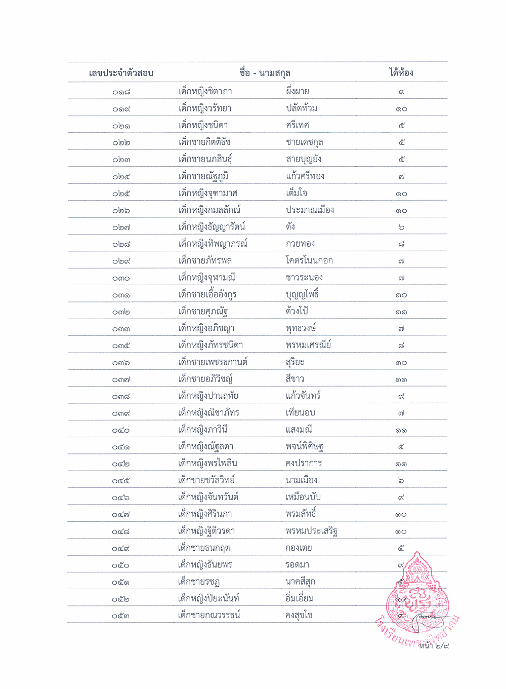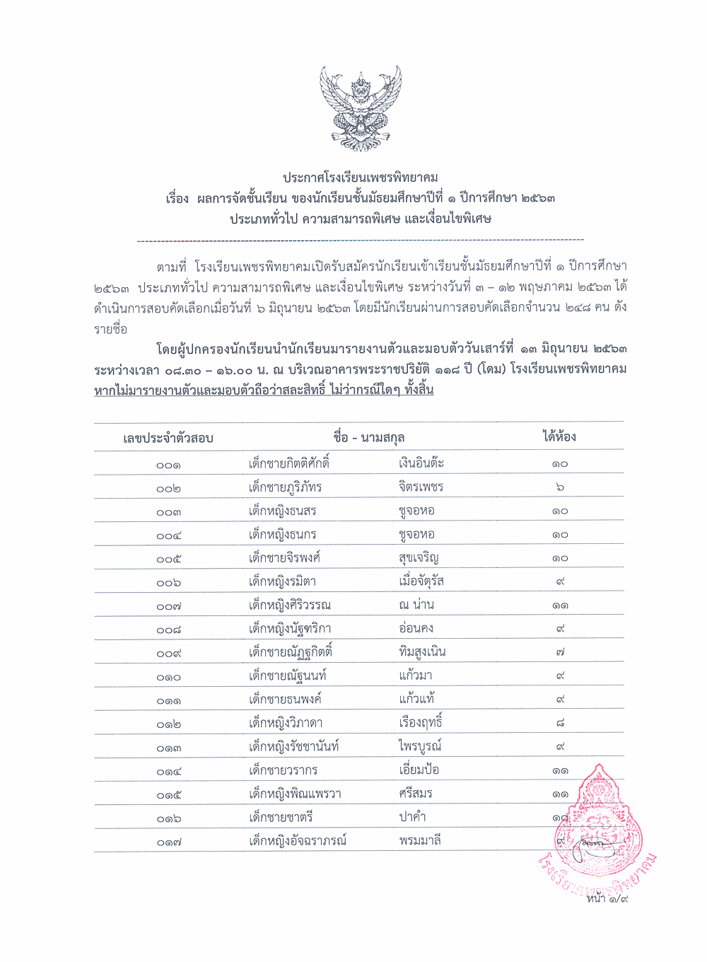 ประกาศผลการจัดชั้นเรียนนักรียนชั้นมัธยมศึกษาปีที่ 1 ปีการศึกษา 2563
