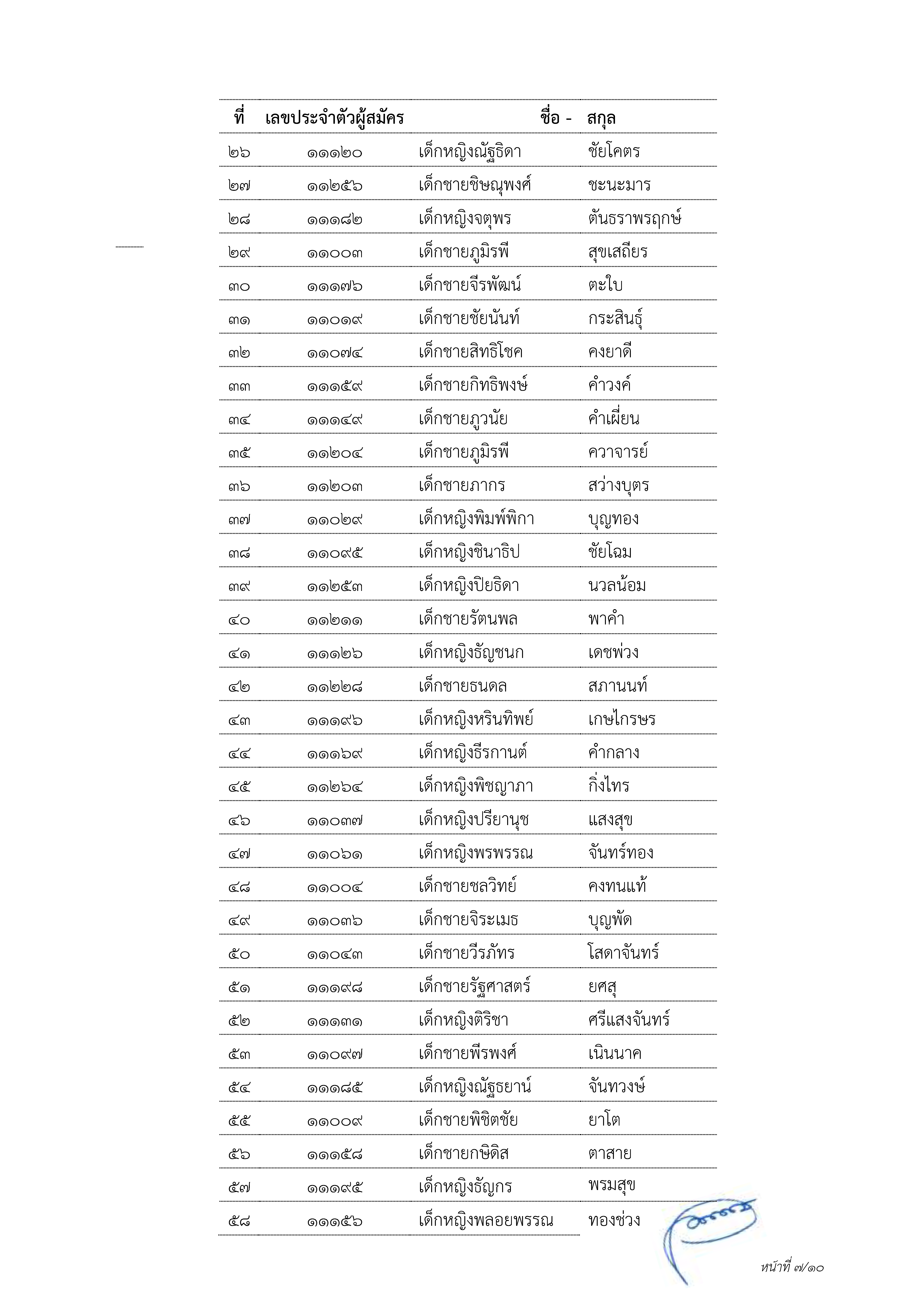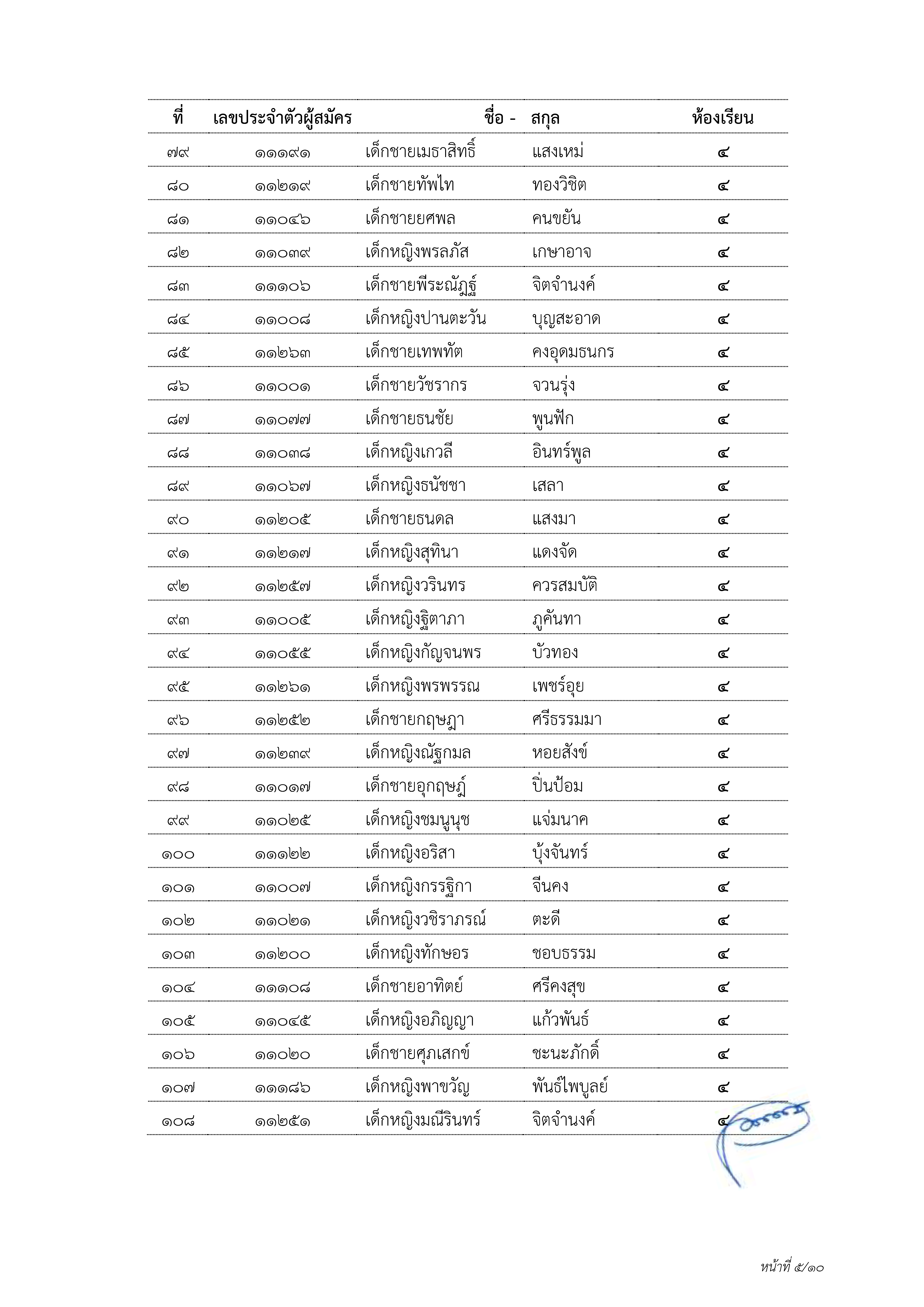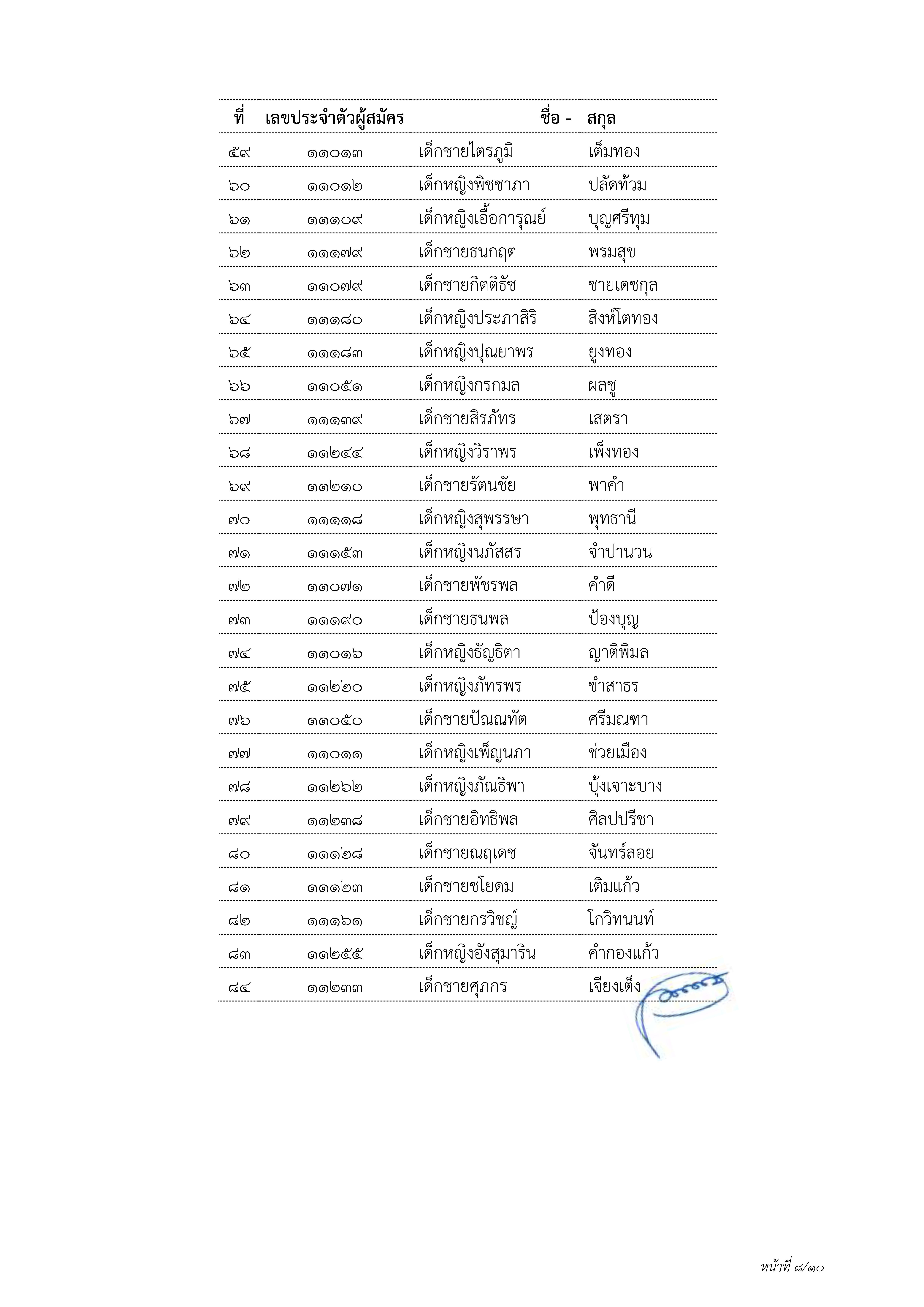 เรื่อง ผลการสอบคัดเลือกนักเรียนเข้าเรียนชั้นมัธยมศึกษาปีที่ ๑ ปีการศึกษา ๒๕๖๓