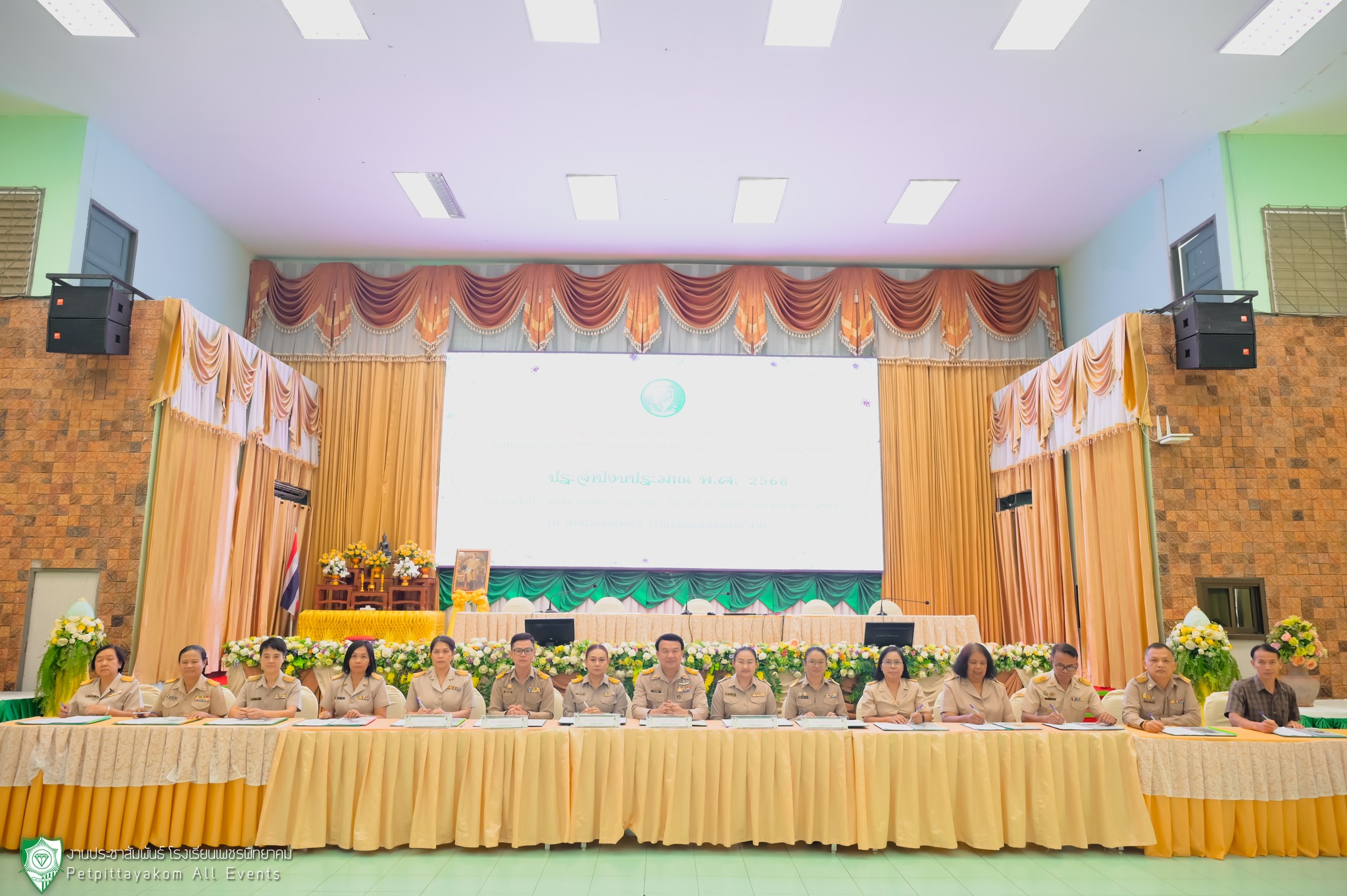 การประชุมจัดขึ้น ณ หอประชุมเพชรพิทยาคม โดยมีคณะผู้บริหารและคณะครูเข้าร่วม เพื่อร่วมกำหนดแนวทางพัฒนางานด้านการศึกษา เสริมสร้างคุณภาพการเรียนการสอน และส่งเสริมประสิทธิภาพการบริหารจัดการภายในโรงเรียนให้เป็นไปตามมาตรฐานทางการศึกษา