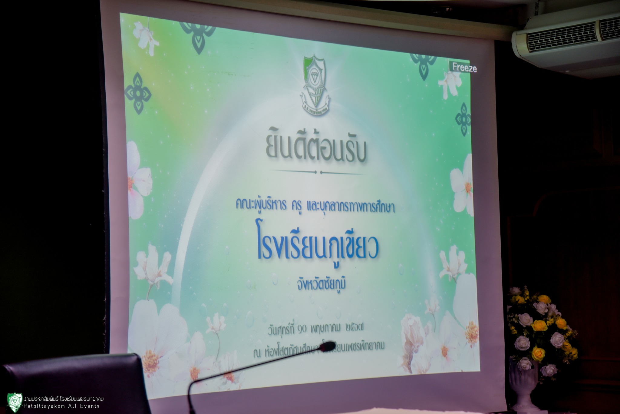 โรงเรียนเพชรพิทยาคม นำโดยนางสาวบุหรัน ขวัญพรม รองผู้อำนวยการโรงเรียนเพชรพิทยาคม พร้อมด้วยฝ่ายบริหาร และคณะครูร่วมต้อนรับคณะศึกษาดูงาน แลกเปลี่ยนเรียนรู้ด้านการบริหารงานวิชาการ งานทะเบียนและวัดผล กับคณะศึกษาดูงานโรงเรียนภูเขียวนำโดย ผู้บริหารโรงเรียนภูเขียว จังหวัดชัยภูมิ พร้อมด้วยคณะครูเข้าร่วมกิจกรรม เมื่อวันที่ 10 พฤษภาคม 2567 ณ ห้องโสตทัศนศึกษา โรงเรียนเพชรพิทยาคม