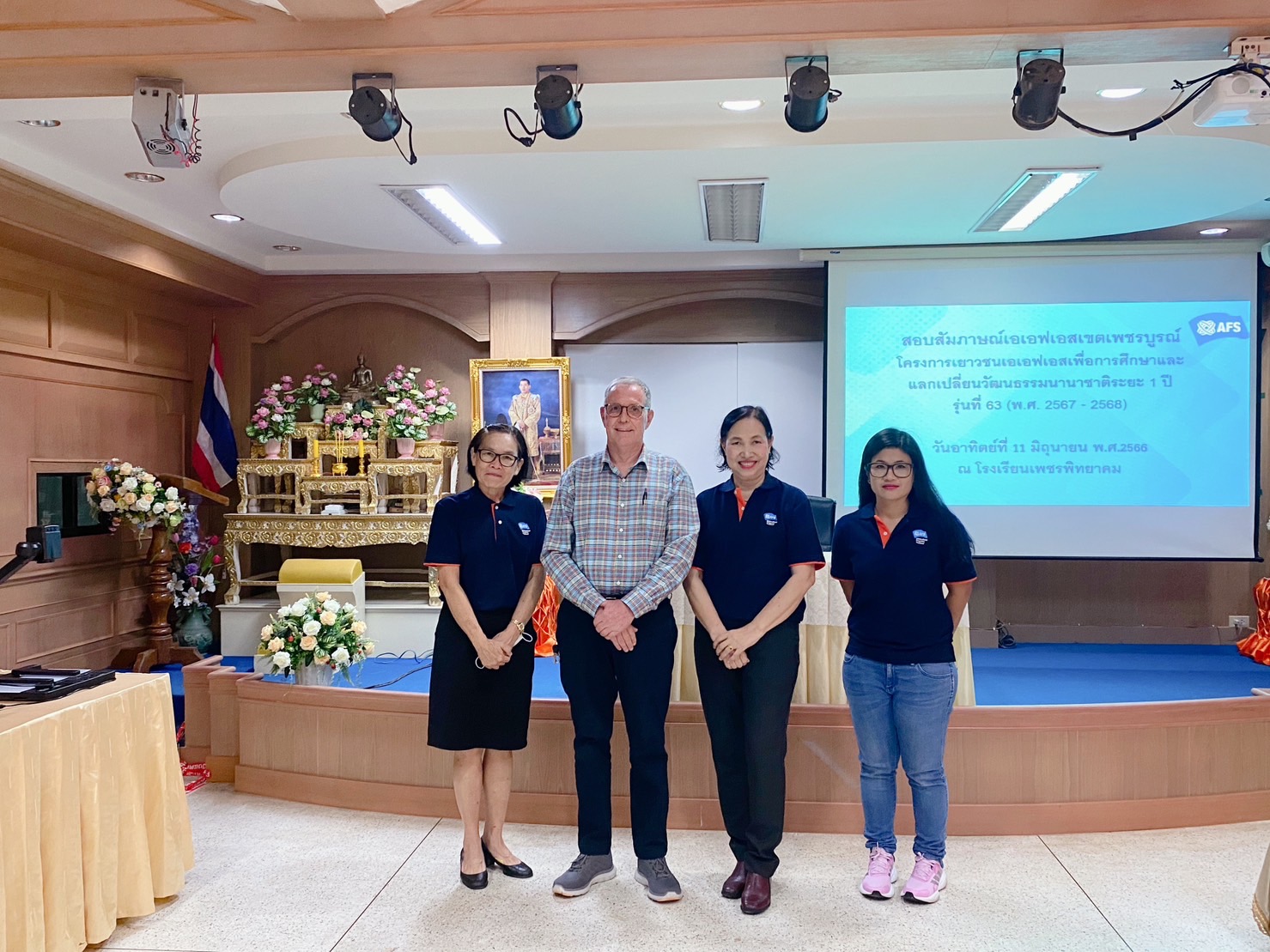 นายวิเศษ ปิ่นพิทักษ์ ผู้อำนวยการโรงเรียนเพชรพิทยาคม ประธานเอเอฟเอส เขตเพชรบูรณ์ ได้มอบหมายให้ นางชัชฎา อุดมสิทธิ์ รองผู้อำนวยการกลุ่มบริหารวิชาการ รองประธานเอเอฟเอส เขตเพชรบูรณ์ พร้อมด้วยนางสาวจินตนา ชัยมี ผู้ประสานงานเอเอฟเอส เขตเพชรบูรณ์ และคณะครูกลุ่มสาระการเรียนรู้ภาษาต่างประเทศ โรงเรียนเพชรพิทยาคม ดำเนินการจัดสอบสัมภาษณ์ โครงการเยาวชนเอเอฟเอสเพื่อการศึกษาและแลกเปลี่ยนวัฒนธรรมนานาชาติ ระยะ 1 ปี รุ่นที่ 63 (พ.ศ.2567-2568) ในวันอาทิตย์ ที่11 มิถุนายน 2566 ณ ห้องโสตทัศนศึกษา โรงเรียนเพชรพิทยาคม ซึ่งผลการดำเนินงานสำเร็จลุล่วงไปด้วยความเรียบร้อย และเอเอฟเอสประเทศไทย จะประกาศผลการสอบสัมภาษณ์ ในวันที่ 29 มิถุนายน 2566 ทาง www.afsthailad.org