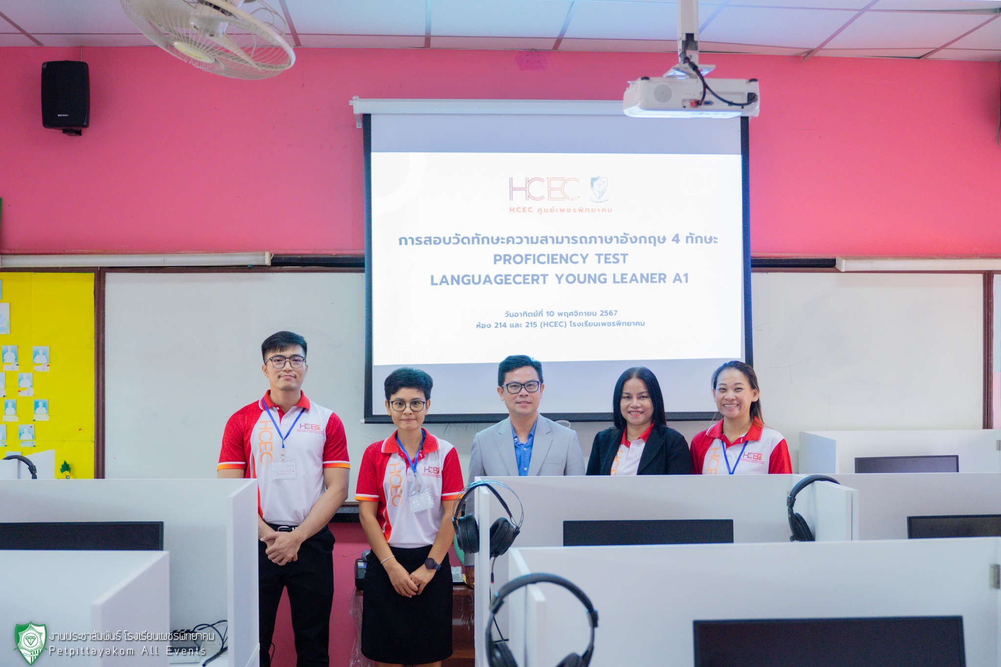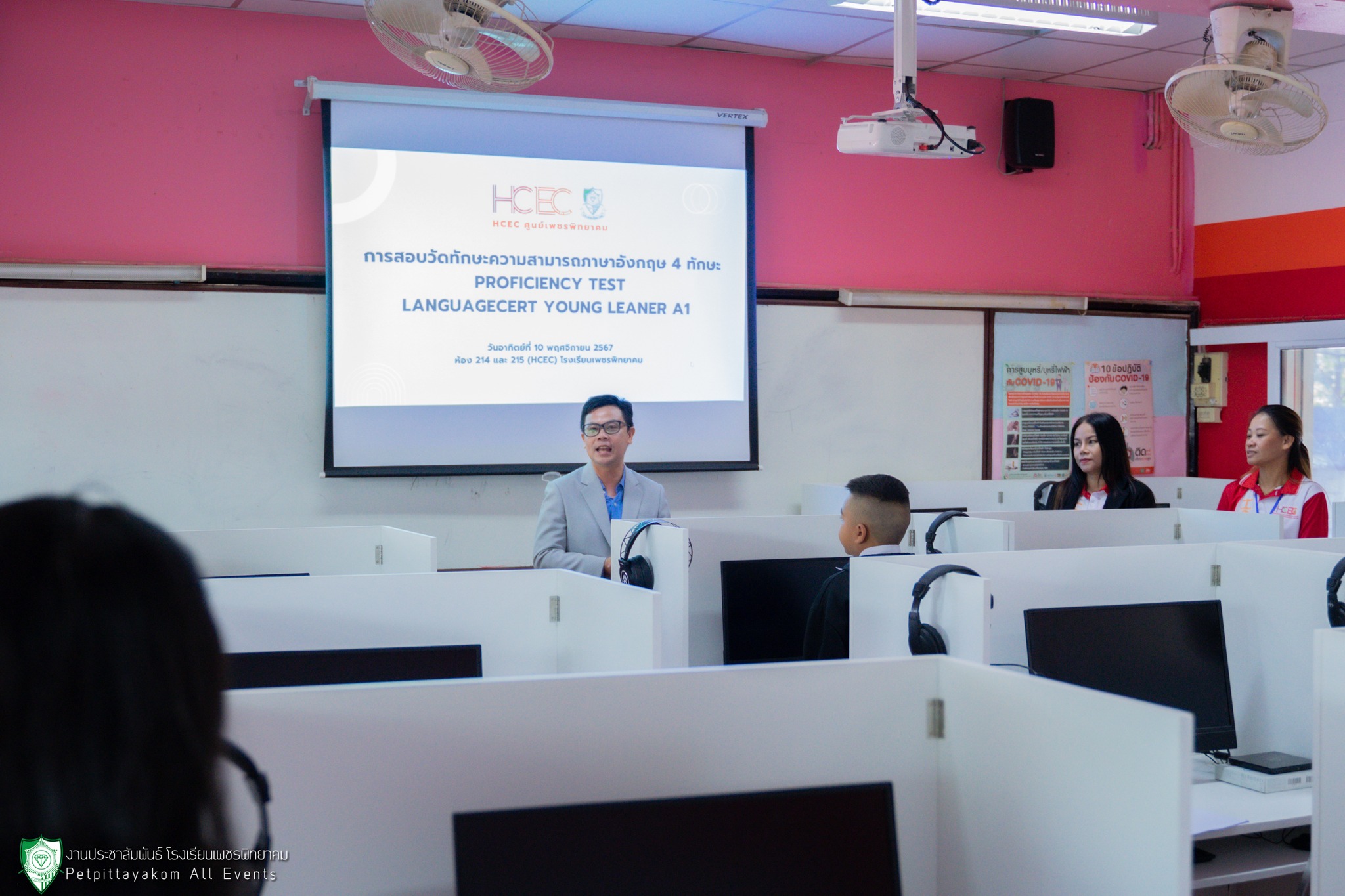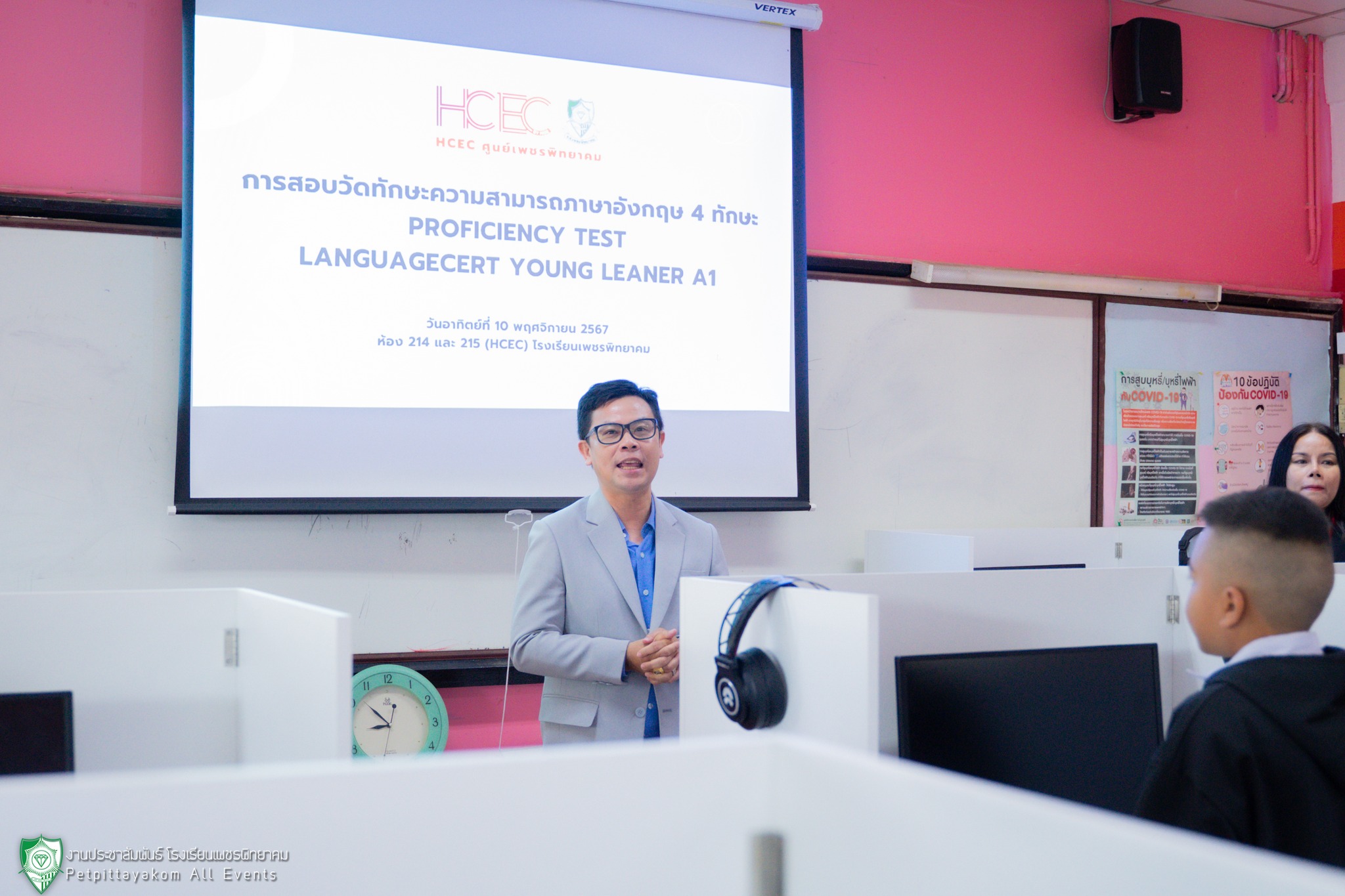 ศูนย์พัฒนาศักยภาพบุคคลเพื่อความเป็นเลิศ (HCEC) โรงเรียนเพชรพิทยาคม ได้รับเกียรติจาก นายวิษรุตต์ เมืองทา รองผู้อำนวยการโรงเรียนเพชรพิทยาคม มาเป็นประธานการจัดกิจกรรมการสอบวัดทักษะความสามารถทางภาษาอังกฤษ (4 ทักษะ) Proficiency Test: LanguageCert Young Learner A1 เพื่อส่งเสริมความสามารถทางภาษาอังกฤษของนักเรียนตามกรอบมาตรฐาน CEFR สำหรับนักเรียนประถมศึกษาจากโรงเรียนคุณภาพในจังหวัดเพชรบูรณ์ จำนวน 27 คน ในวันวันอาทิตย์ที่ 10 เดือนพฤศจิกายน พ.ศ. 2567 ณ ห้องศูนย์ HCEC โรงเรียนเพชรพิทยาคม อำเภอเมือง จังหวัดเพชรบูรณ์