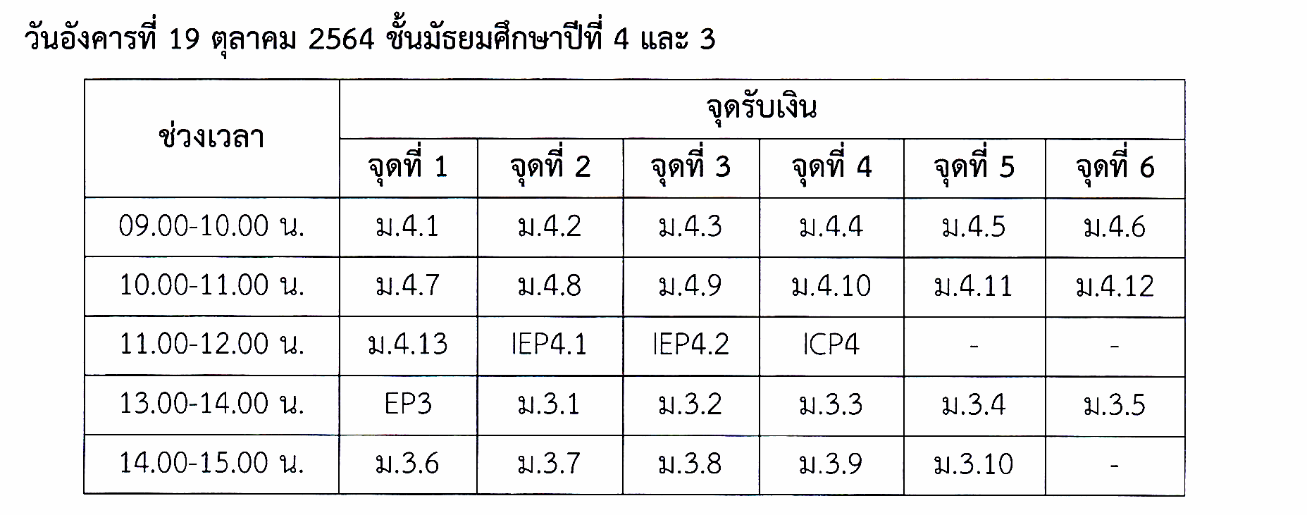 เพื่อให้เป็นไปตามมาตรการป้องกันการแพร่ระบาดของโรคติดเชื้อไวรัสโคโรนา 2019 (COVID-19) ทางโรงเรียนจึงมีกำหนดการคืนเงินบำรุงการศึกษาแก่นักเรียนและผู้ปกครอง ในวันที่ 18-20 ตุลาคม 2564 ณ อาคารโดมพระราชปริยัติบัณฑิต รายละเอียดดังเอกสารแนบท้ายประกาศนี้