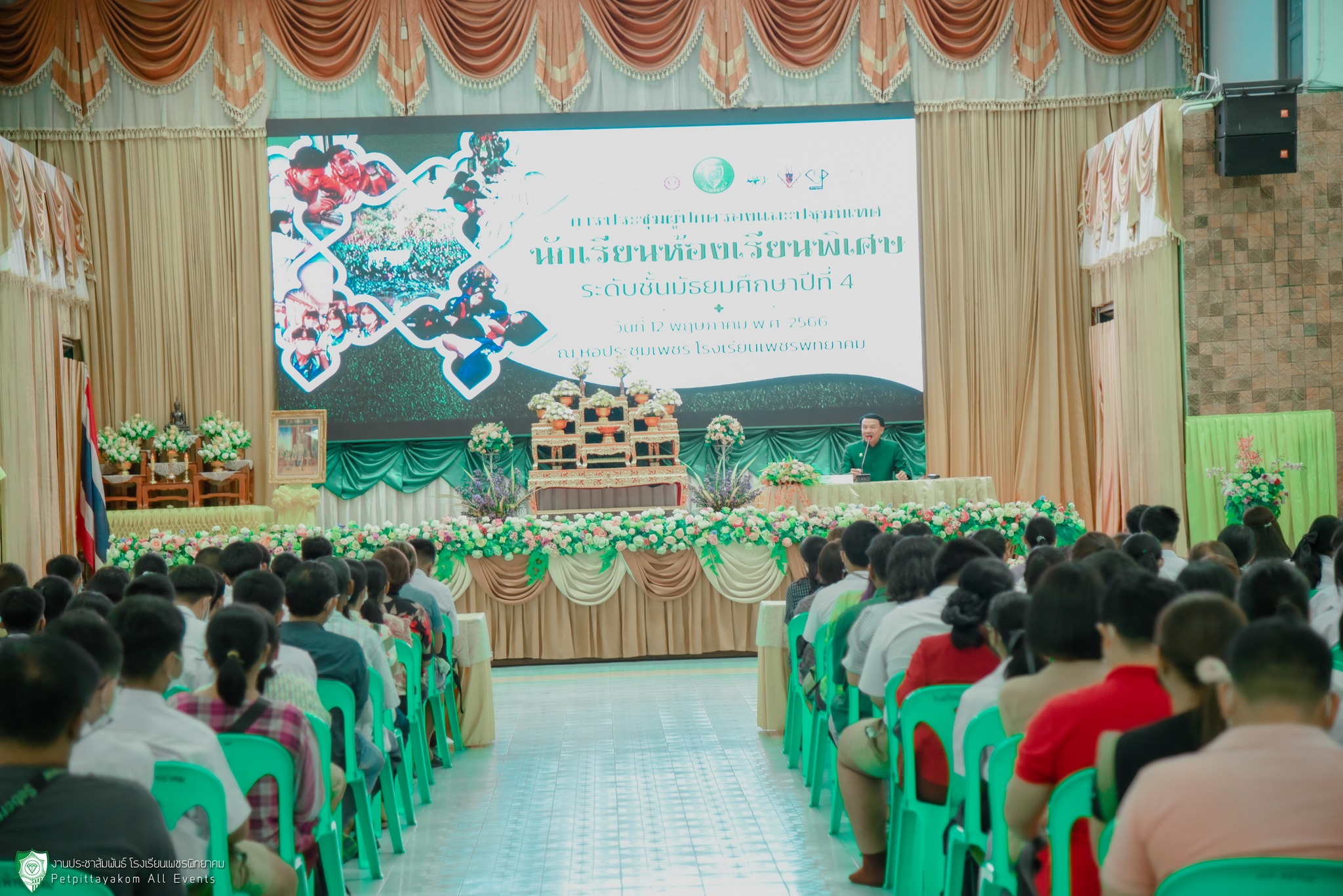 12 พฤษภาคม 2566 โรงเรียนเพชรพิทยาคมจัดกิจกรรมปฐมนิเทศนักเรียน ระดับชั้นมัธยมศึกษาปีที่ 4 ประเภทห้องเรียนพิเศษวิทยาศาสตร์คณิตศาสตร์ เทคโนโลยีและสิ่งแวดล้อม (สสวท.) ห้องเรียนพิเศษวิทยาศาสตร์ คณิตศาสตร์ ห้องเรียนพิเศษ IEP ห้องเรียนพิเศษ ICP ห้องเรียนโครงการวิทยาศาสตร์พลังสิบ และห้องเรียนคุณภาพ ประจำปีการศึกษา 2566โดยมีนายวิเศษ ปิ่นพิทักษ์ ผู้อำนวยการโรงเรียนเป็นประธานในพิธี พร้อมด้วยรองผู้อำนวยการ ฝ่ายบริหาร คณะครู และนักเรียนเข้าร่วมพิธี