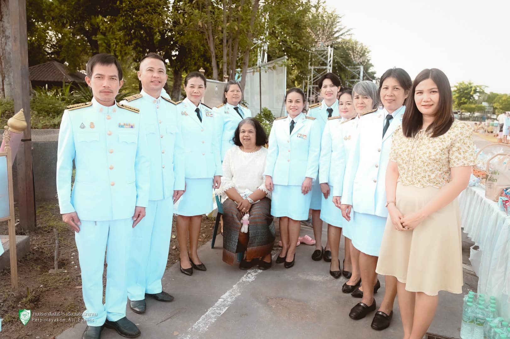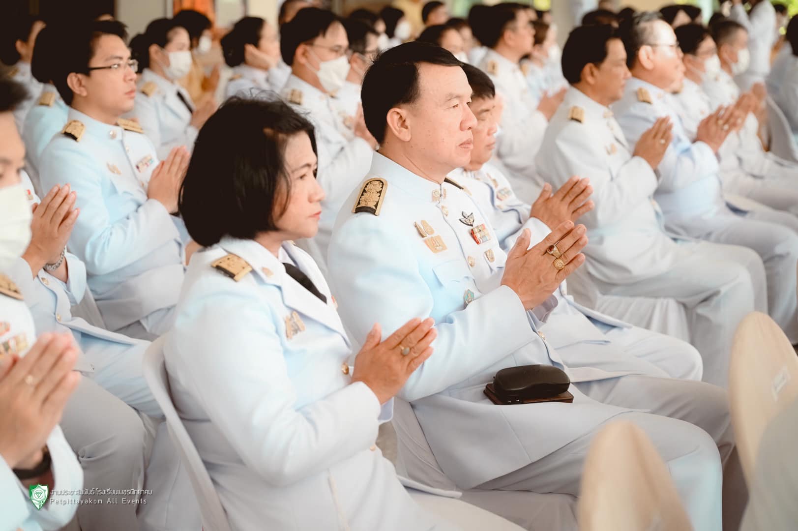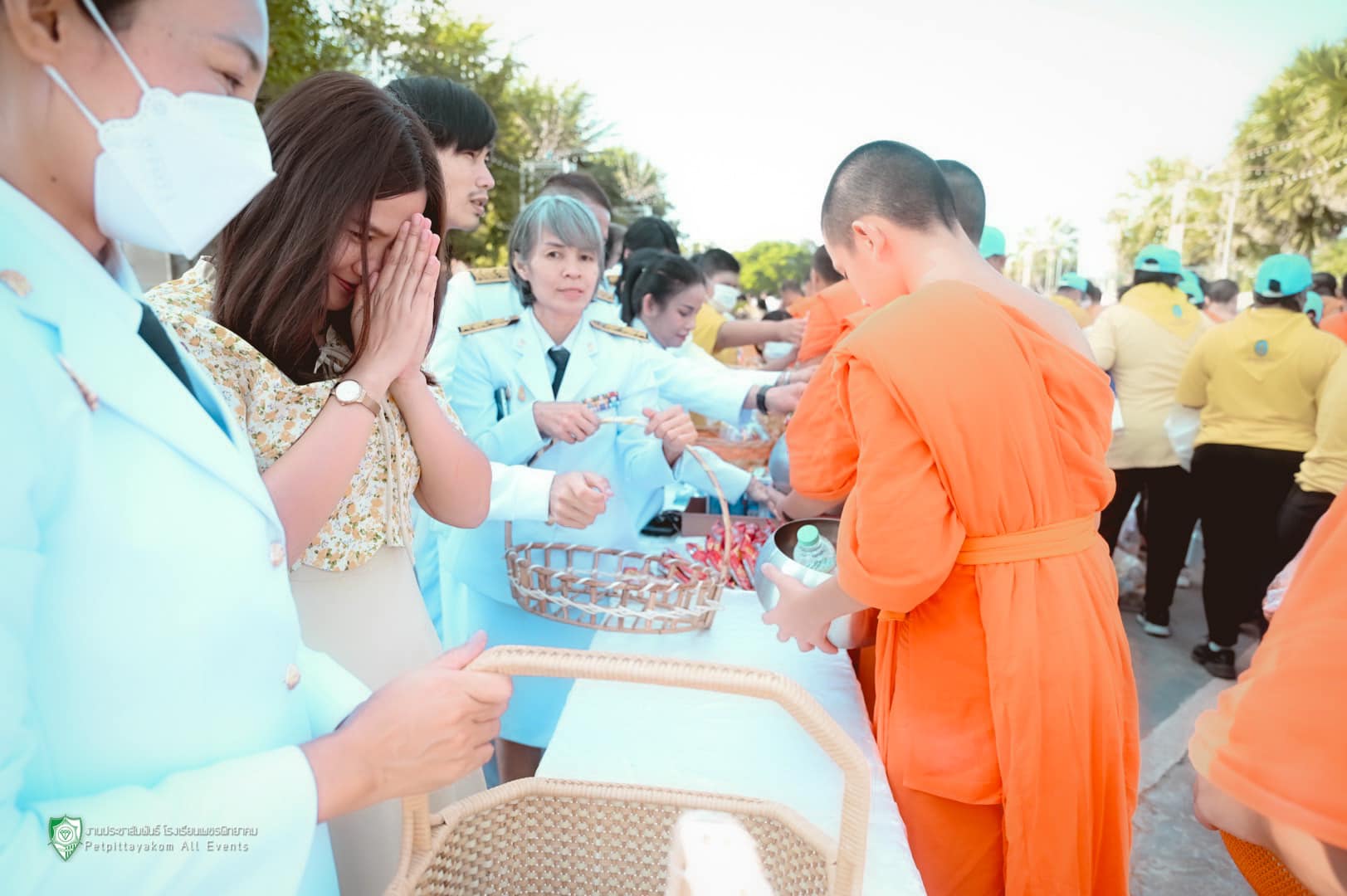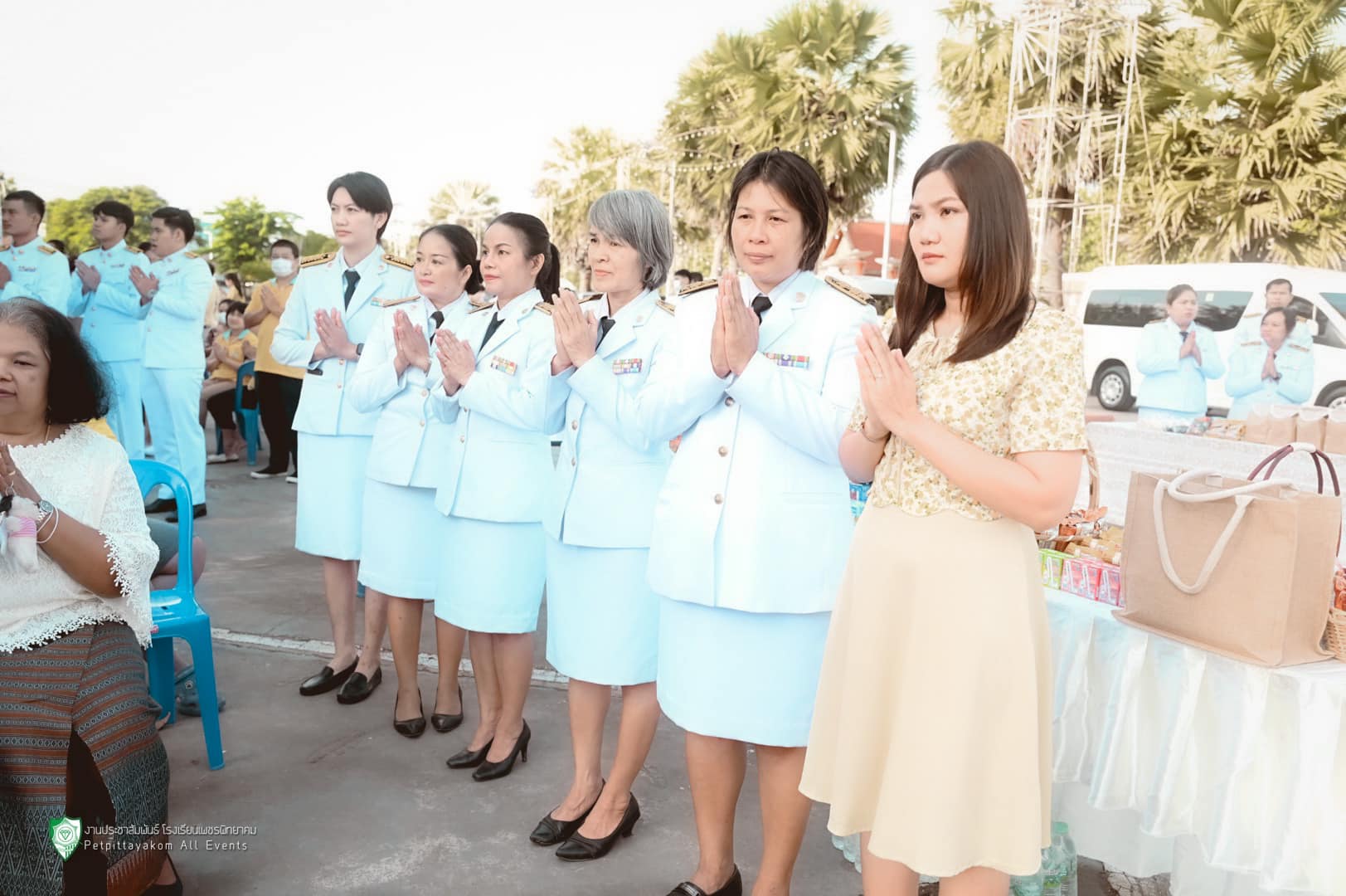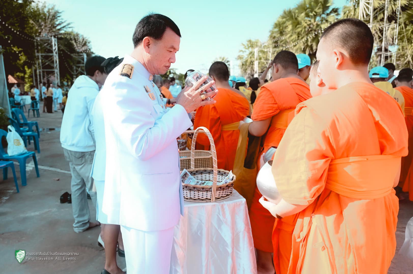 นายวิเศษ ปิ่นพิทักษ์ ผู้อำนวยการโรงเรียนเพชรพิทยาคม พร้อมด้วยฝ่ายบริหารและคณะครูร่วมพิธีทำบุญตักบาตรถวายเป็นพระราชกุศลแด่พระบาทสมเด็จพระบรมชนกาธิเบศร มหาภูมิพลอดุลยเดชมหาราช บรมนาถบพิตร เนื่องในวันนวมินทรมหาราช ประจำปี 2566