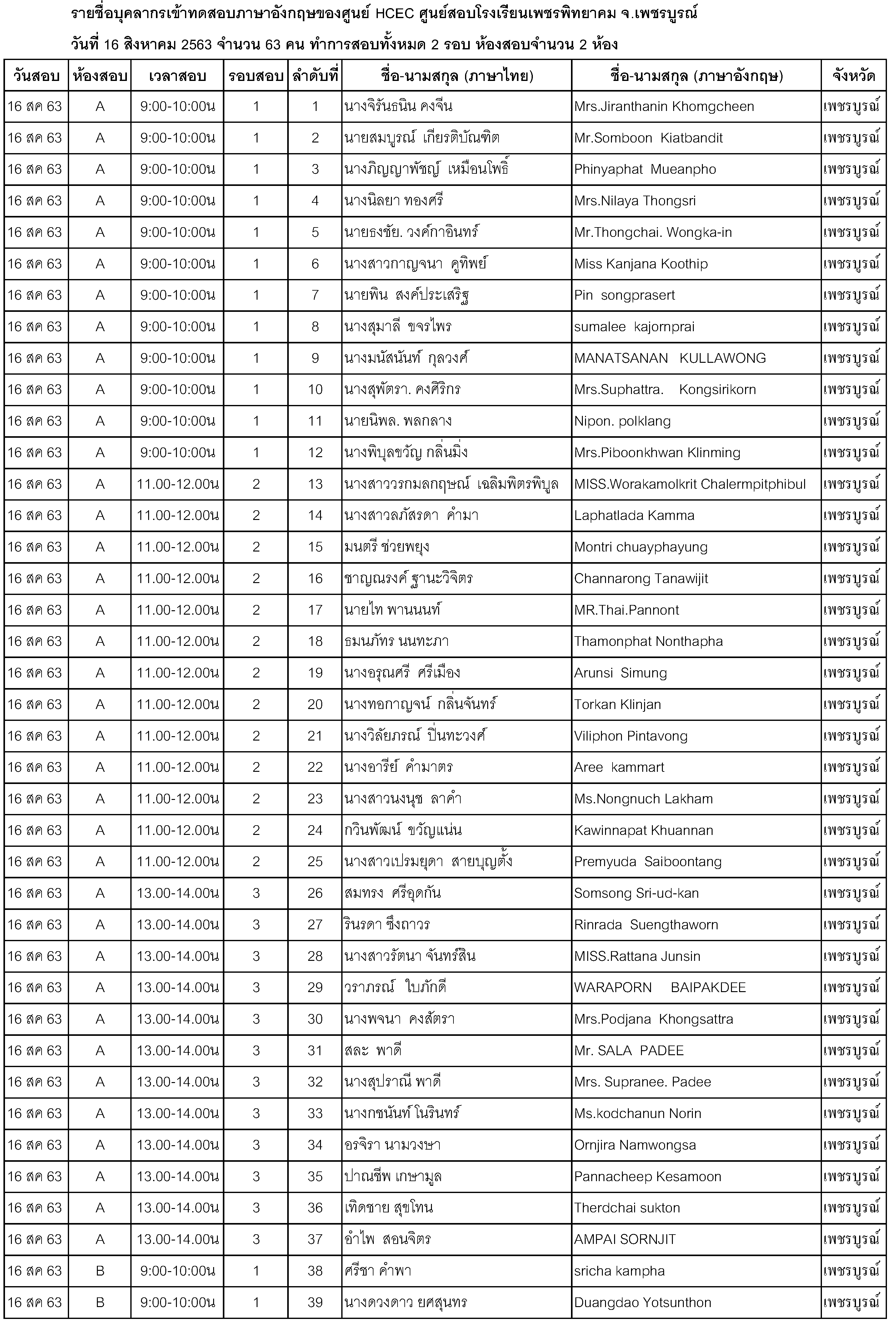 2. วันที่ 22-23 และ 29 สิงหาคม 2563 ตั้งแต่เวลา 09.00 น. เป็นต้นไป สำหรับครูผู้สอนภาษาอังกฤษ สถานที่สอบ ห้องคอมพิวเตอร์ อาคารเรียน 5 โรงเรียนเพชรพิทยาคม