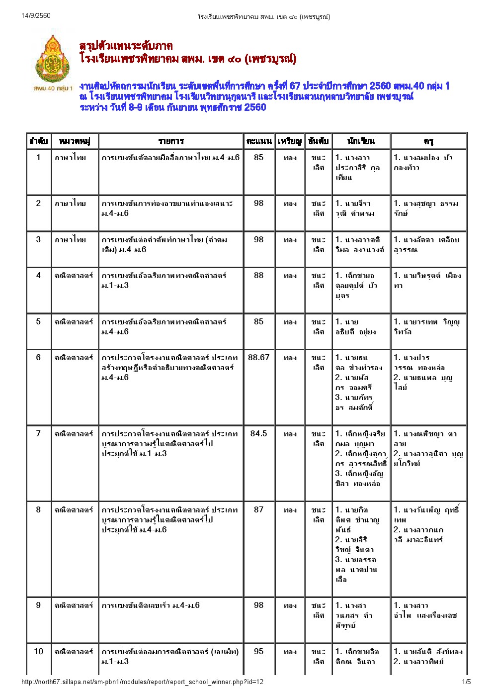 ดาวน์โหลดรายละเอียดสรุปตัวแทนระดับภาค โรงเรียนเพชรพิทยาคม สพม.40 (กลุ่ม 1) คลิกที่นี่