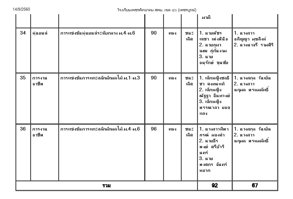 โรงเรียนเพชรพิทยาคม ชนะเลิศ 36 รายการ เป็นตัวแทนแข่งต่อระดับภาค งานศิลปหัตถกรรมนักเรียน ปี2560