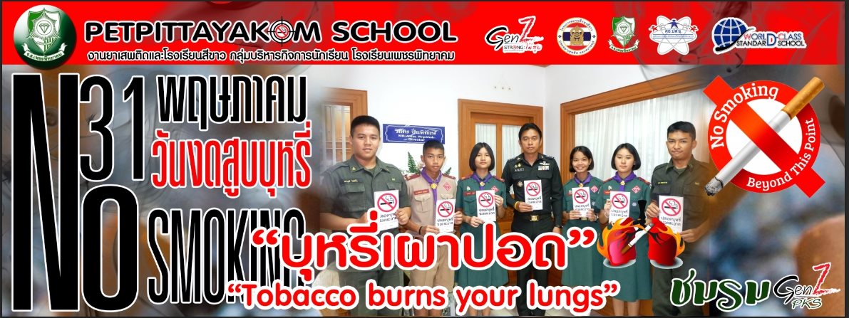 กิจกรรมรณรงค์ตามโครงการโรงเรียนปลอดบุหรี่และเครื่องดื่มแอลกอฮอล์ โดย งานยาเสพติดและโรงเรียนสีขาว กลุ่มบริหารกิจการนักเรียน