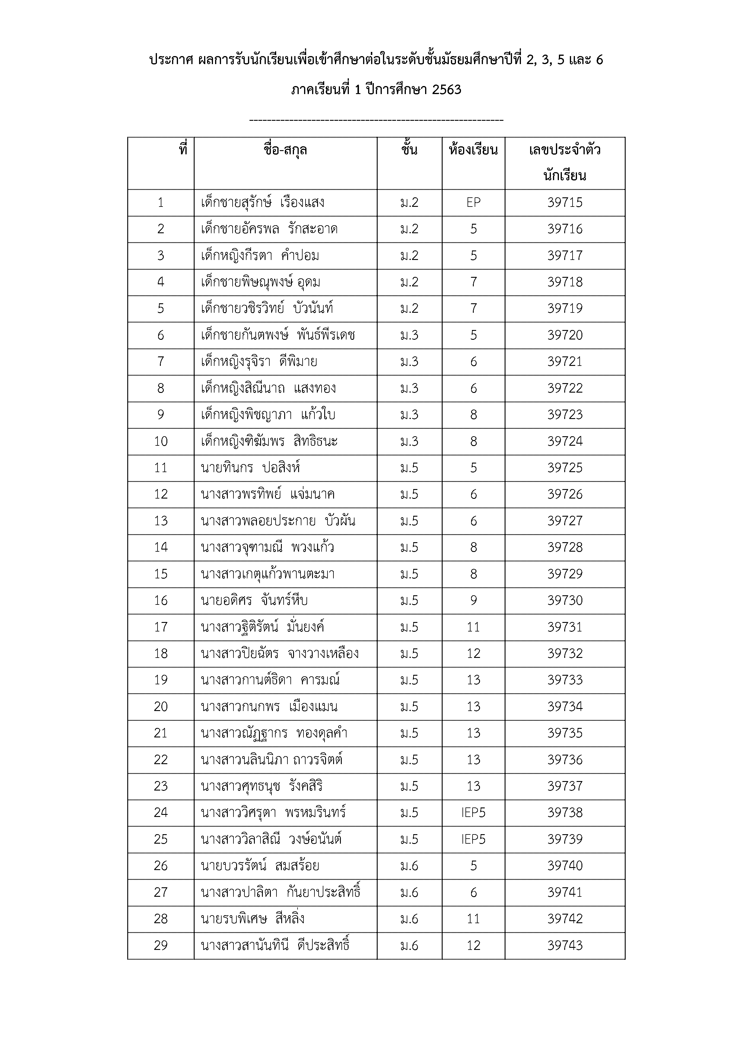 ประกาศ ผลการรับนักเรียนเพื่อเข้าศึกษาต่อในระดับชั้นมัธยมศึกษาปีที่ 2, 3, 5 และ 6 ภาคเรียนที่ 1 ปีการศึกษา 2563