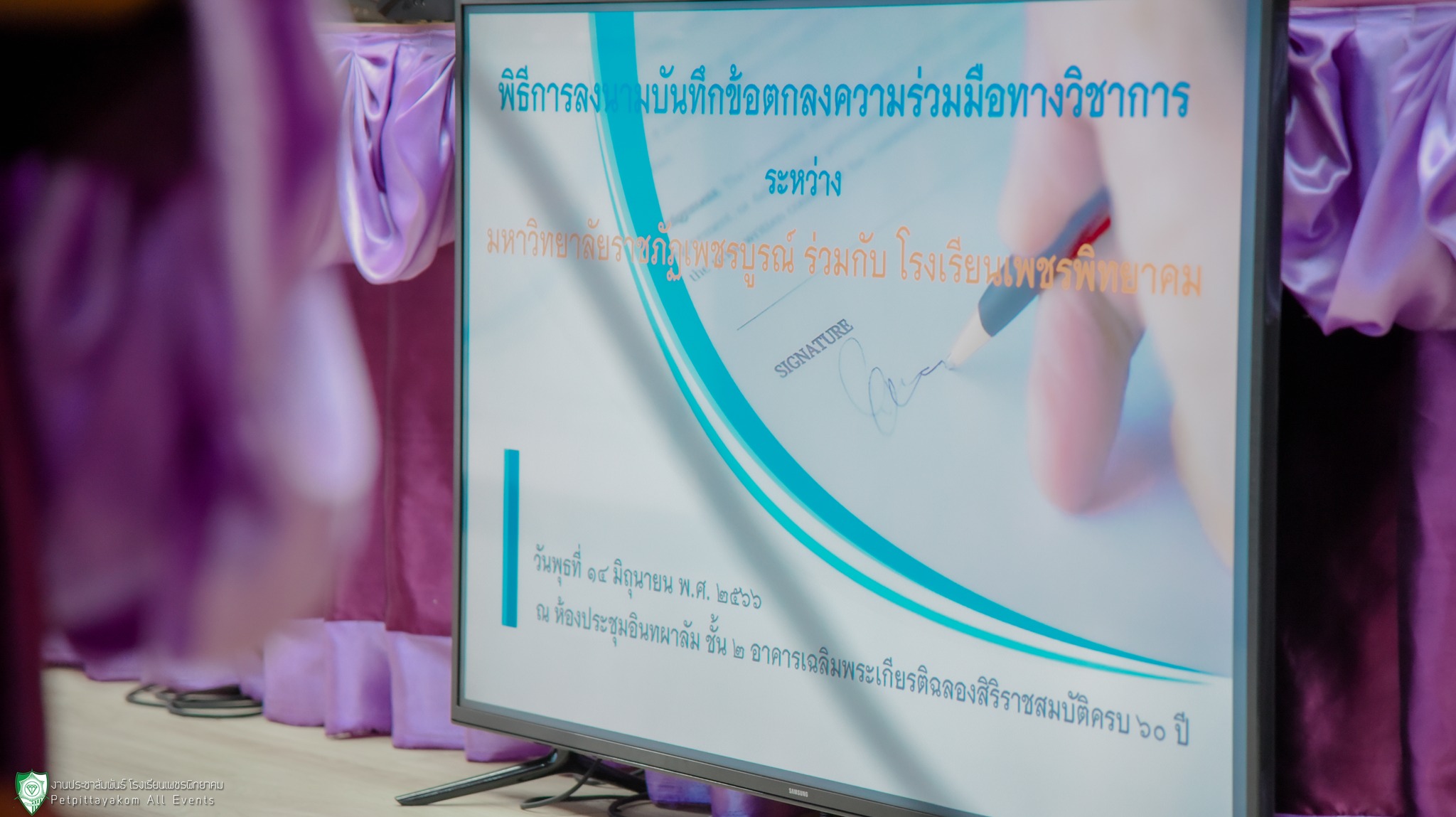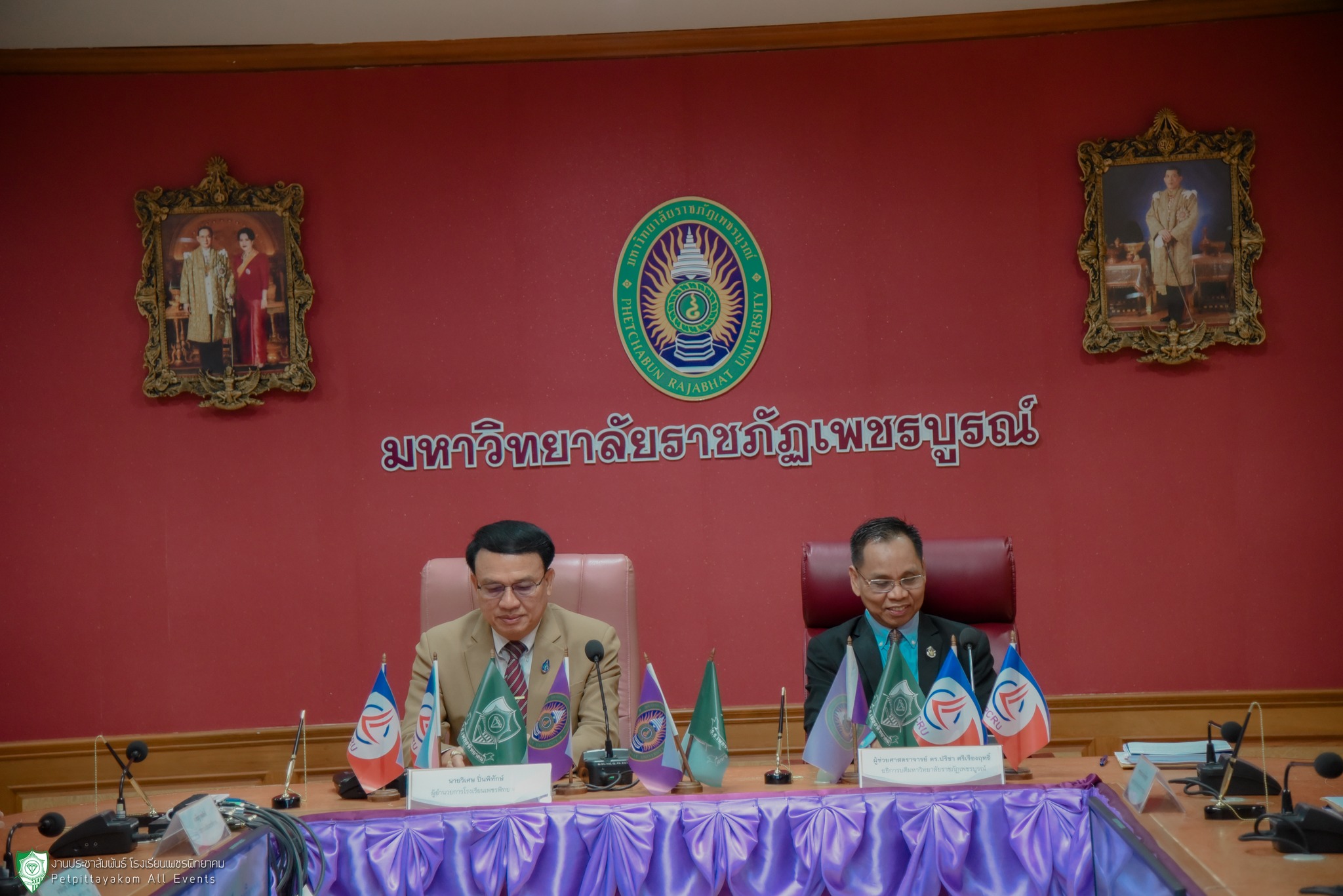 โดยมี ผศ.ดร.ปรีชา ศรีเรืองฤทธิ์ อธิการบดีมหาวิทยาลัยราชภัฏเพชรบูรณ์ นายวิเศษ ปิ่นพิทักษ์ ผู้อำนวยการโรงเรียนเพชรพิทยาคม พร้อมด้วยรองผู้อำนวยการ และฝ่ายบริหาร ร่วมเป็นเกียรติลงนามในพิธี เมื่อวันที่ 21 มิถุนายน 2566 ณ ห้องประชุมอินทผาลัม ชั้น 2 อาคารเฉลิมพระเกียรติฉลองสิริราชสมบัติครบ 60 ปี มหาวิทยาลัยราชภัฏเพชรบูรณ์