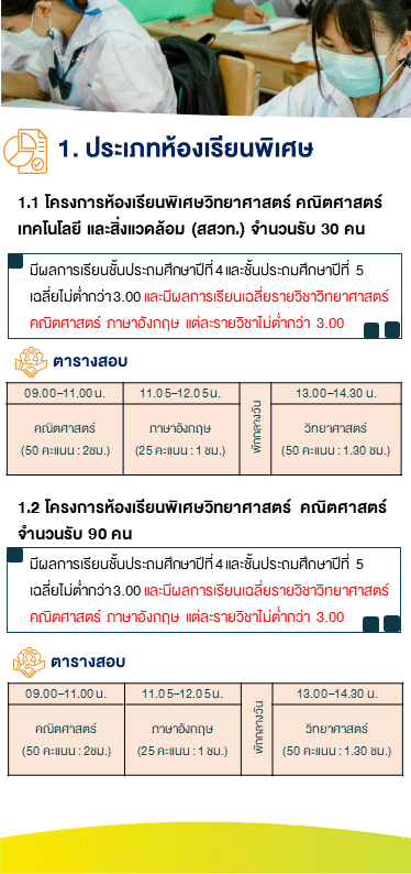 1.2 โครงการห้องเรียนพิเศษวิทยาศาสตร์ คณิตศาสตร์