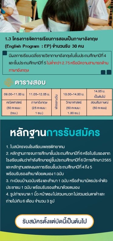 1.3 โครงการจัดการเรียนการสอนเป็นภาษาอังกฤษ (English Program : EP)