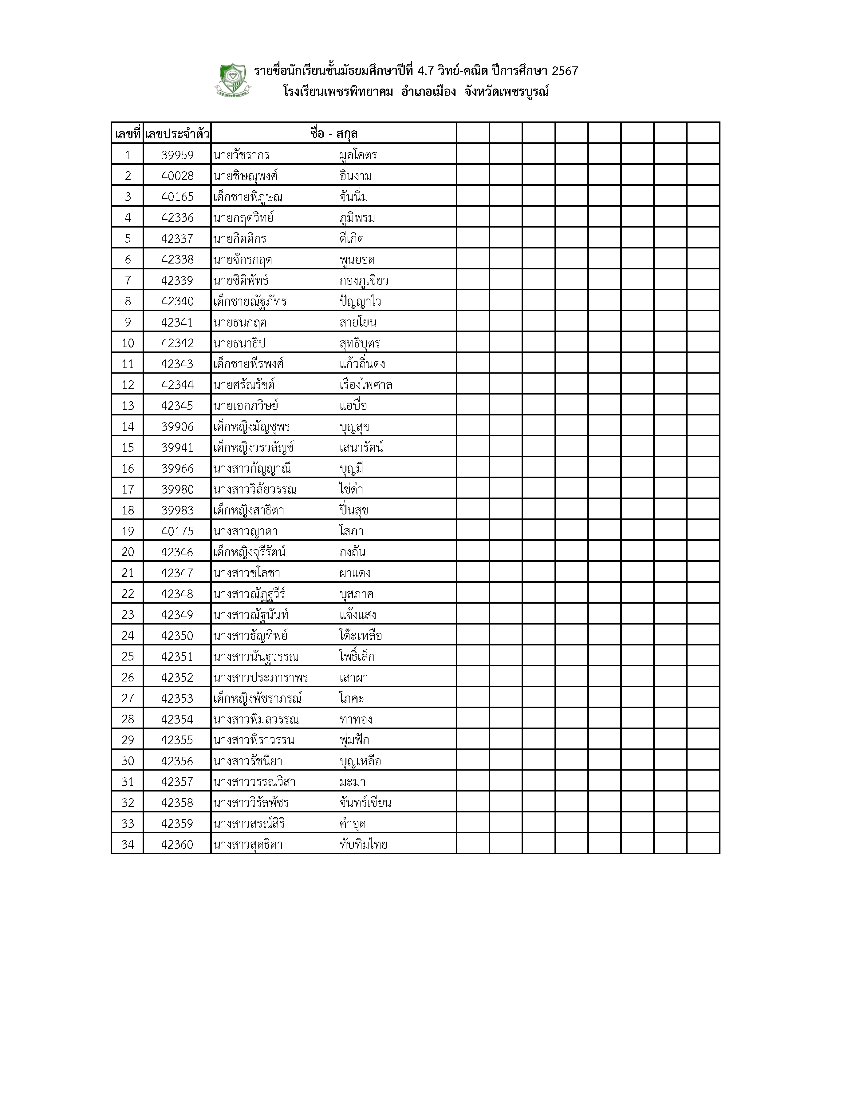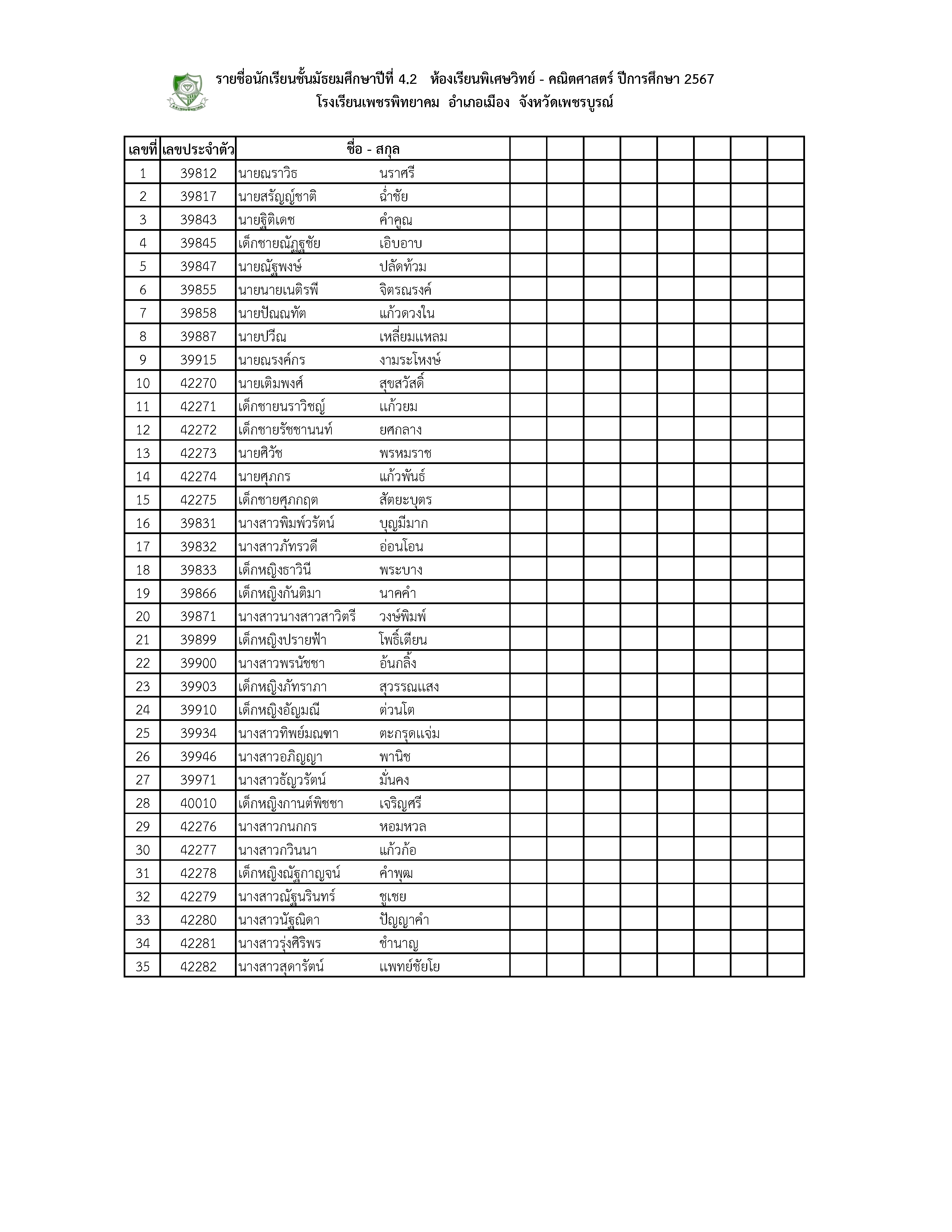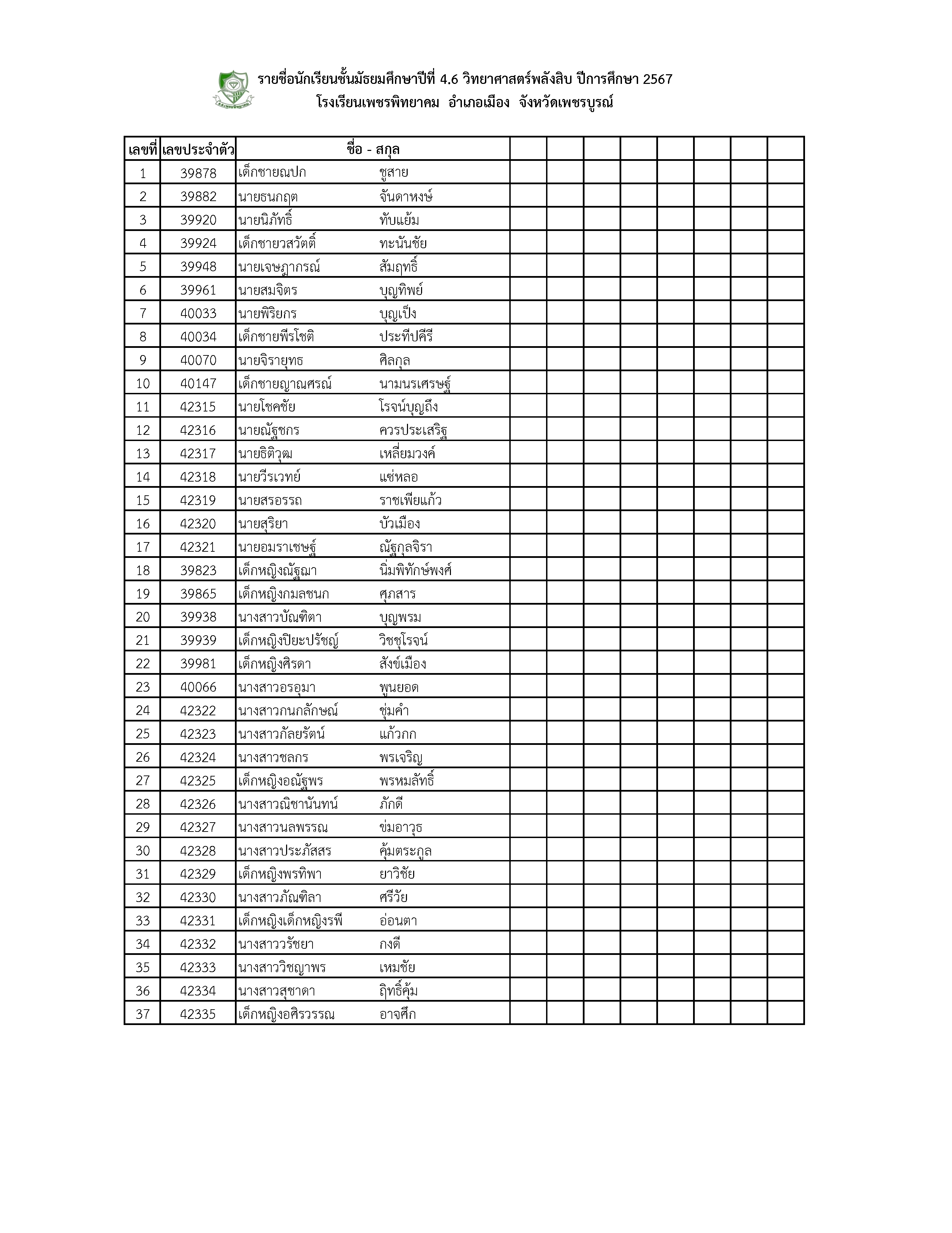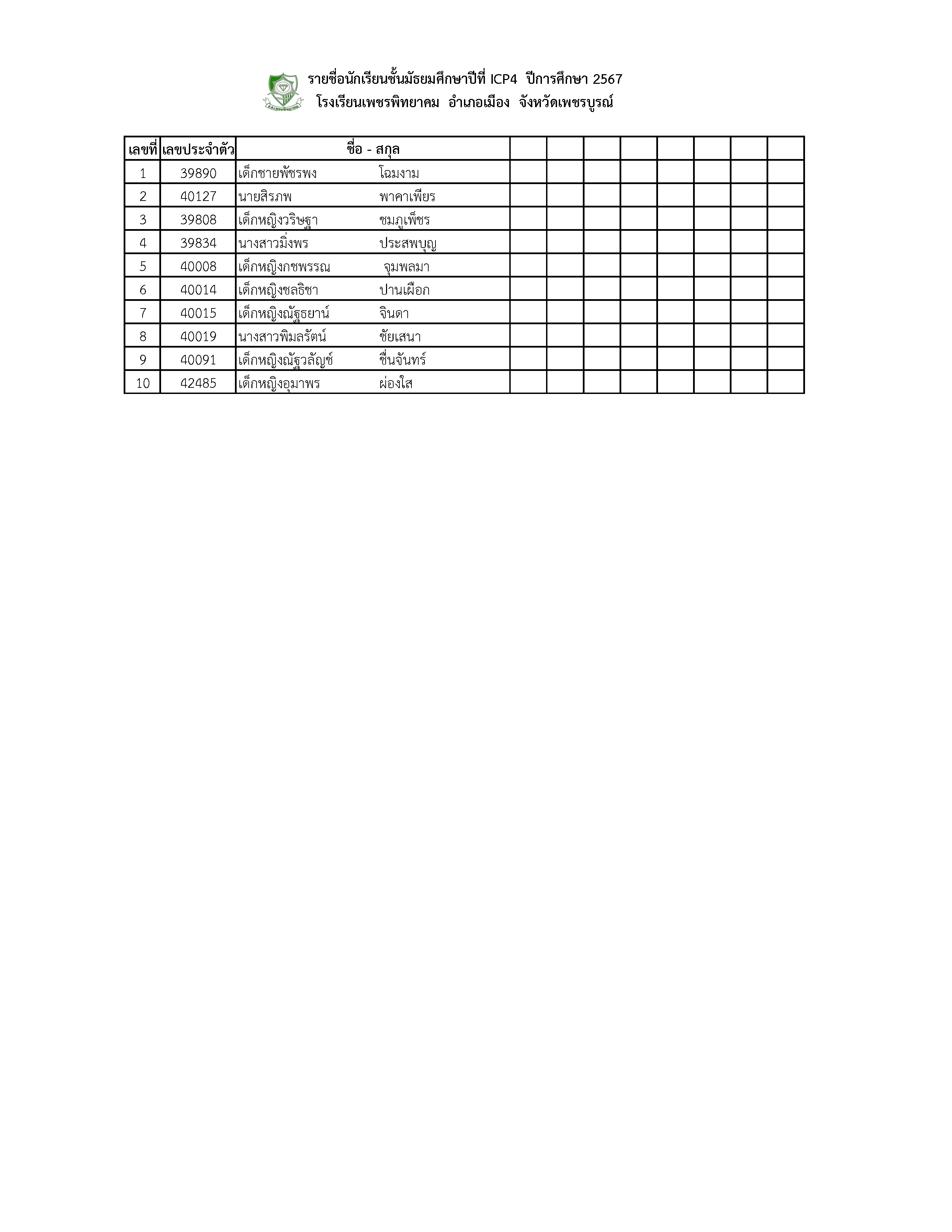 ประกาศเลขประจำตัวนักเรียน ชั้นมัธยมศึกษาปีที่ 4 ปีการศึกษา 2567